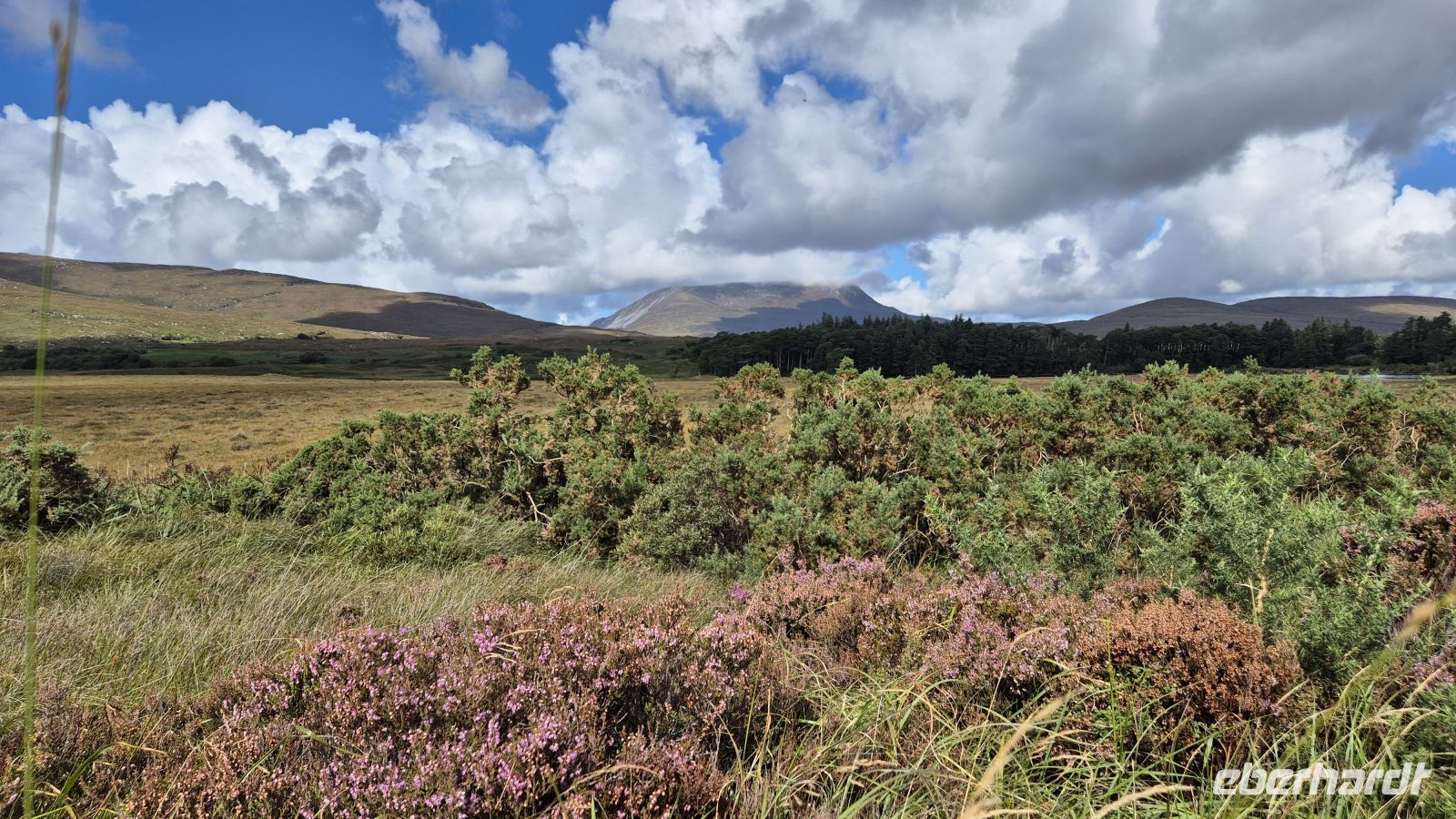 Mit guter Laune und irischem Wetter geht es also los in Richtung der großen Hauptstadt der Grafschaft Galway. Der Verkehr ist am Samstag Morgen noch sehr überschaubar und schnell erreichen wir wieder ländliches Gebiet. Die Region Connemara ist bekannt für ihre herrliche Natur: Torfmoore und zahlreiche dunkle Seen im Süden, die bis zu 700 Meter hohen Berge „Twelve Bens“ des Connemara-Nationalparks im Norden.
