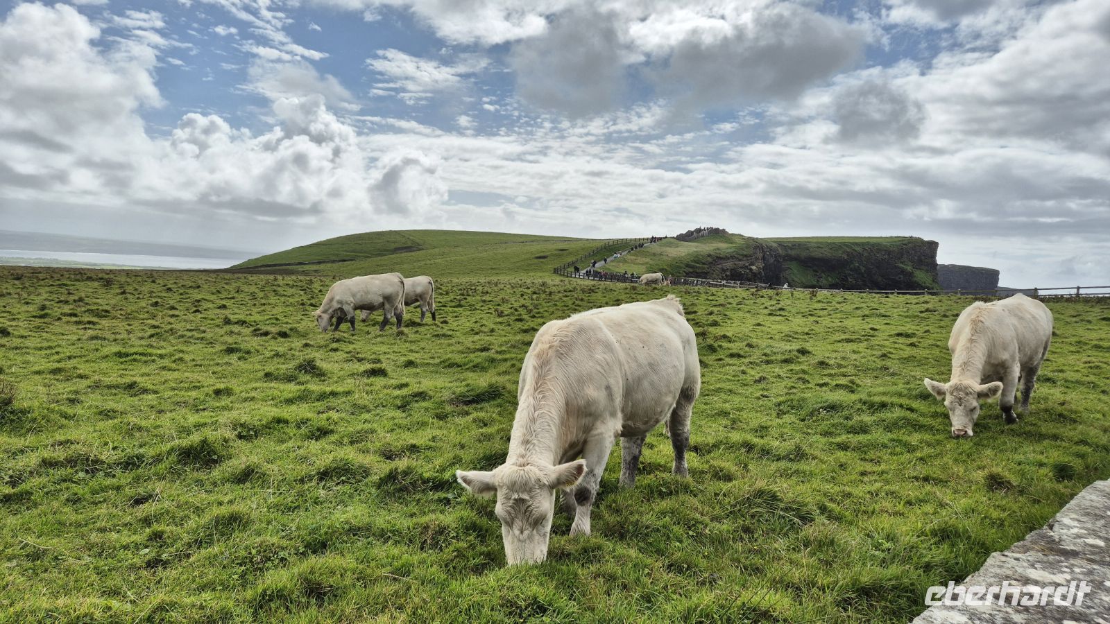Hier haben wir es gleich mit einer Menge vierbeiniger Rindviecher zu tun – denn dass es in Irland sowohl mehr Schafe als auch mehr Kühe als Menschen gibt, das ist wirklich kein Klischee. Und die rund 7,5 Millionen irische Kühe können getrost als glücklich bezeichnet werden, denn sie verbringen durchschnittlich etwa 300 Tage im Jahr auf der Weide. Die irischen Bauern sind auch recht glücklich – darüber, dass das gute irische Weidegras kostenlos wächst.
