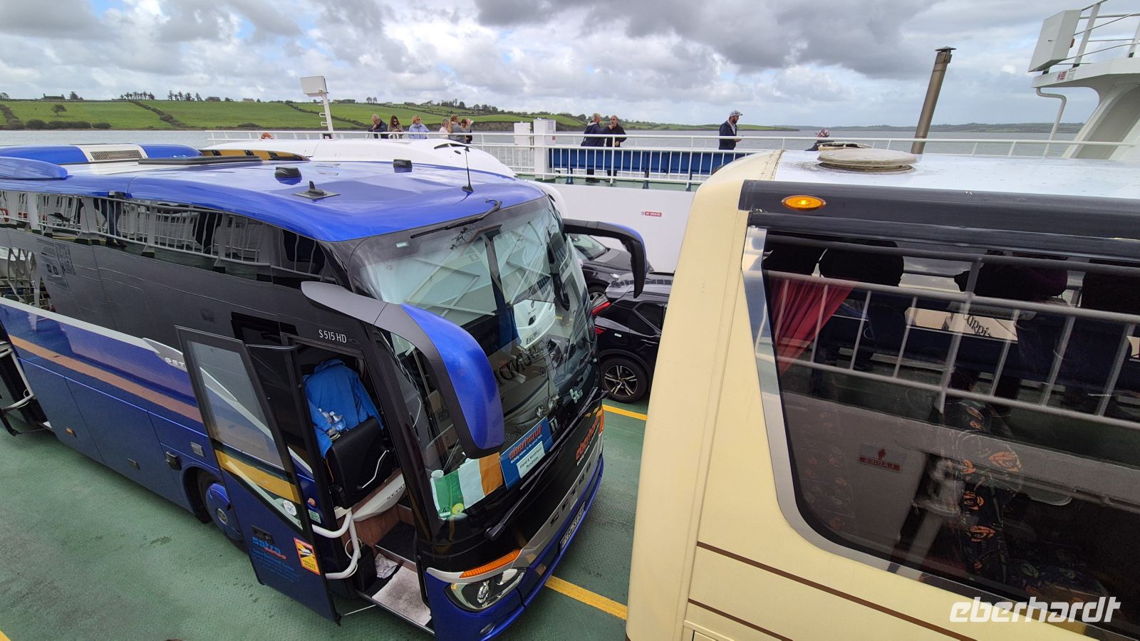 Nach unserem Spaziergang geht es für uns dann weiter nach Süden. Um Zeit und viele Kilometer zu sparen überqueren wir das riesige Shannon Ästuar mit der Fähre. Gerade rechtzeitig zur nächsten Abfahrt treffen wir am kleinen Hafen von Killimer ein. Den Bus auf das Boot zu manövrieren ist gar keine so leichte Aufgabe, die Jan aber natürlich mit Bravour meistert. Die Überfahrt dauert nur knapp 20 Minuten, dann erreichen wir Tarbert im County Kerry.