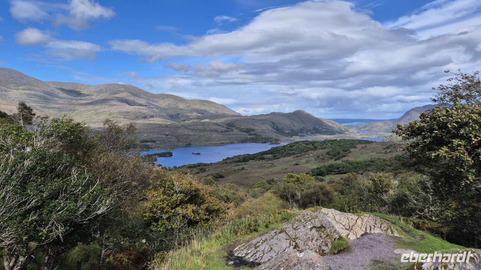 Wo einst die Hofdamen Queen Victorias die oberen Seen des Killarney Nationalparks bestaunten, bekommen wir wenig später am sogenannten Ladie's View einen Eindruck, warum die Damen damals so begeistert gewesen sind. Die Aussicht hier ist wirklich spektakulär.