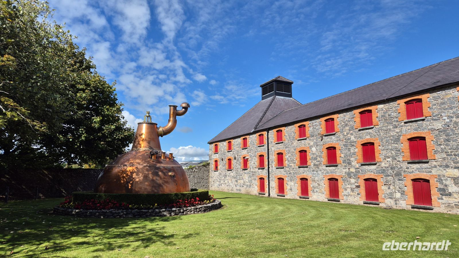 Im Anschluss folgt dann etwas, was in Irland natürlich nicht außer Acht gelassen werden darf: Whiskey. Obwohl das Lebenswasser "uisce beatha" seit Jahrhunderten eng mit der irischen Kultur verbunden ist und von irischen Siedlern auch nach Schottland gebracht wurde (dort Whisky ohne e), hat die kommerzielle Herstellung des Irish Whiskey schwere Zeiten hinter sich. Von den 28 Destillen, die es um 1890 in Irland gab, waren durch politische und wirtschaftliche Probleme 1966 nur noch die Bushmills Distillery und die Old Midleton Distillery übrig geblieben. Erst in den 1990er Jahren hat der Irish Whiskey seine Beliebtheit zurückgewonnen und die Nachfrage wächst immer noch ständig, sodass es heute wieder 32 Destillen in Irland gibt.