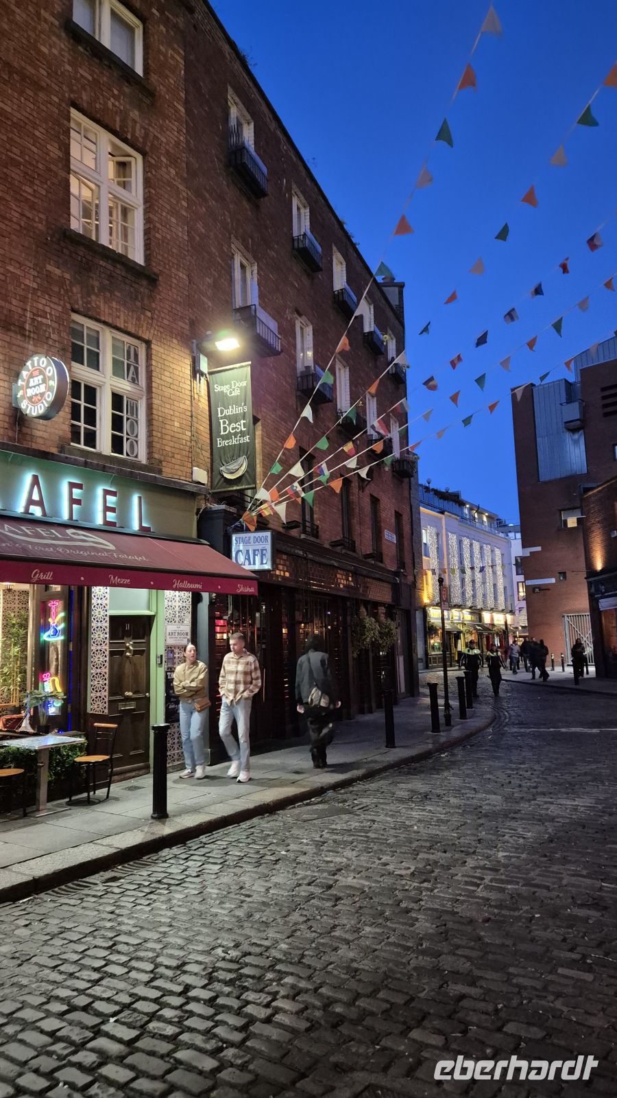 Am späten Nachmittag checken wir dann in unser Hotel ein und treffen uns wenig später zu einem letzten gemeinsamen Abendessen. Es wird nun auch schon Zeit für erste Verabschiedungen, denn unsere Fluggäste werden uns ja leider schon verlassen. Einige von uns entscheiden sich trotz der Aussicht auf eine kurze Nacht dafür, den letzten Abend in Irland bei einem Pub-Besuch im Temple Bar-Viertel gebührend zu beschließen.