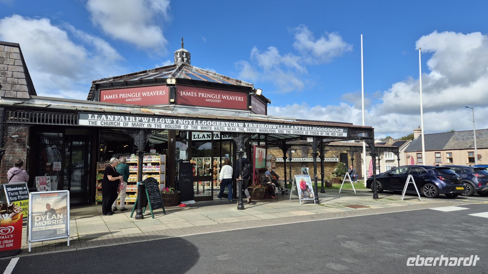 An Bord der Irish Ferries kann man es sich recht bequem mache und so verläuft die Überfahrt nach Holyhead auch sehr angenehm. Gegen Mittag erreichen wir die Insel Anglesey und lernen sehr schnell, dass es noch eine Sprache gibt, die verwirrender und komplizierter ist als Irisch. Unsere Mittagspause machen wir nämlich in dem Ort mit dem längsten Namen in ganz Europa: Llanfairpwllgwyngyllgogerychwyrndrobwllllantysiliogogogoch. Das bedeutet so viel wie "Marienkirche in einer Mulde weißer Haseln in der Nähe der Stromschnellen und der Tysiliokirche bei der roten Höhle" - fast nicht kompliziert, oder? Auf das Angebot den Namen für einen Irish Coffee auswendig zu lernen verzichten alle freiwillig.