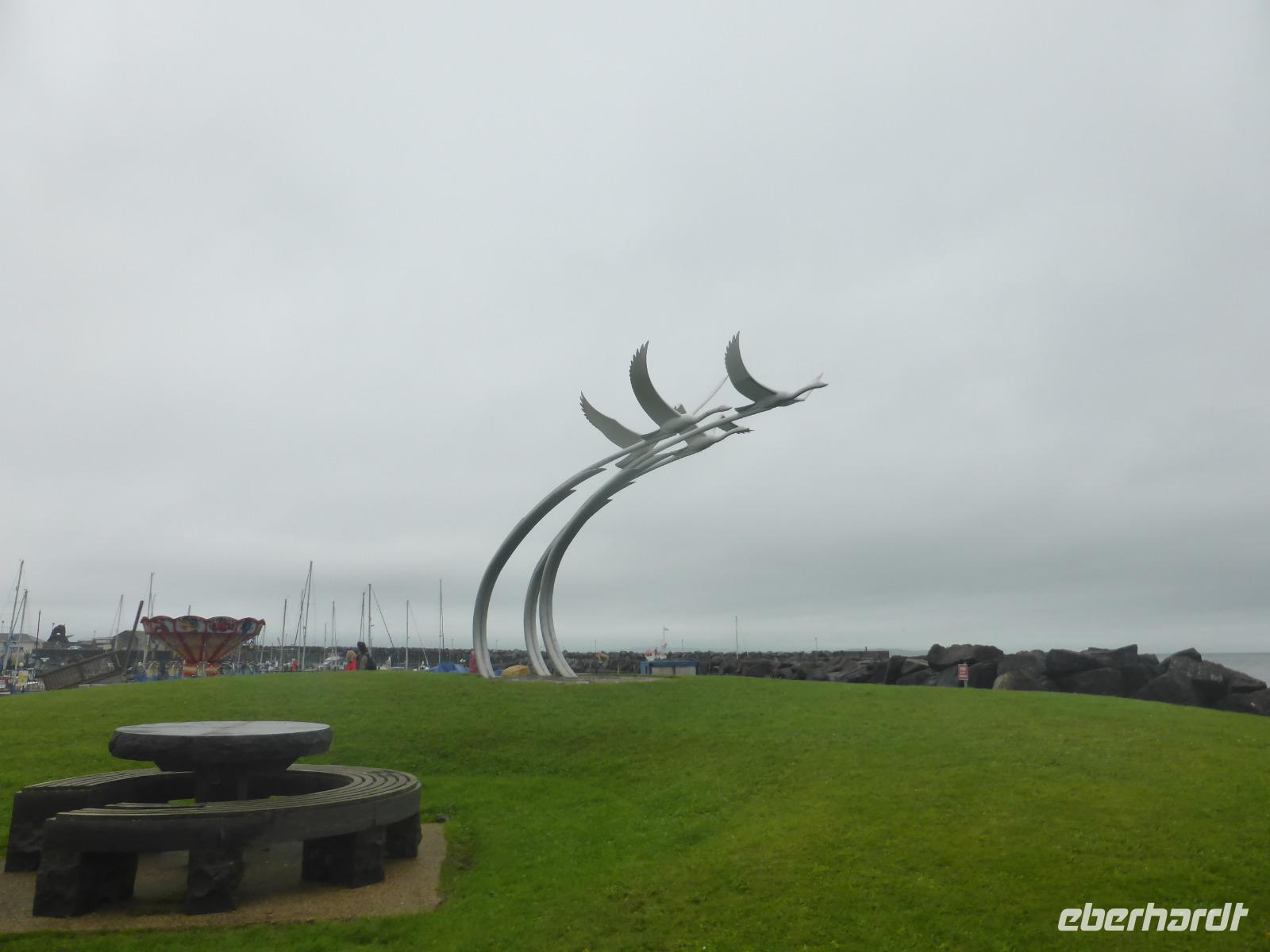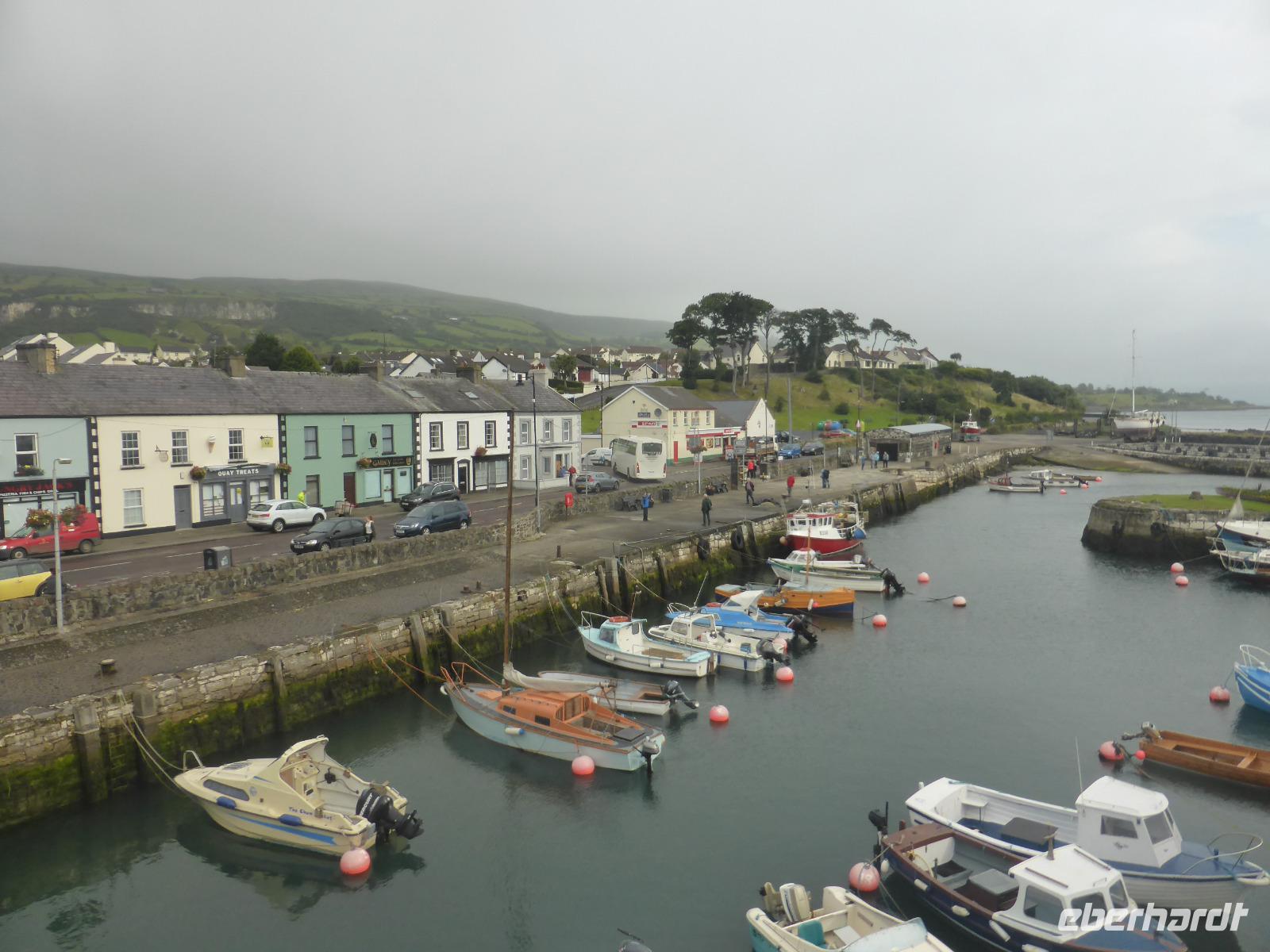Von Belfast aus führte uns unsere Reise über Larne zu dem kleinen Fischerort Carnlough. Wir hielten am Hafen und hatten einen schönen Blick auf die Berge beidseits des Glencloy-Tales und auf das Meer. Unser nächster Halt war in Ballycastle. Beim Blick auf die Skulpturengruppe der vier Schwäne wurde vor unserem geistigen Auge die Geschichte König Lirs und seiner verzauberten Kinder lebendig. Der Ort besitzt auch einen sehr schönen Sandstrand, welcher sich an diesem Tag weniger zum Baden als vielmehr zum Spazieren anbot. Von Ballycastle aus fuhren wir zum Giant's Causeway, zum „Damm des Riesen". Die Legende des irischen Helden Fionn und des schottischen Riesen Benandonner wird im modernen Informationszentrum anhand eines Trickfilmes gezeigt. Zunächst spazierten wir zu den ca. 60 Millionen Jahre alten Basaltsäulen, welche gleichförmig zu Tausenden aus dem Meer ragen. Anhand einer Karte und Audioguides erhielten wir Informationen zu einzelnen Besichtigungspunkten.