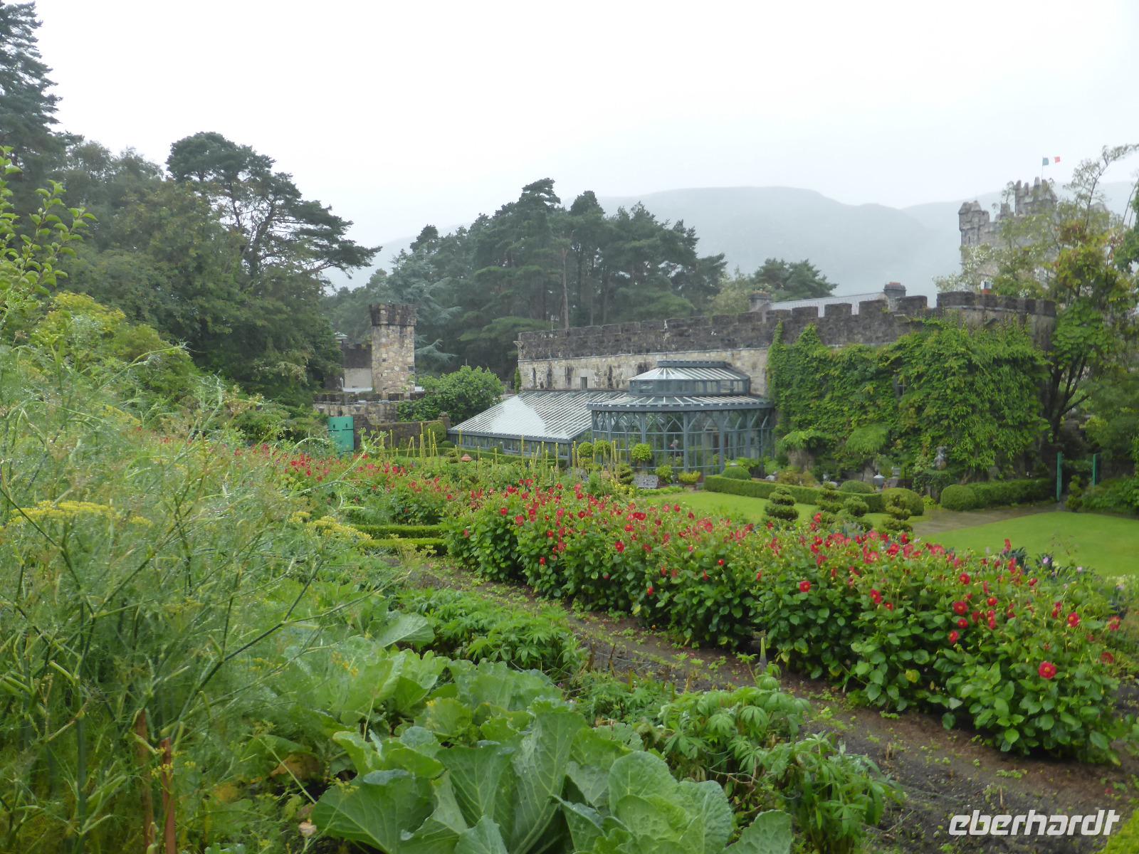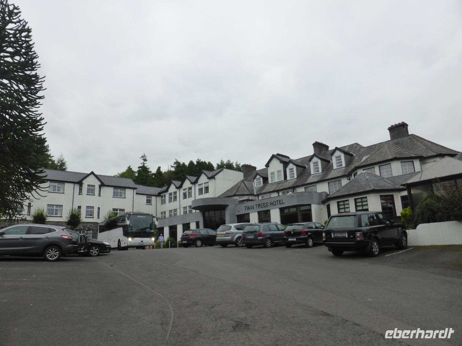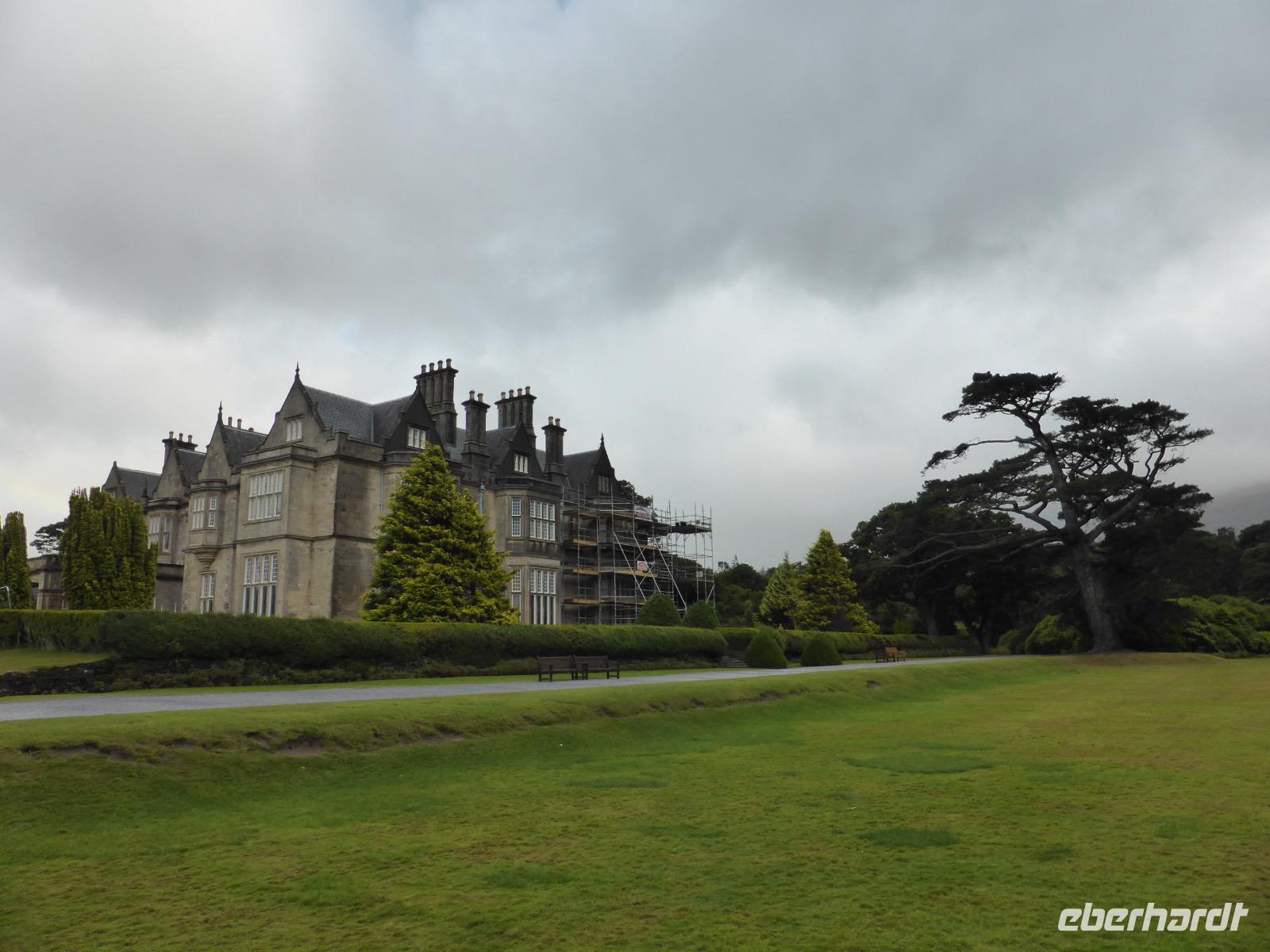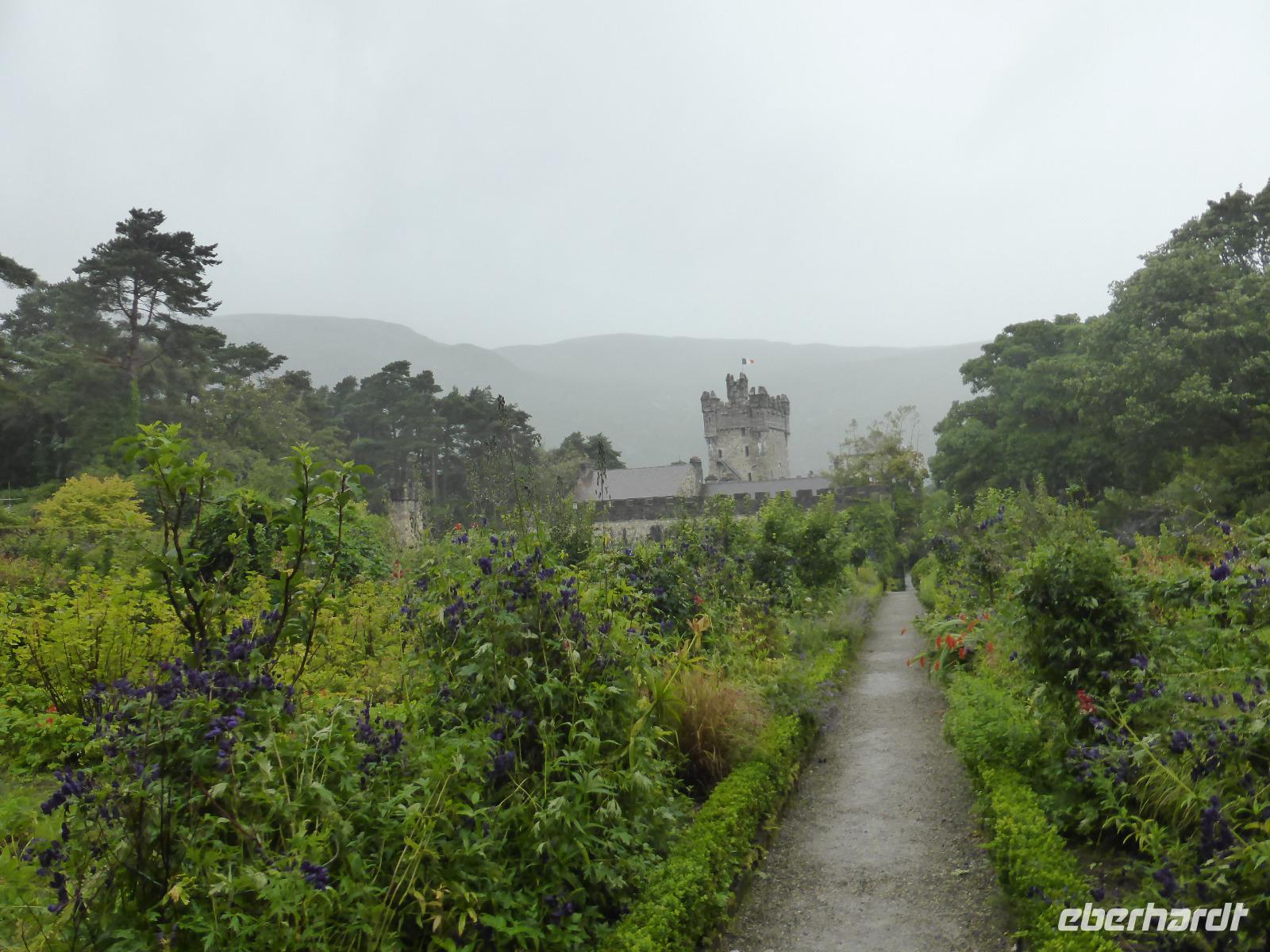 Am diesem Tag bestand die Möglichkeit, an einem fakultativen Ausflug zum Glenveagh Nationalpark teilzunehmen oder den Tag in Letterkenny zu verbringen. Die meisten Gäste nahmen am Ausflug teil, der uns zunächst in den Nationalpark führte. Im Informationszentrum sahen wir einen Film über den Park und die Schlossanlage, bevor wir die Ausstellung besichtigten und mit Minibussen zum vier Kilometer entfernten Schloss fuhren. Dort hatten wir bis zum Beginn der Führung noch etwas Zeit, welche wir zum Besuch des ummauerten Gartens und für die Kaffeepause nutzten. Während der Führung erfuhren wir, dass die letzten beiden Besitzer, die Amerikaner Arthur Kingsley Porter und Henry McIlhenny sehr gern Künstler und Prominente empfangen haben. Auch Greta Garbo hat sich in Glenveagh mehrmals aufgehalten. McIlhenny ließ auch die Gartenanlage in ihrer heutigen Form gestalten und schenkte Garten und Schloss 1981 der Nationalparkverwaltung. Nach der Besichtigung spazierten wir durch den Schlosspark und fuhren anschließend zurück zum Besucherzentrum. Von dort ging es dann mit dem Bus durch das County Donegal. Über Dunafanaghy fuhren wir entlang des Wild Atlantic Way zum Aussichtspunkt „Bloody Foreland Head". Leider regnete es stark und es blies ein kräftiger Wind, so dass nur wenige Wagemutige den kurzen Halt zum Aussteigen und Fotografieren nutzen wollten. Anschließend ging es durch die Landschaft Gweedore Cloghaneely. Aus dem gleichnamigen Ort Gweedore stammt die Sängerin Enya. Am Strand von Naran machten wir unsere Kaffepause, da in unmittelbarer Nähe ein kleines Cafè geöffnet hatte. Die meisten von uns nutzten allerdings die Zeit für einen Spaziergang am Strand und zum Fotografieren. Von Naran aus fuhren wir über Fintown zu unserem Hotel nach Letterkenny zurück.