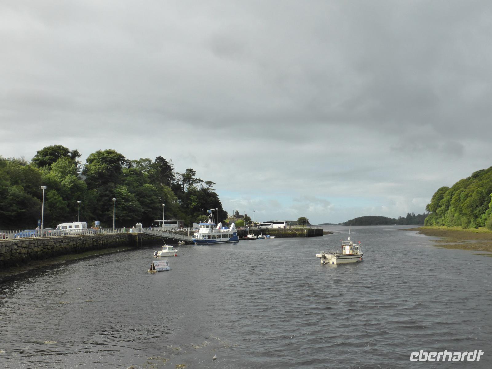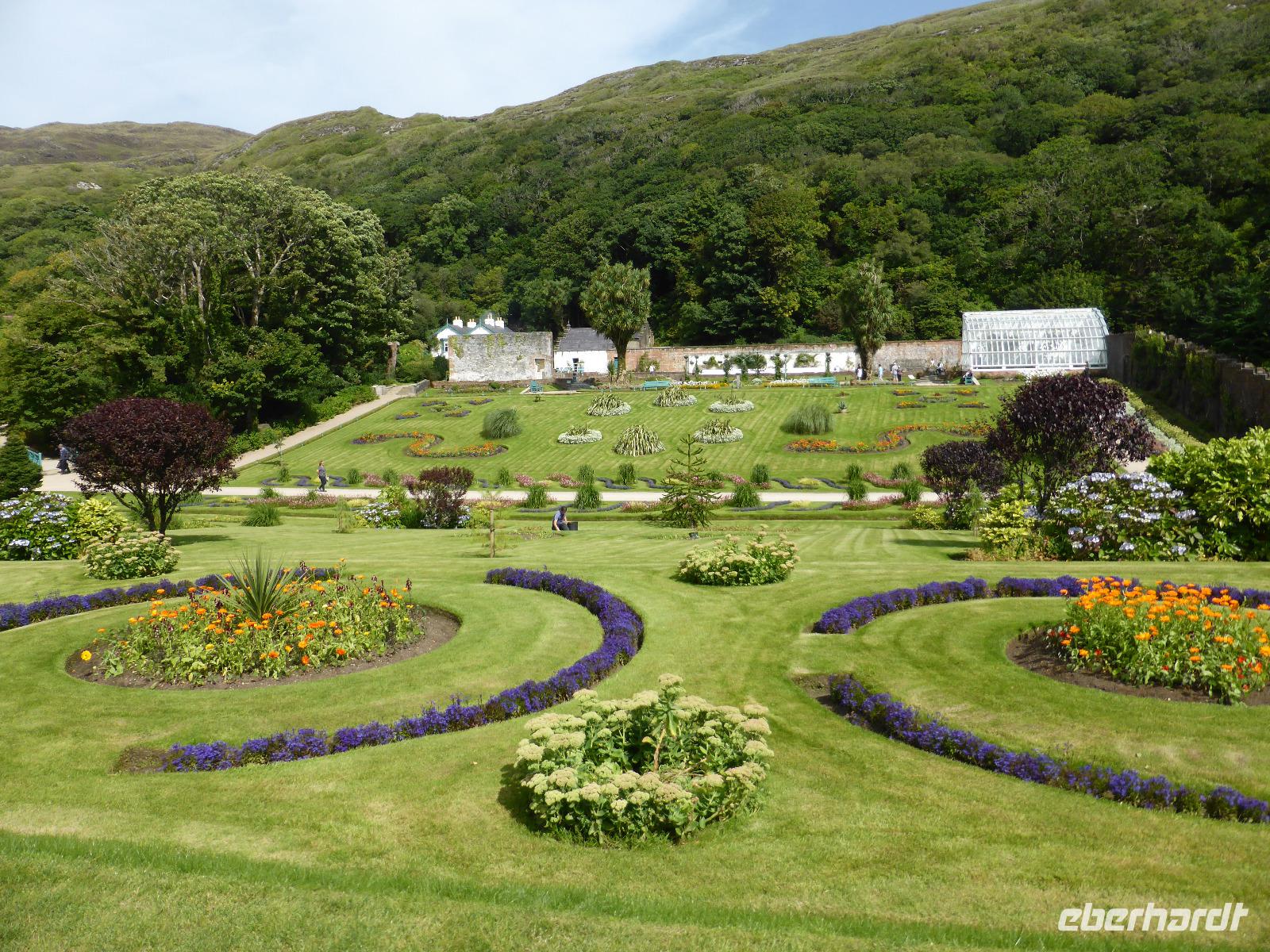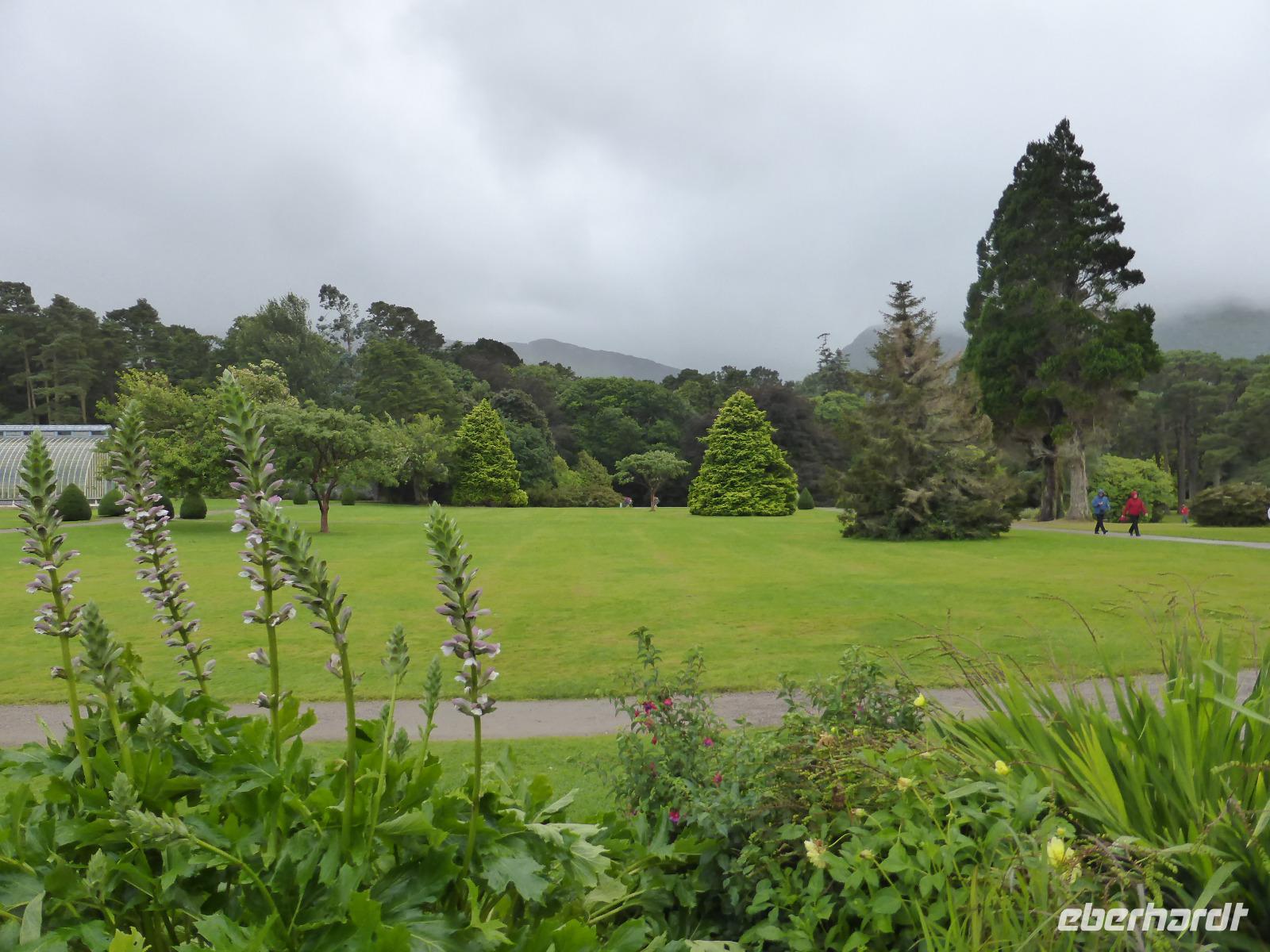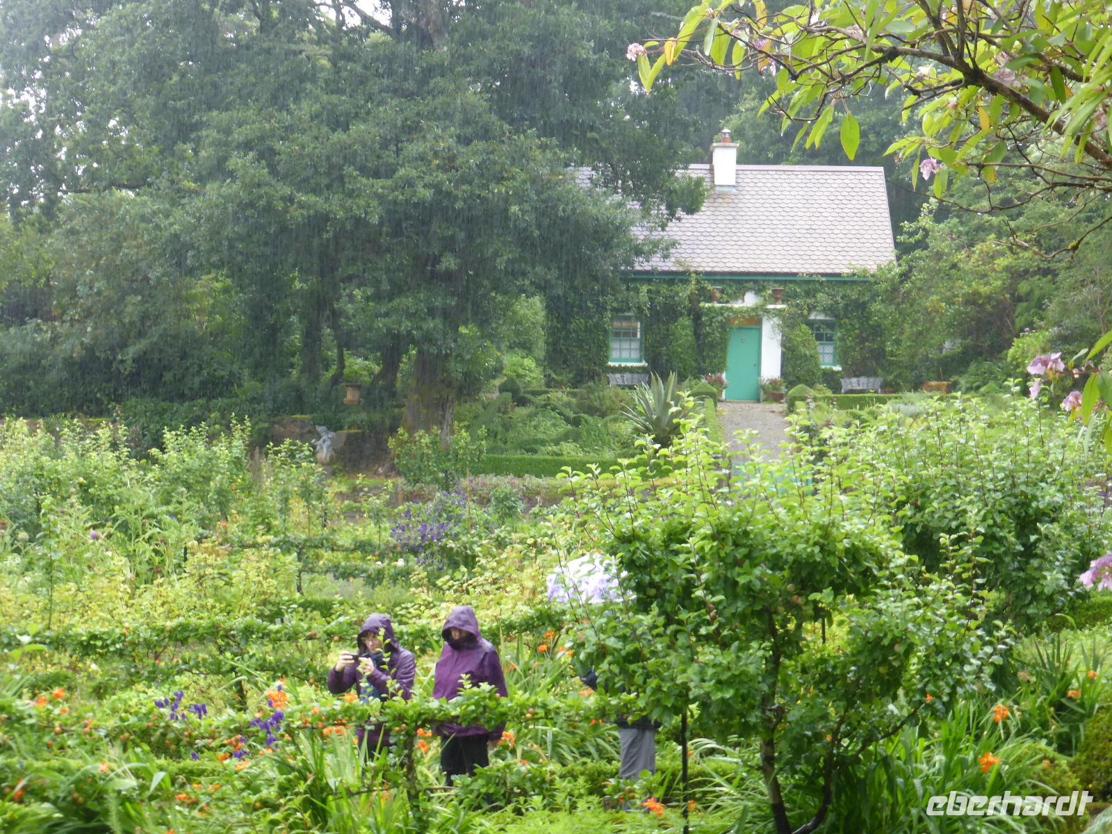 Am diesem Tag bestand die Möglichkeit, an einem fakultativen Ausflug zum Glenveagh Nationalpark teilzunehmen oder den Tag in Letterkenny zu verbringen. Die meisten Gäste nahmen am Ausflug teil, der uns zunächst in den Nationalpark führte. Im Informationszentrum sahen wir einen Film über den Park und die Schlossanlage, bevor wir die Ausstellung besichtigten und mit Minibussen zum vier Kilometer entfernten Schloss fuhren. Dort hatten wir bis zum Beginn der Führung noch etwas Zeit, welche wir zum Besuch des ummauerten Gartens und für die Kaffeepause nutzten. Während der Führung erfuhren wir, dass die letzten beiden Besitzer, die Amerikaner Arthur Kingsley Porter und Henry McIlhenny sehr gern Künstler und Prominente empfangen haben. Auch Greta Garbo hat sich in Glenveagh mehrmals aufgehalten. McIlhenny ließ auch die Gartenanlage in ihrer heutigen Form gestalten und schenkte Garten und Schloss 1981 der Nationalparkverwaltung. Nach der Besichtigung spazierten wir durch den Schlosspark und fuhren anschließend zurück zum Besucherzentrum. Von dort ging es dann mit dem Bus durch das County Donegal. Über Dunafanaghy fuhren wir entlang des Wild Atlantic Way zum Aussichtspunkt „Bloody Foreland Head". Leider regnete es stark und es blies ein kräftiger Wind, so dass nur wenige Wagemutige den kurzen Halt zum Aussteigen und Fotografieren nutzen wollten. Anschließend ging es durch die Landschaft Gweedore Cloghaneely. Aus dem gleichnamigen Ort Gweedore stammt die Sängerin Enya. Am Strand von Naran machten wir unsere Kaffepause, da in unmittelbarer Nähe ein kleines Cafè geöffnet hatte. Die meisten von uns nutzten allerdings die Zeit für einen Spaziergang am Strand und zum Fotografieren. Von Naran aus fuhren wir über Fintown zu unserem Hotel nach Letterkenny zurück.