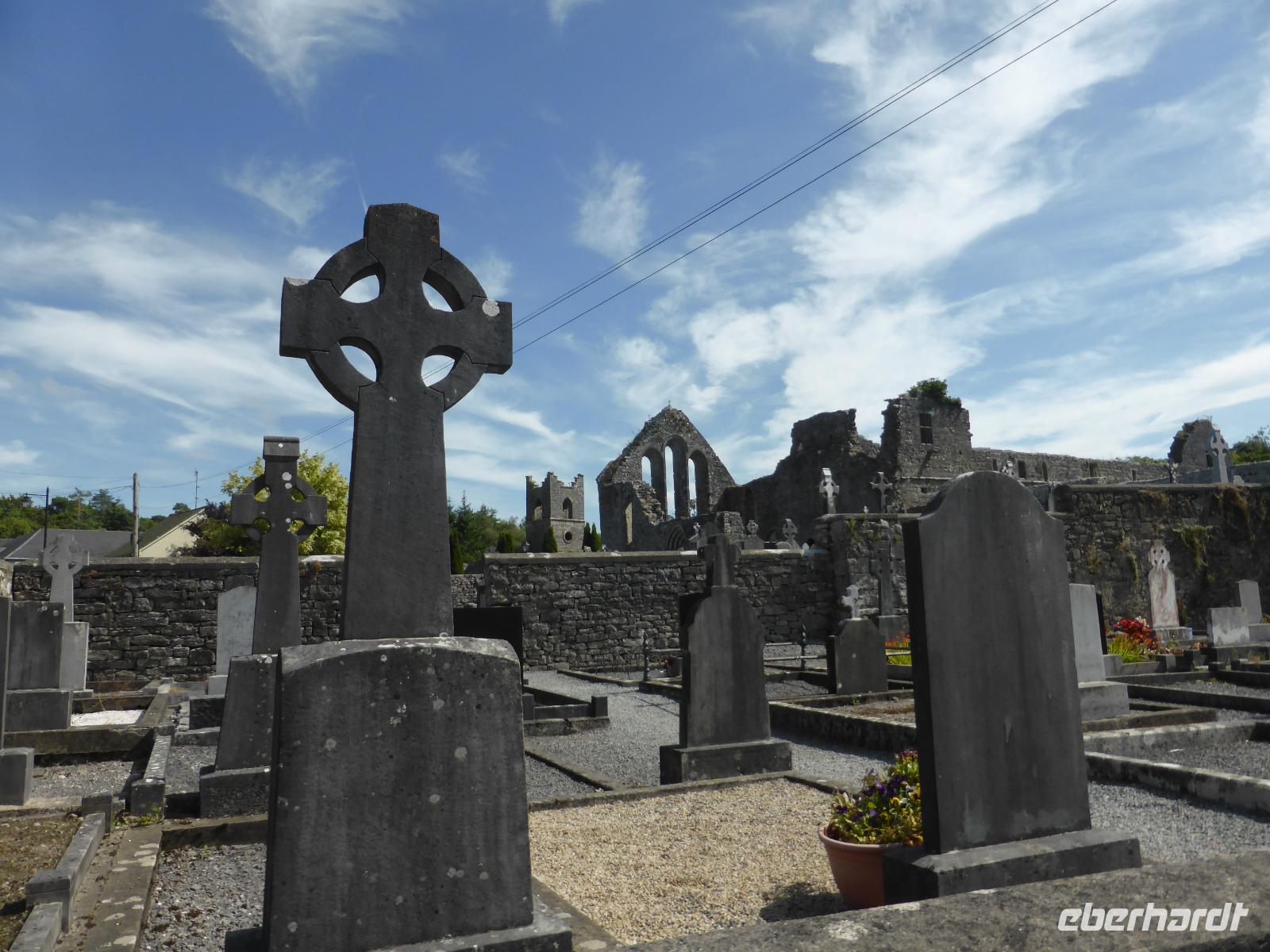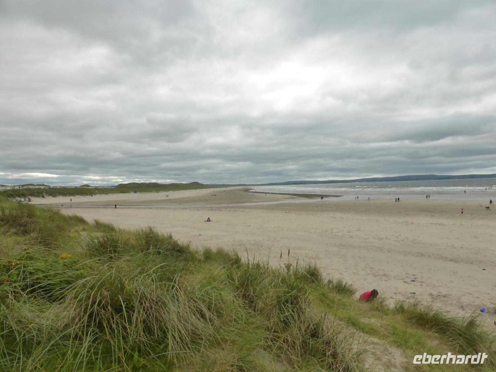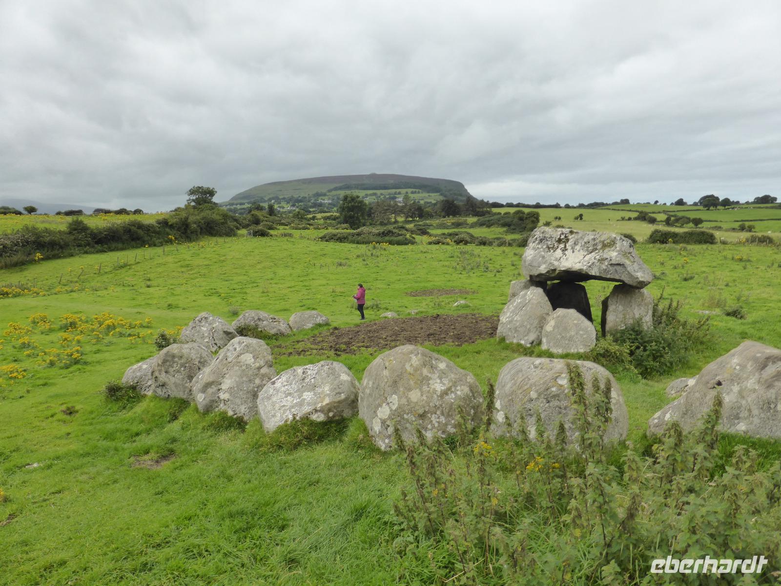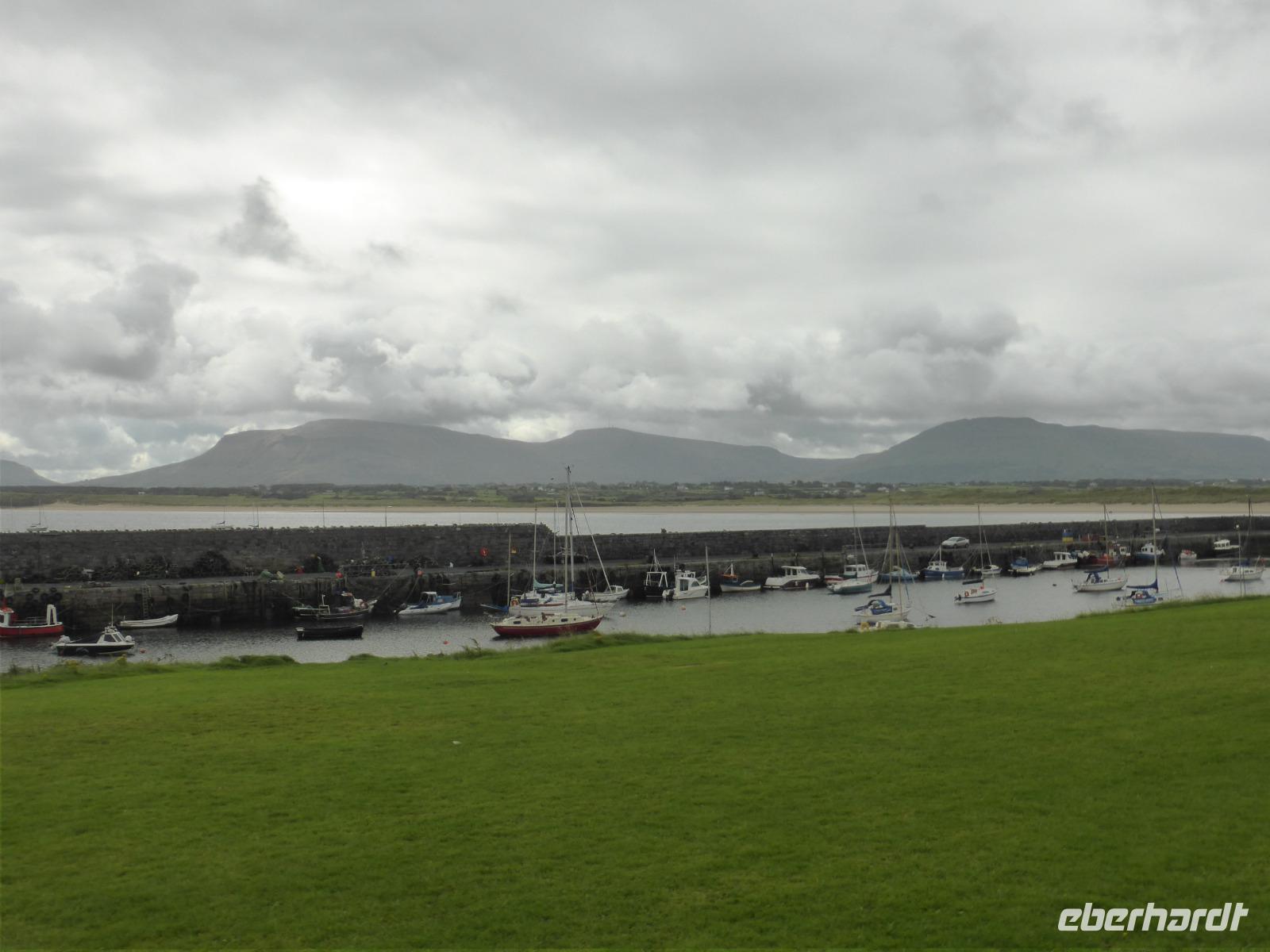 Wir starteten nach dem Frühstück in Richtung Süden und hielten in Donegal, dem Verwaltungszentrum des gleichnamigen Countys. Im Ort gibt es mehrere Sehenswürdigkeiten, wie den Donegal Castle, der ehemaligen Stammsitz des lokalen Clans der O'Donnells, und die Ruinen der Franziskaner-Abtei. Dem Kloster verdanken wir die „Annals oft the four masters", einer Niederschrift keltischer Bräuche, Kultur und Mythologie, welche die Mönche bewahren wollten. Von Donegal fuhren wir auf die Halbinsel Mullaghmore, wo uns beim dortigen Spaziergang entlang des Hafens ein wirklich unvorhersehbarer Regenschauer überraschte. Ein Glück, dass er bei unserem nächsten Halt in Drumcliff bereits wieder vorbei war. In Drumcliff besuchten wir das Grab von William Buttler Yeats und hatten anschließend Zeit für den Besuch der Kirche und für die Kaffeepause. Ebenso wie die Mönche des Franziskanerklosters in Donegal war auch Yeats ein großer Freund keltischer Traditionen in Kunst und Kultur. Er erhielt im Jahre 1923 den Nobelpreis für Literatur. Unser nächster Halt war an den steinzeitlichen Gräbern von Carrowmore, der größten Ansammlung von Megalithgräbern in Irland, welche vor etwa 6500 Jahren angelegt wurden. Von ursprünglich über 80 Gräber sind allerdings nur noch ca.25 in unterschiedlichem Zustand erhalten. Unser letzter Aufenthalt war am Strand von Inishcrone, einem scheinbar endlosen Sandstrand an der Killala-Bay. Obwohl uns das Wasser recht kalt vorkam, sahen wir viele im Wasser baden und surfen. Von Inishcron aus ging es dann zu unserem Hotel in Ballina.