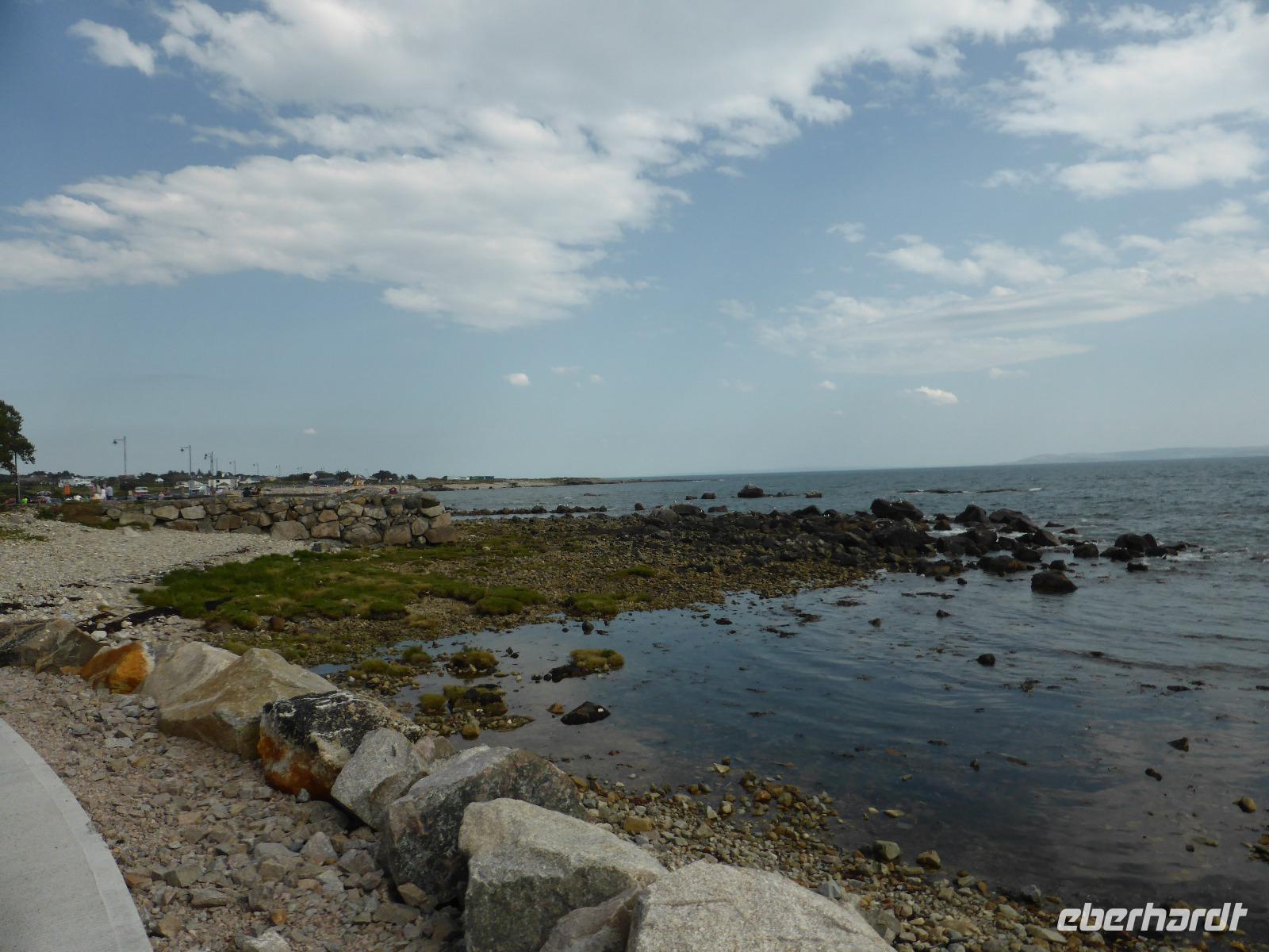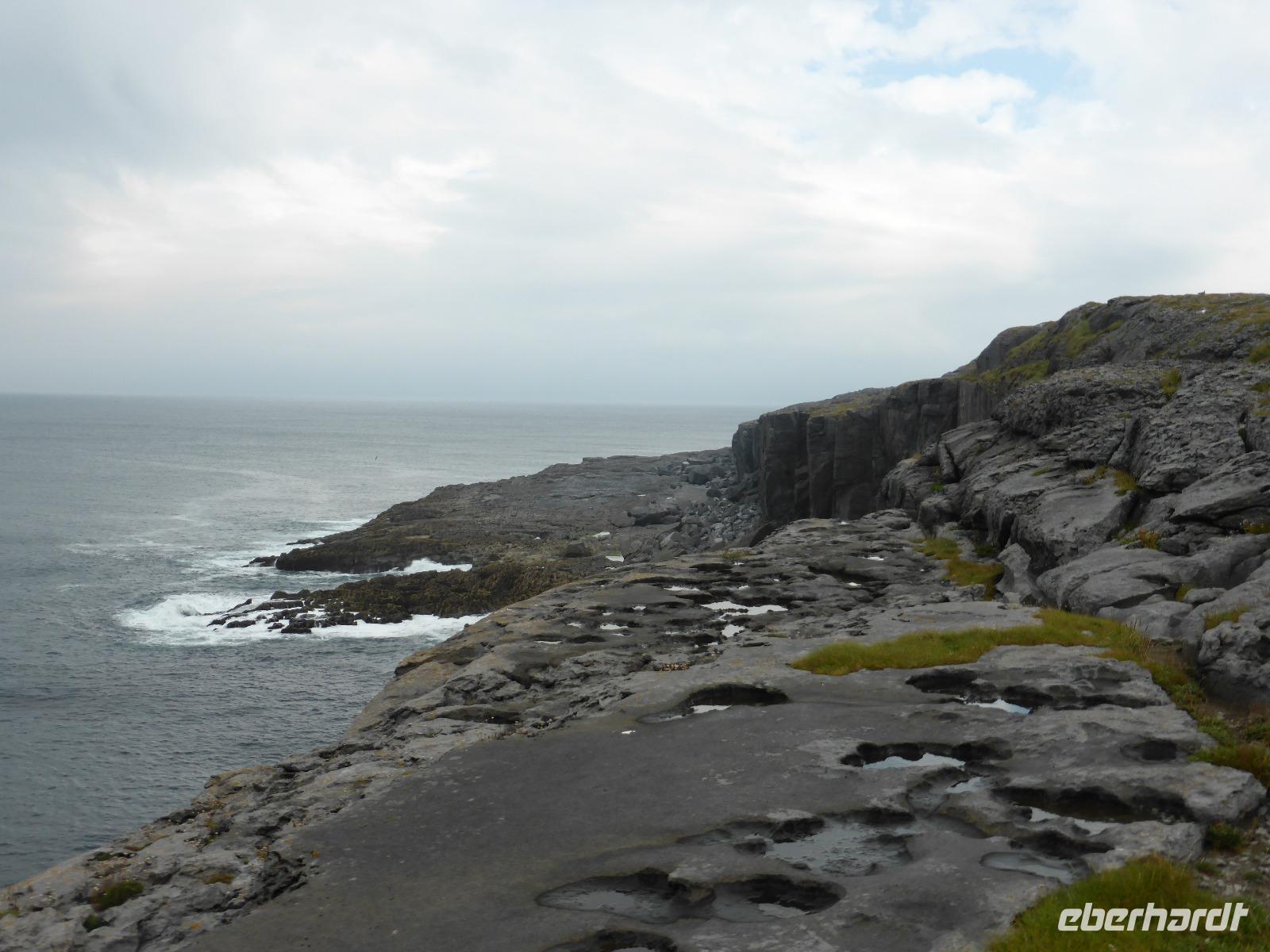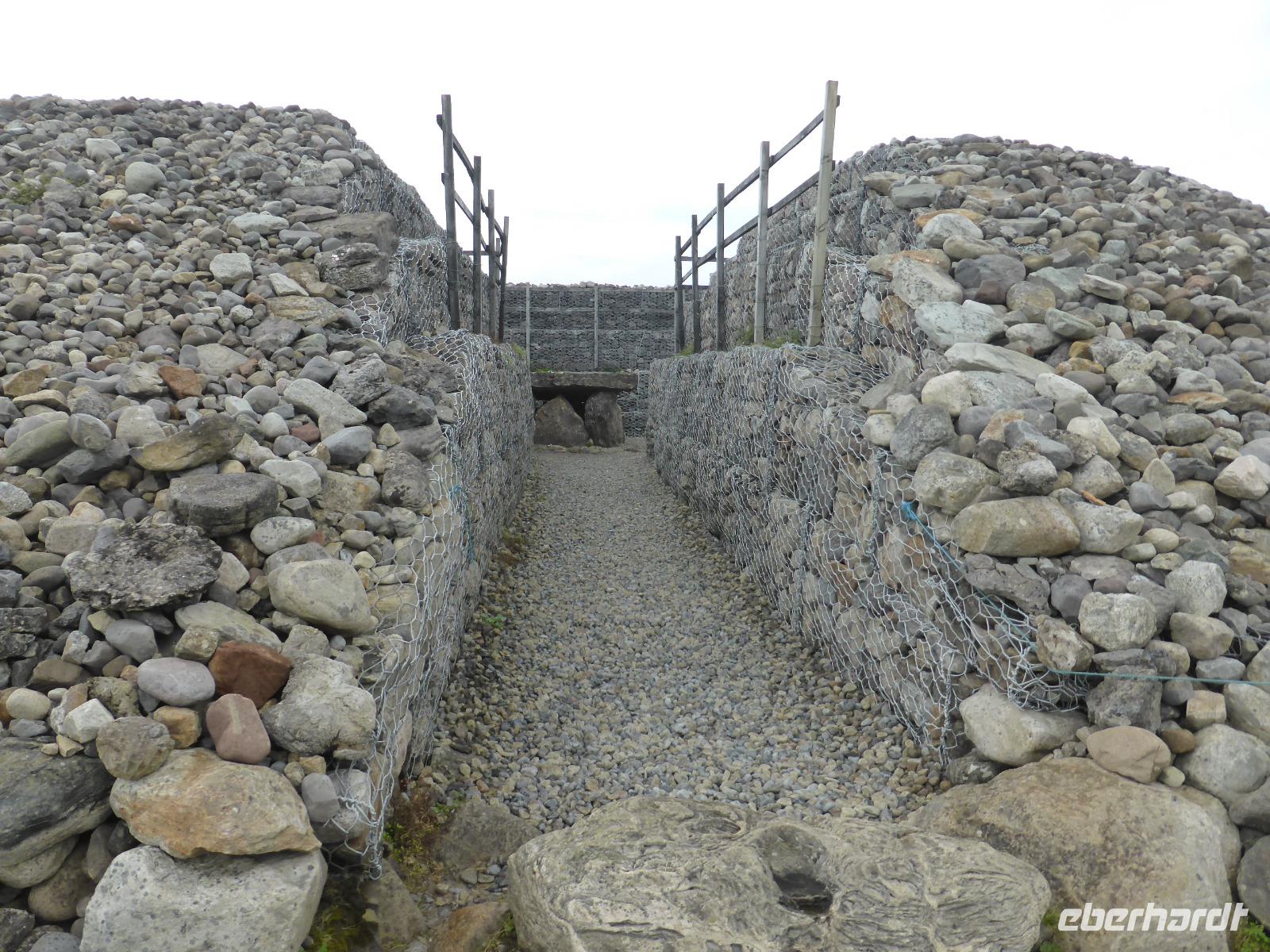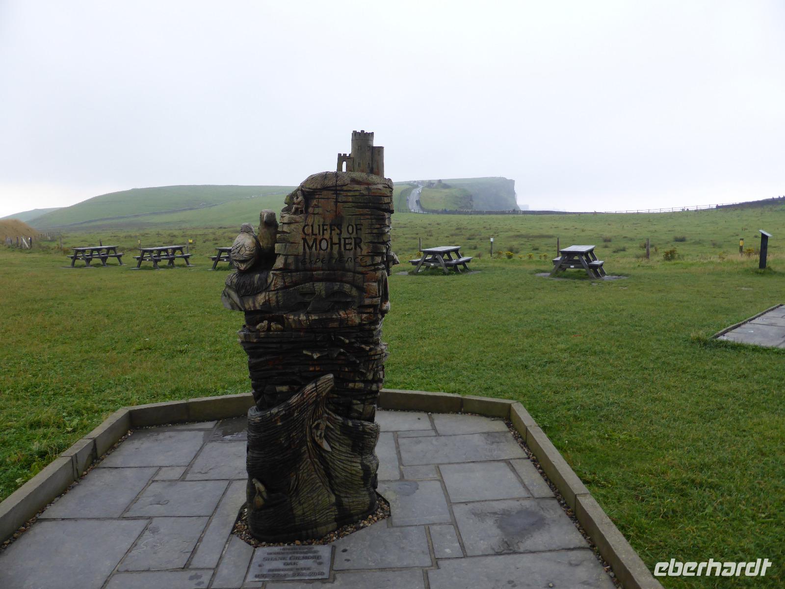 Von Killala aus fuhren wir zu den Klippen von Downpatrick Head. Hier steht ein seit Ende des 14.Jh. vom Festland getrennter Fels im Meer. Auf dem Festland soll einmal eine Kapelle gestanden haben, in der der heilige Patrick Messen las, woran auch der Name „Downpatrick" erinnert. Unser nächste Stopp galt dem Besucherzentrum Ceide Fields, einer steinzeitlichen Siedlung, deren steinerne Feldumrandungen die Jahrtausende unter dem schützenden Torf überstanden. Zunächst schauten wir uns im Besucherzentrum einen Film an und anschließend ging es hinaus auf die Felder. Lange hielten wir es im Freien nicht aus, denn aufgrund der Windstille plagten uns unzählige winzige Midges (Mücken). Angenehmer war es sich wieder im Besucherzentrum aufzuhalten. In ihm befindet sich auch eine kleine Ausstellung über die steinzeitlichen Siedler, über die Entstehung von Torf sowie ein Cafè. Vor unserer Weiterfahrt versuchten wir vergebens, die Midgesschwärme aus dem Bus zu bekommen. Vergebens. Etwas Abhilfe verschaffte uns das Zuschalten der Klimaanlage. Uns blieb nichts weiter übrig, als an einer etwas windigeren Stelle und weit abseits jeglichen Torfes noch einmal anzuhalten und die Mücken zu vertreiben. Unser nächster Stopp war am Informationszentrum des Ballycroy Nationalparkes. Anschließend fuhren wir nach Achill Island, der größten und am weitesten westlich gelegenen Insel Irlands. Zuerst fuhren wir auf der Panoramastraße des Wild Atlantik Way entlang der Clew Bay und legten zwei längere Fotostopps ein. Danach ging es zum weiten Sandstrand von Keel. Im Gegensatz zum Strand von Inishcrone war hier der Strand von gewaltigen Felsklippen begrenzt. Für die Rückfahrt wählten wir die Strecke über Doogort, um am Cottage Heinrich Bölls vorbeifahren zu können. Anschließend ging es über den Achill Sound wieder hinüber zum Festland und über Newport zu unserem Hotel in Ballina.