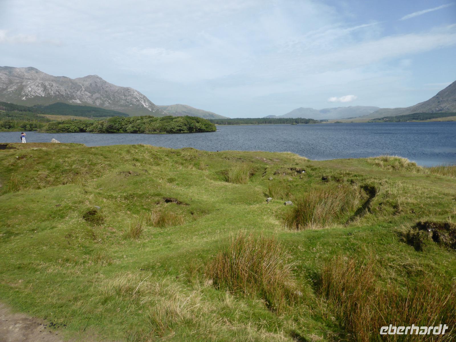 An diesem und auch am folgenden Tag hatten wir mit Thommy einen anderen Fahrer. Nach dem Frühstück begann unsere Fahrt in die Region Connemara. Am Lough Bofin legten wir einen ersten Fotostopp ein und bei Maam Crosss, einer wichtigen Station und dem Schnittpunkt zweier Straßen, machten wir unsere erste Pause. Anschließend fuhren wir durch eine fantastische bergige Landschaft mit vielen Seen voller kleiner bewaldeter Inseln. Im Inagh Tal sahen wir auf der linken Seite die Twelve Pins und auf der rechten Seite die Maamturk Mountains. Am idyllischen See Lough Inagh hielten wir für einen Fotostopp und danach ging es zur nahe gelegenen Kylemore Abbey. Mitchell Henry erwarb dieses romantische Anwesen und ließ im 19.Jahrhundert eines von Irlands bezauberndsten Schlössern errichten. Anfang des 20.Jahrhunderts übernahmen Benediktinerinnen die Anlage. Während unseres fast zweistündigen Aufenthaltes besuchten wir die Viktorianischen Gärten und die Kylmore Abbey , den ehemaligen Herrensitz. Einige von uns spazierten am See entlang bis zur neogotischen Kirche. Von der Kylmore Abbey fuhren wir durch in ein großes Gaeltachtgebiet und hielten in Spiddle, einem Erholungsort an der Bucht von Galway. Danach besuchten wir die Stadt Galway und spazierten von der Kathedrale aus ins Stadtzentrum. Dort steht das Lynch Castle, welches dem rechtschaffenden ehemaligen Bürgermeister Lynch gehörte, der seinen schuldig gesprochenen Sohn eigenhändig hinrichtete, da niemand das Urteil vollstrecken wollte. Viel angenehmer ist da die Sache mit dem Gladdagh-Ring, welcher richtig aufgesteckt anzeigt, wer noch zu haben und wer schon vergeben ist. Galway ist eine der lebendigsten Städte Irlands mit vielen Festivals und unzähligen Straßenmusikanten. Nach unserem Stadtbesuch fuhren wir wieder zu unserem Hotel nach Gort zurück.