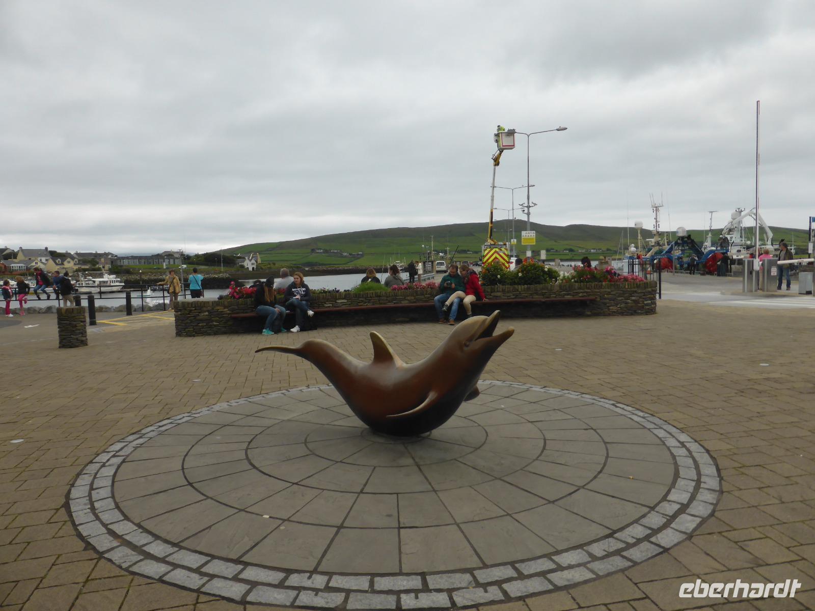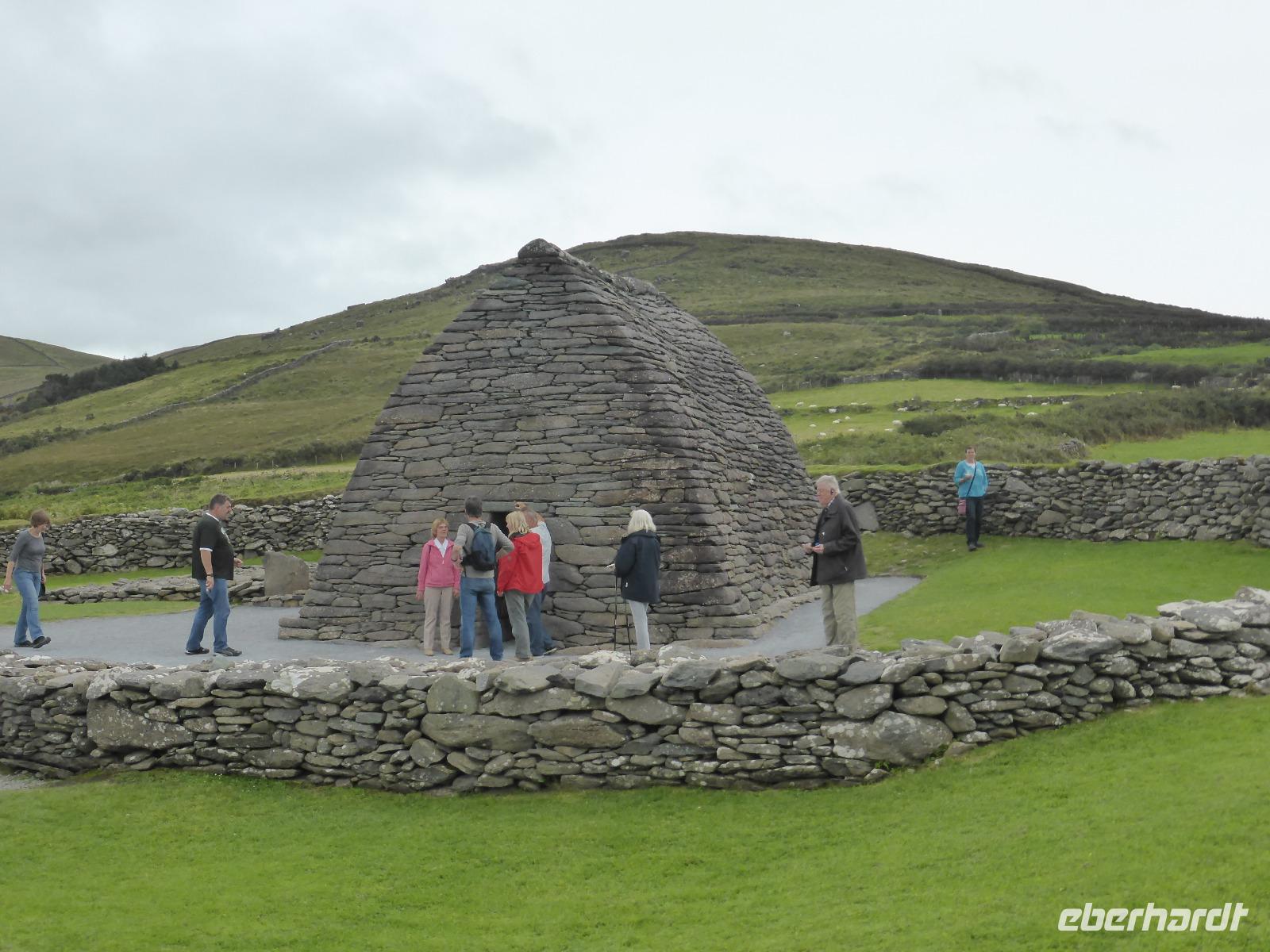 Von Tralee aus fuhren wir entlang der Tralee Bay und über die Berge nach Dingle, dem Hauptort der Halbinsel. Nach einem kurzen Stopp ging es weiter zu den fast 4000 Jahre alten steinernen „Bienenkorbhütten", den Bee Hive Huts. Ein fantastischer Fotostopp auf der Küsten-Panoramastraße war unser Halt am Slea Head View, einem tollen Aussichtspunkt mit Blick auf die Blasket Inseln. Hier bemerkten wir wieder unsere lieben „Freunde", die Midges, aber es war bei weitem nicht so schlimm wie zuvor in den Ceide Fields. Einen weiteren schönen Fotostopp legten wir am Clogher Head-View ein und von dort ging es zum Gallarus Oratory, einer steinernen 1200 Jahre alten Kapelle. Zur Mittagspause fuhren wir anschließend wieder nach Dingle zurück. In der Bucht von Dingle lebt Fungie, ein Delfin, welcher die Nähe zu den Menschen sucht. Täglich werden Bootsfahrten zu ihm angeboten und wer es versuchen möchte, der kann mit Fungie schwimmen gehen. Nach unserer Mittagspause fuhren wir zum Strand von Inch, wo die Möglichkeit bestand, am Strand entlang zu laufen und Muscheln zu suchen. Anschließend ging es zurück zu unserem Hotel in Tralee. Am Abend stand für viele von uns der Besuch des Folklore-Theaters Siamsa Tire auf dem Programm. Die Vorstellung „Oilean" war ein tolles Erlebnis, von dem wir noch lange erzählten.