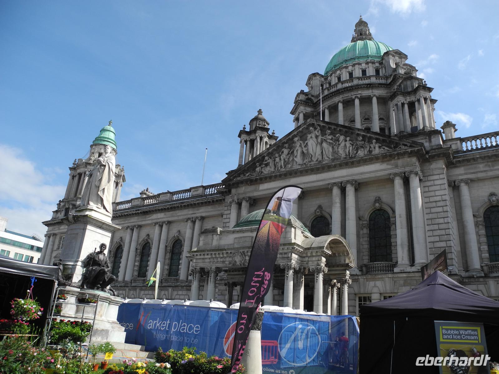 Über die Autobahn und am Meer entlang gelangen wir schon bald nach Belfast, wo wir in der adrett wirkenden Stadt erst etwas Zeit alleine verbringen bevor wir mit unserer netten, örtlichen Reisleiterin eine Stadtrundfahrt erleben.