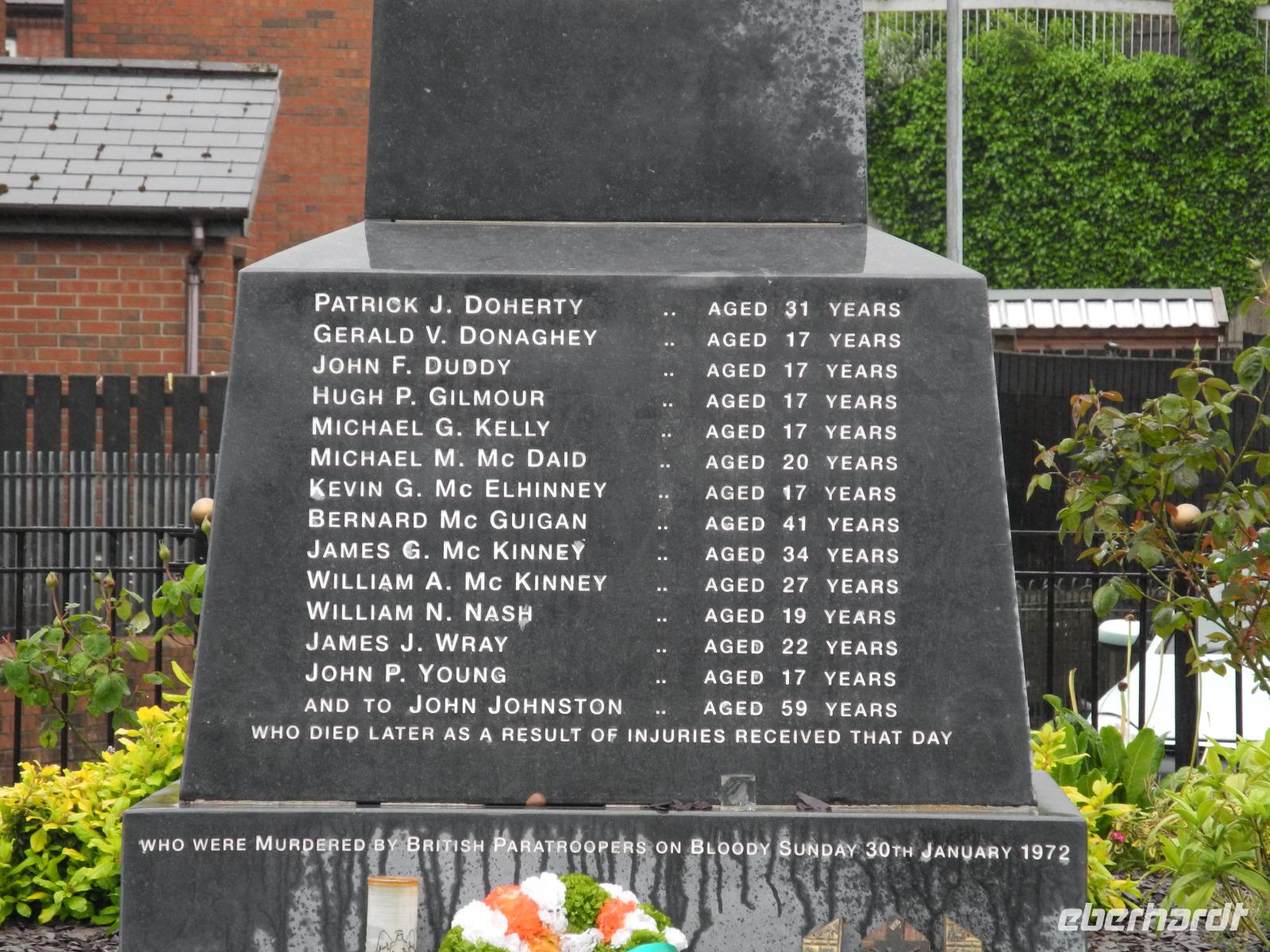 Gemütlich fahren wir dann weiter in die Stadt Londonderry bzw. Derry, mit ihrer mauerumsäumten Innenstadt, der spannenden Brückenkonstruktion und inzwischen auch mit etwas besserem Wetter. Das „Memorial of Bloody Sunday" steht zwar für ein besonders trauriges Ereignis in dieser Stadt, dennoch wirkt auch Derry auf uns fröhlich und ungezwungen.