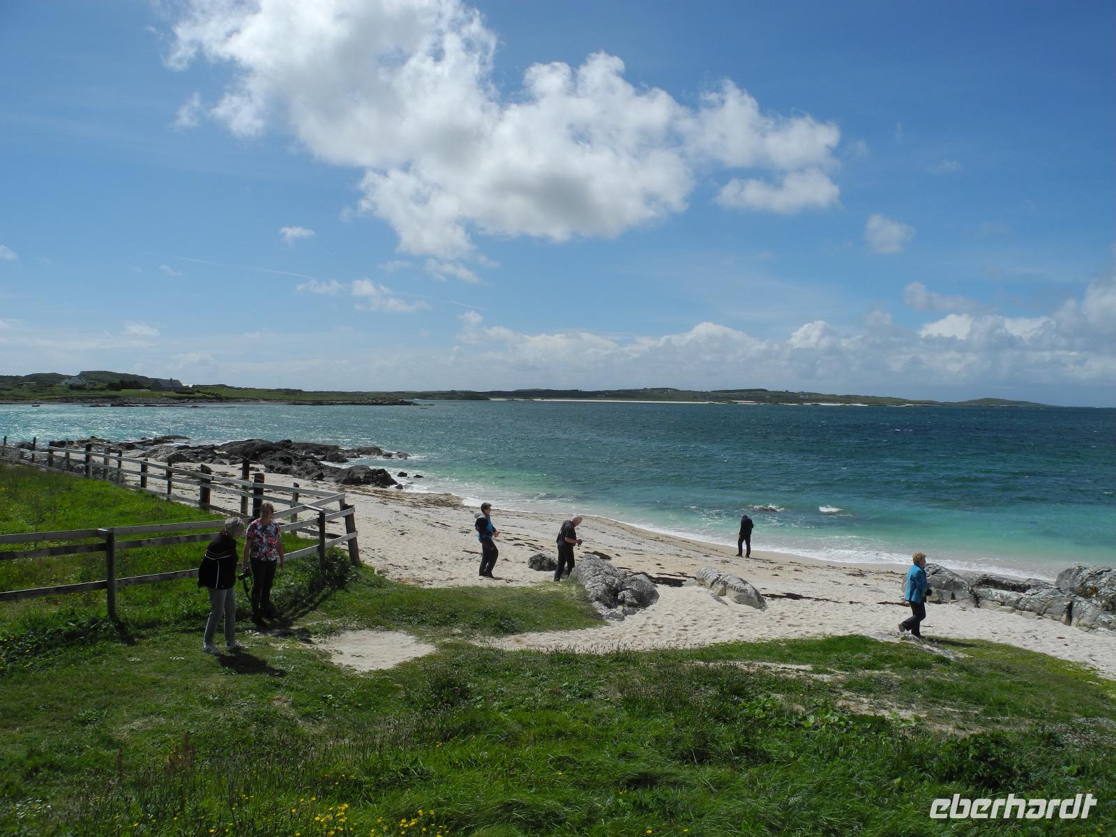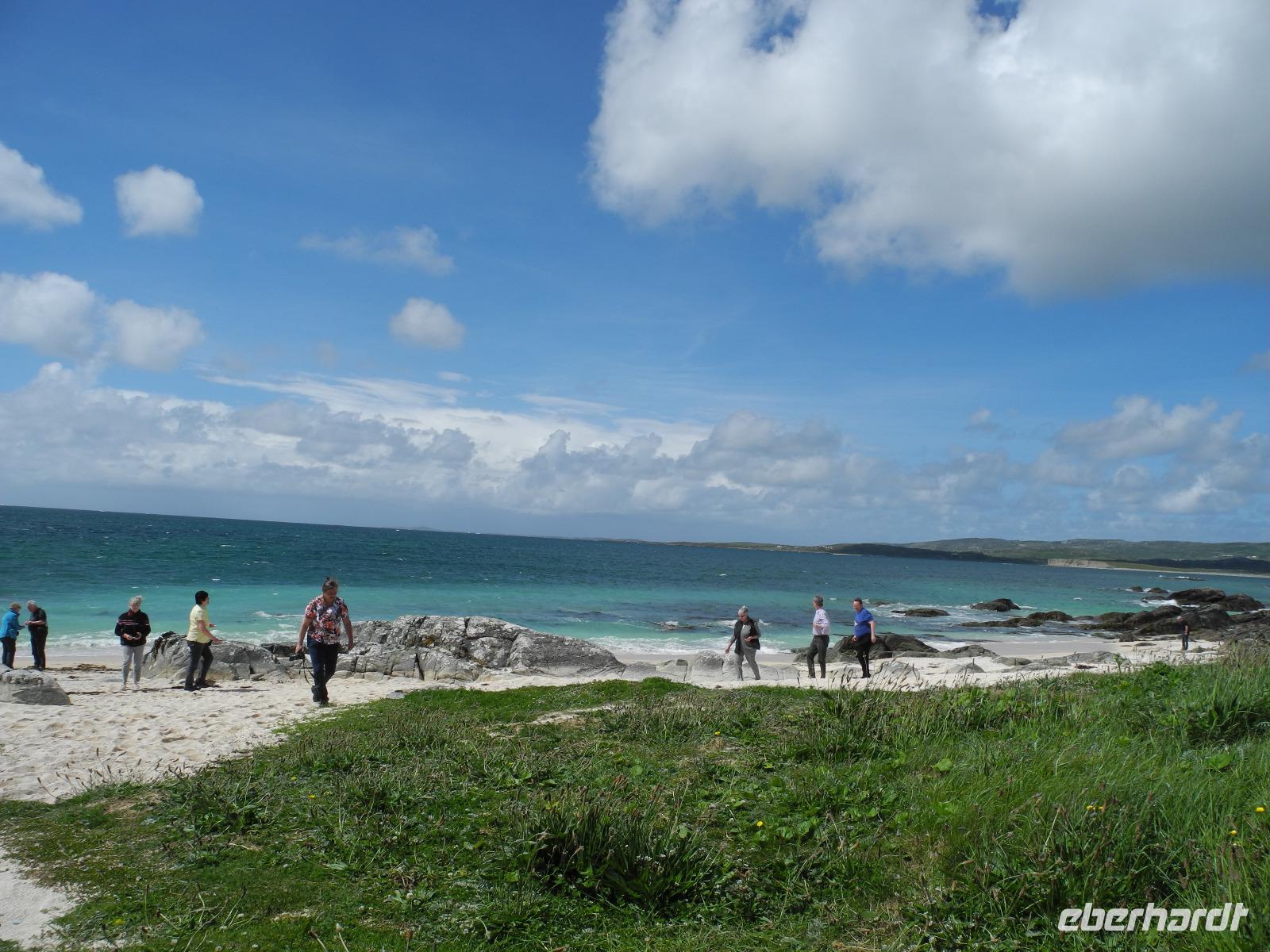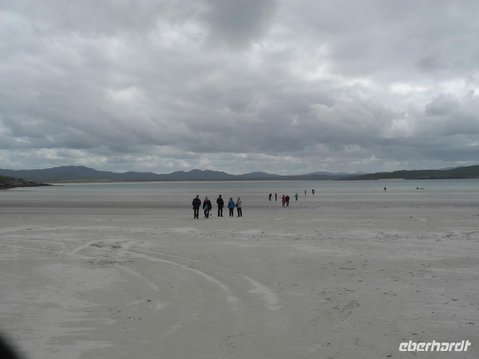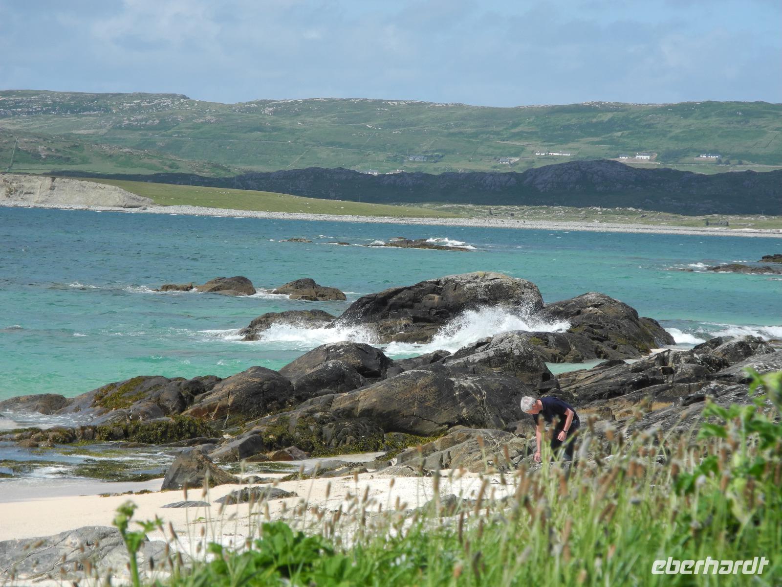 Nun fahren wir bei sonnigem Wetter durch den wildromantischen und touristisch wenig berührten Norden des County Donegal und halten immer gerade dort an, wo es uns gefällt und landen schließlich an einem langgedehnten Traumstrand, wo wir eine ganze Weile bleiben, um den sonnigen Nachmittag zu genießen, bevor wir wieder ins Hotel nach Letterkenny zurück fahren.
