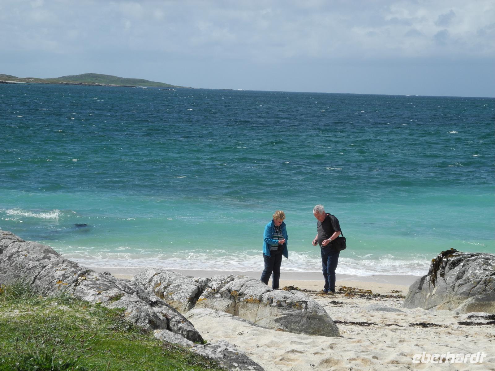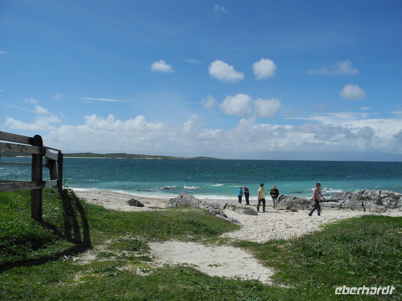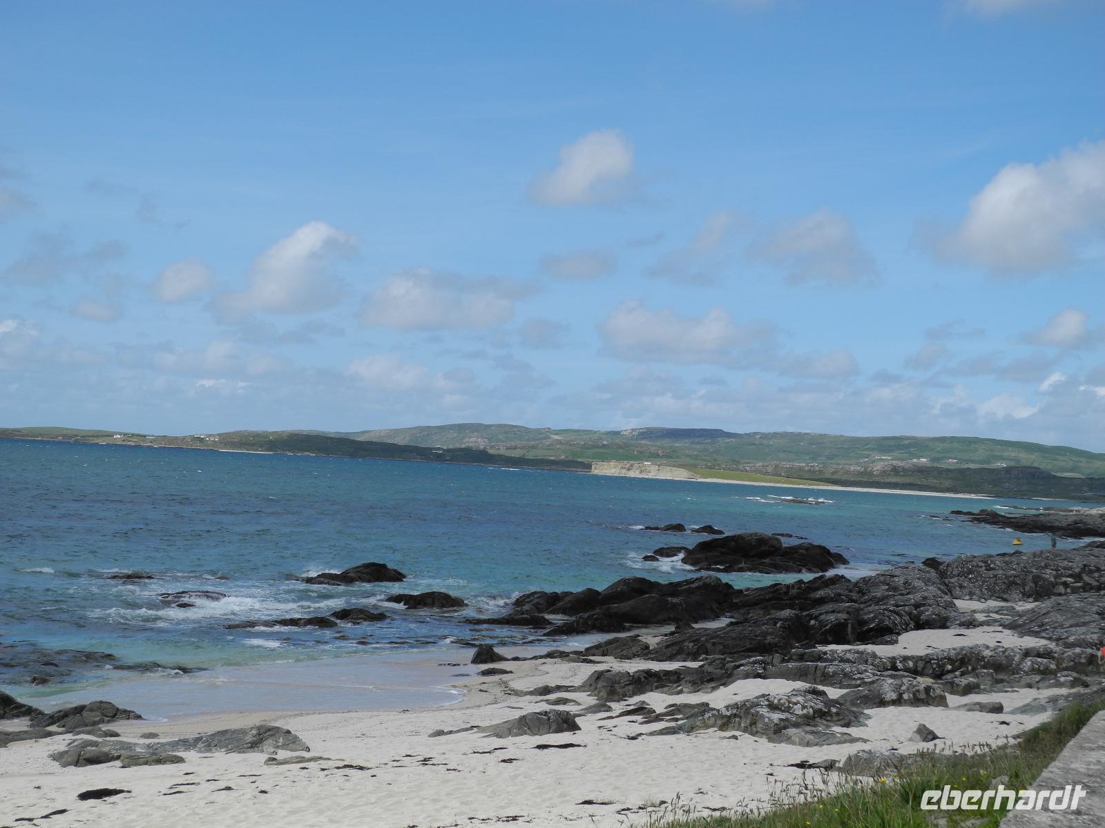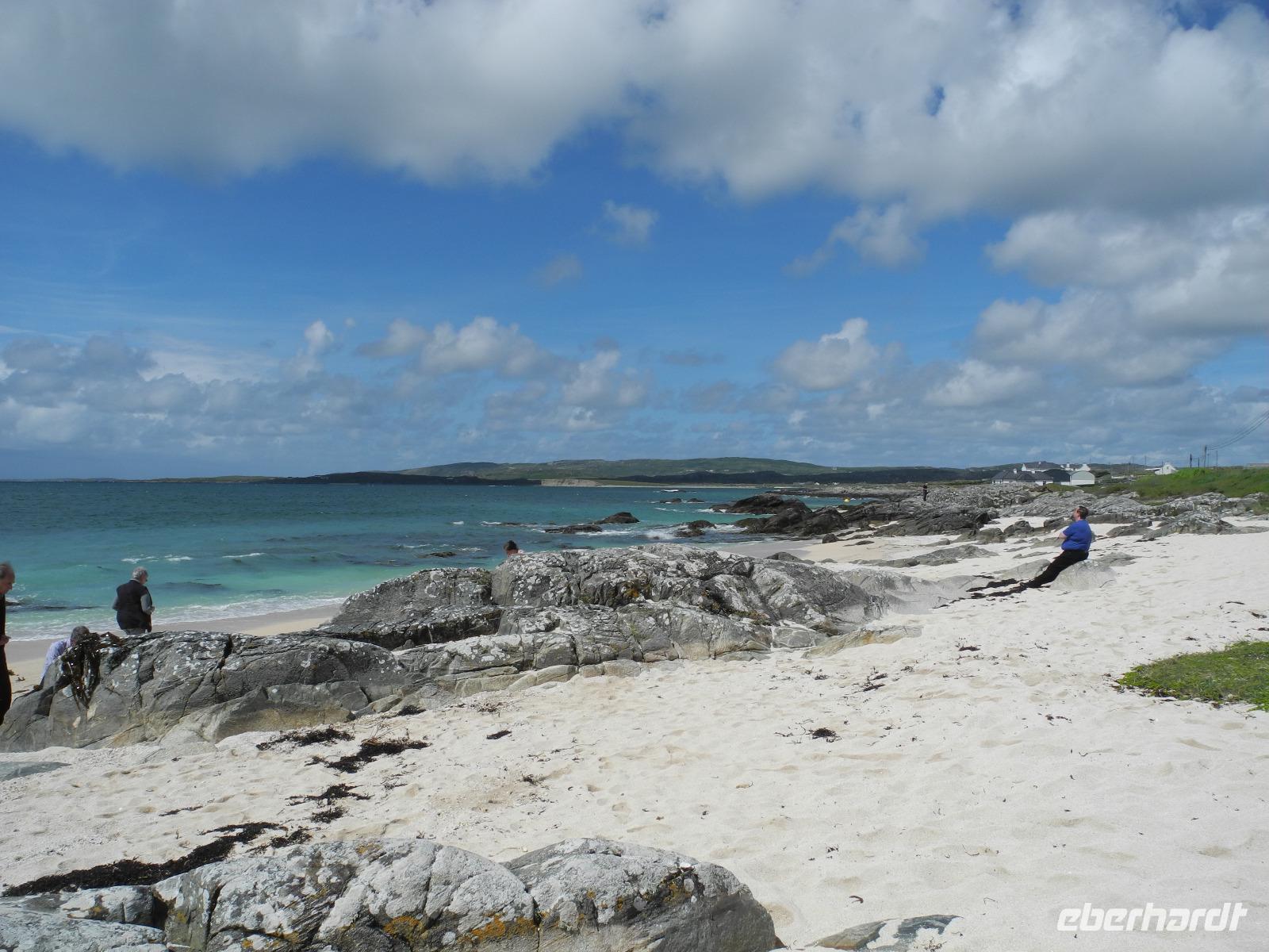 Nun fahren wir bei sonnigem Wetter durch den wildromantischen und touristisch wenig berührten Norden des County Donegal und halten immer gerade dort an, wo es uns gefällt und landen schließlich an einem langgedehnten Traumstrand, wo wir eine ganze Weile bleiben, um den sonnigen Nachmittag zu genießen, bevor wir wieder ins Hotel nach Letterkenny zurück fahren.