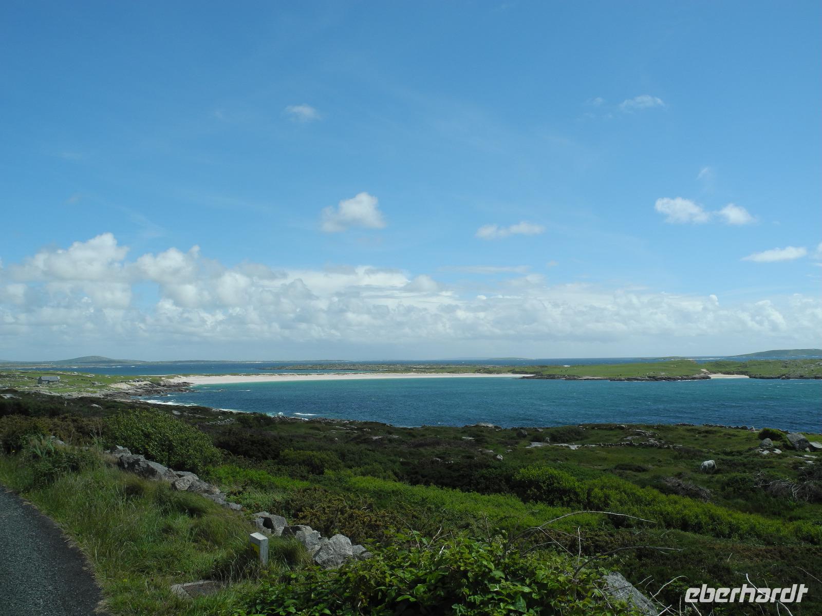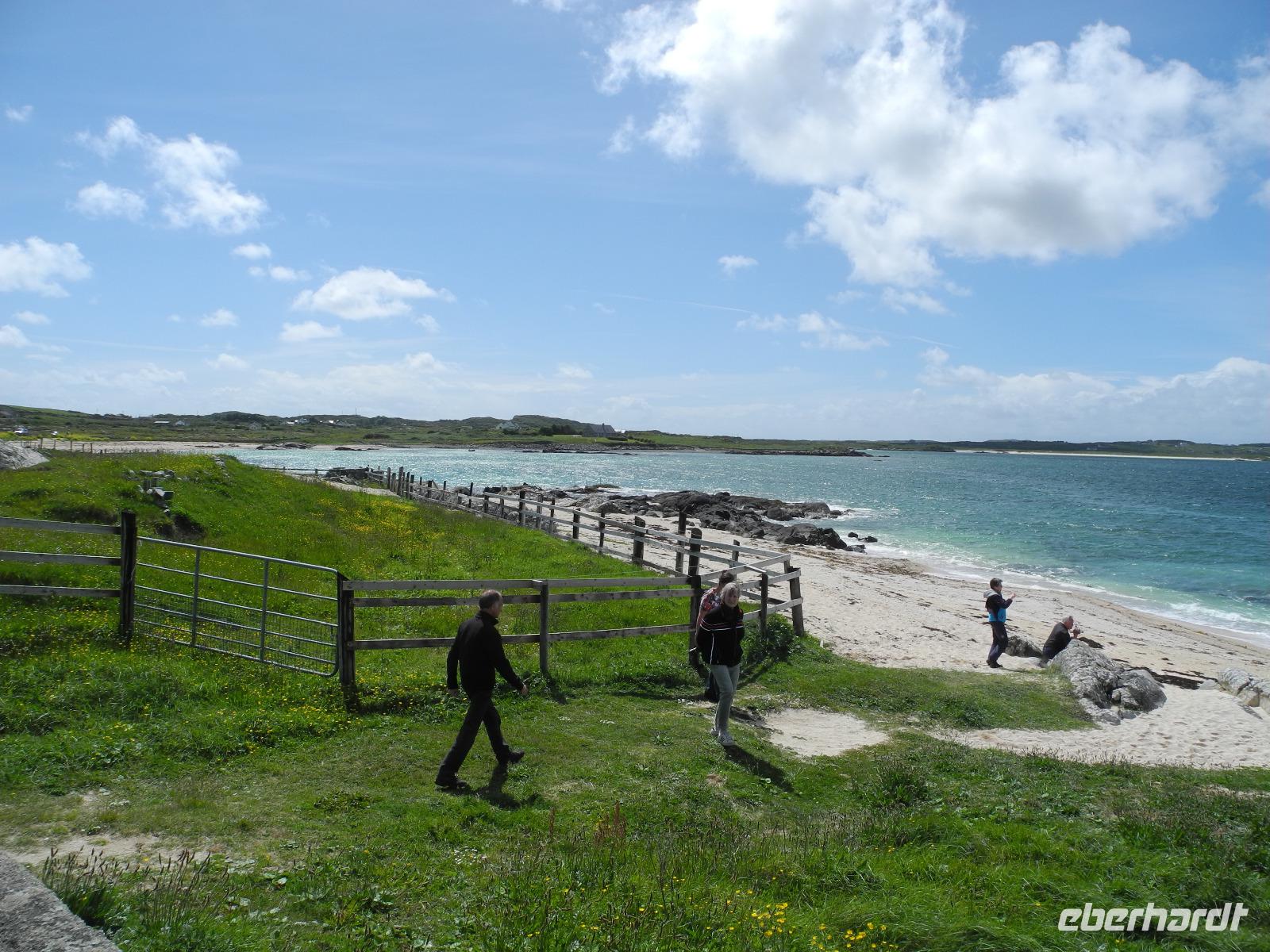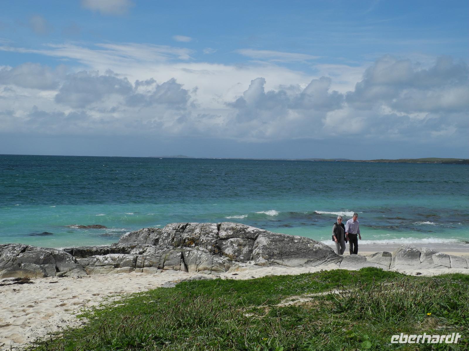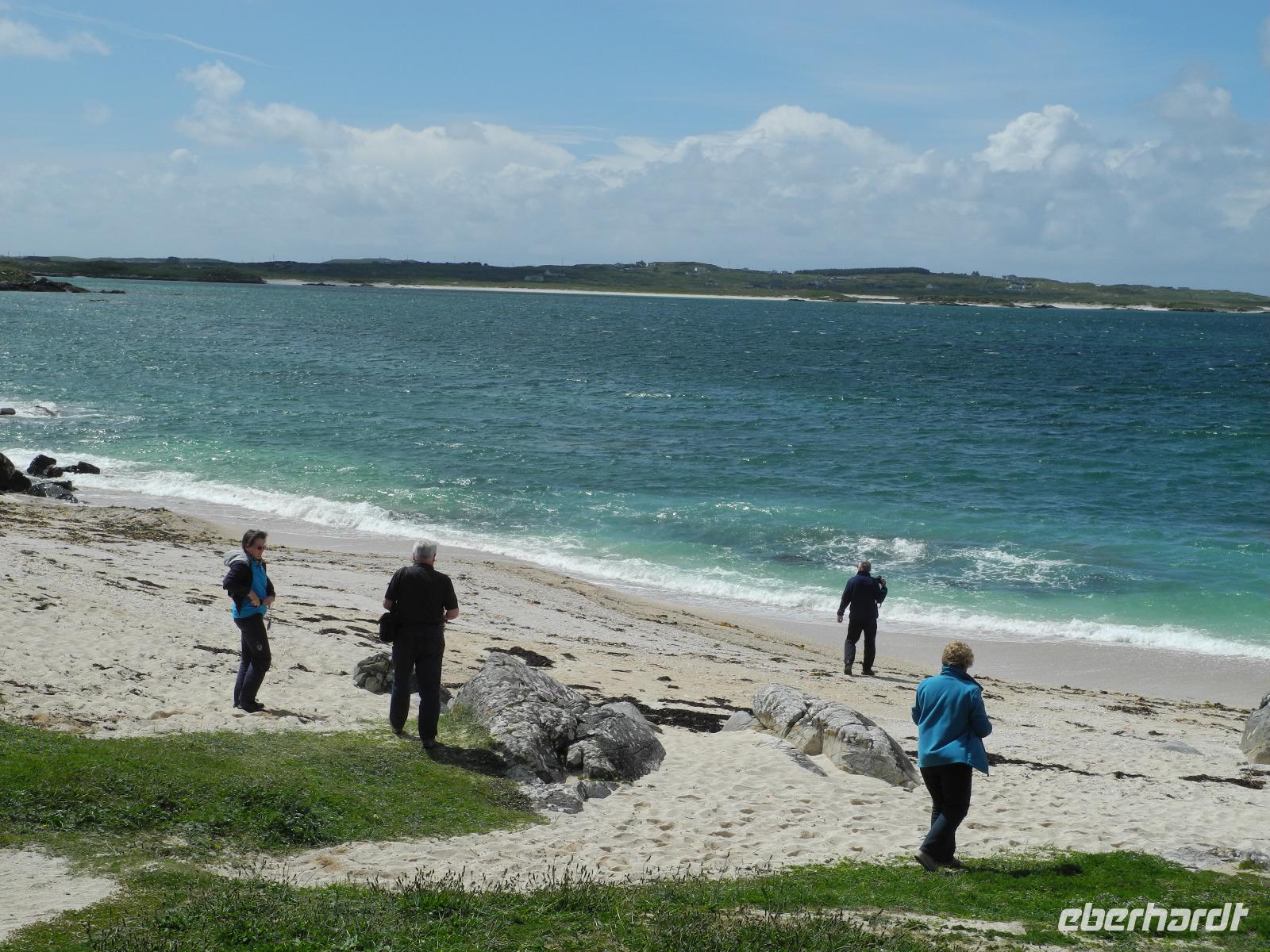 Nun fahren wir bei sonnigem Wetter durch den wildromantischen und touristisch wenig berührten Norden des County Donegal und halten immer gerade dort an, wo es uns gefällt und landen schließlich an einem langgedehnten Traumstrand, wo wir eine ganze Weile bleiben, um den sonnigen Nachmittag zu genießen, bevor wir wieder ins Hotel nach Letterkenny zurück fahren.