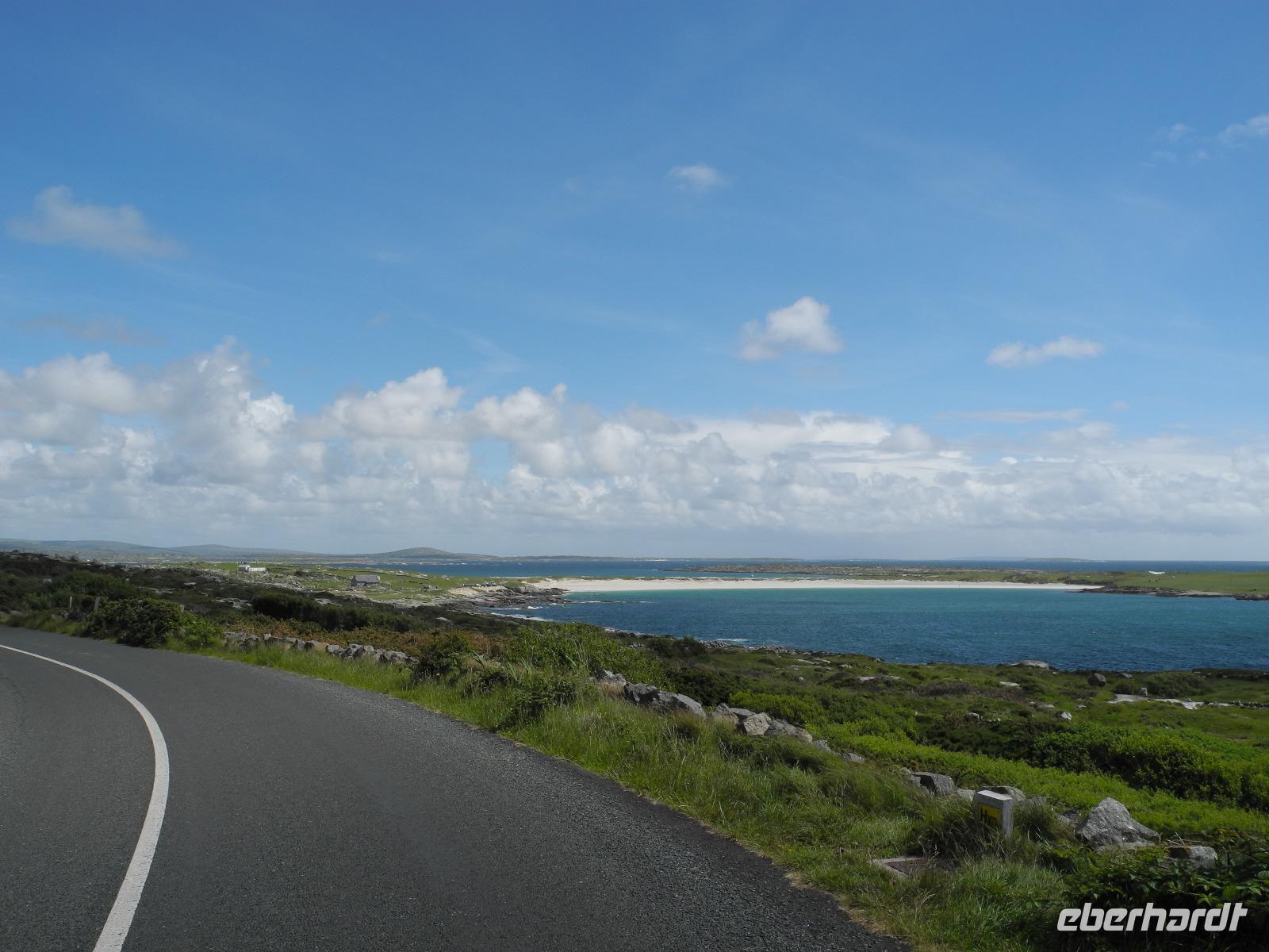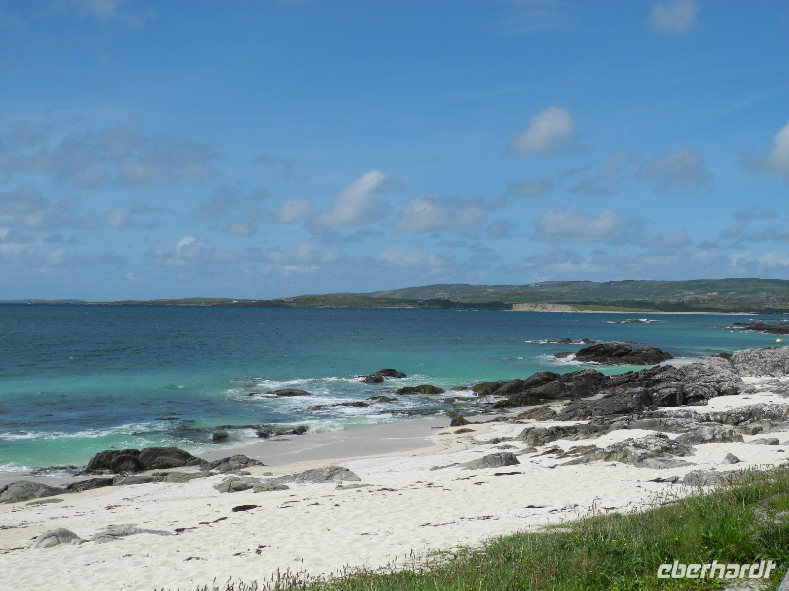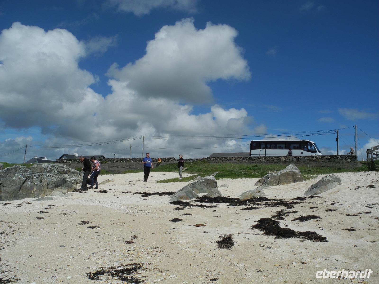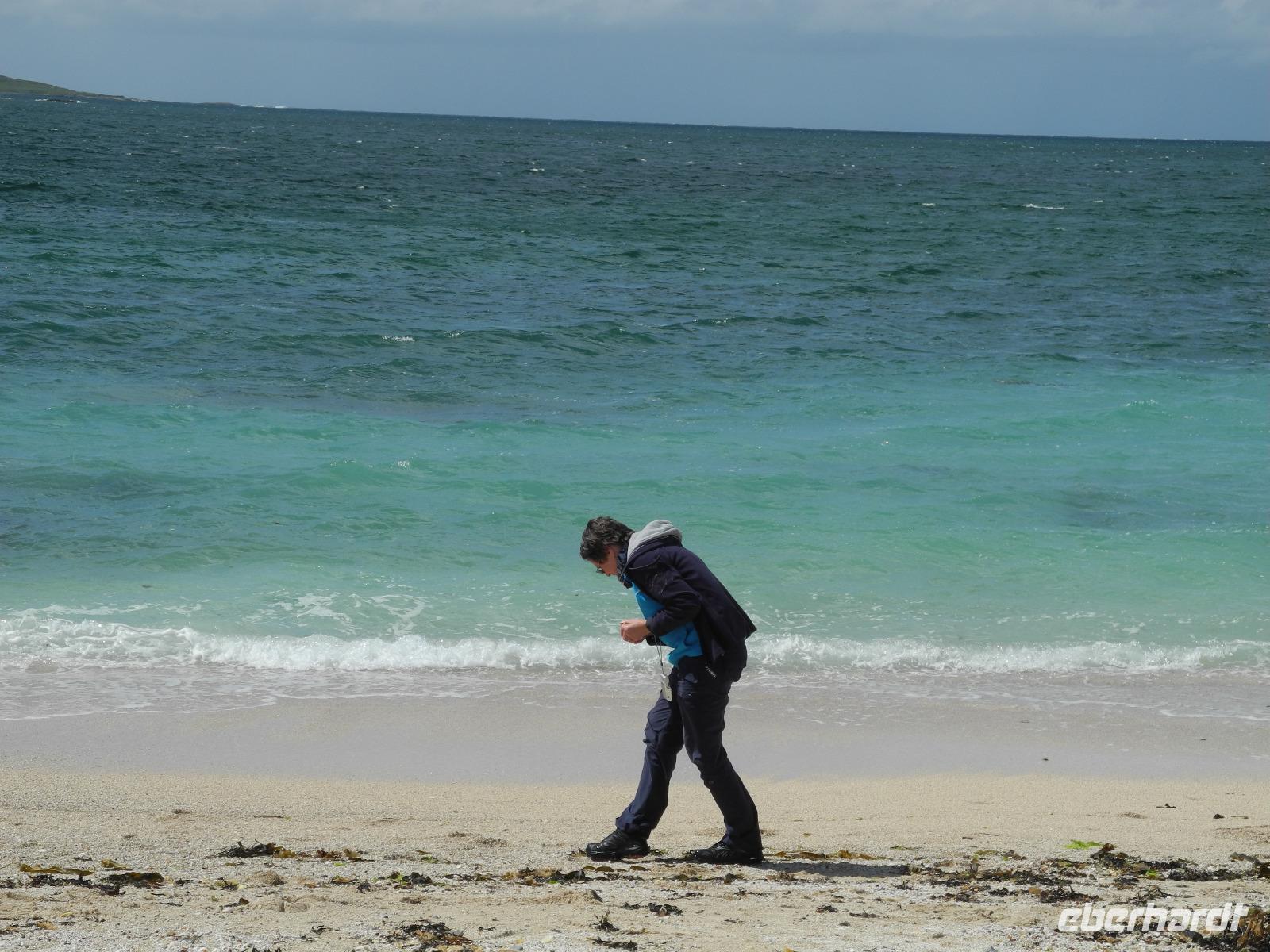 Nun fahren wir bei sonnigem Wetter durch den wildromantischen und touristisch wenig berührten Norden des County Donegal und halten immer gerade dort an, wo es uns gefällt und landen schließlich an einem langgedehnten Traumstrand, wo wir eine ganze Weile bleiben, um den sonnigen Nachmittag zu genießen, bevor wir wieder ins Hotel nach Letterkenny zurück fahren.