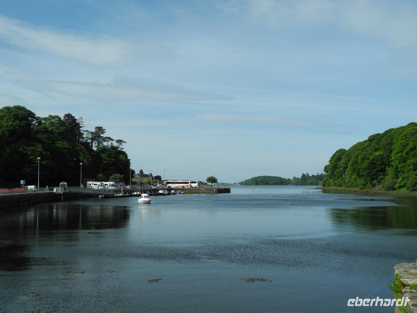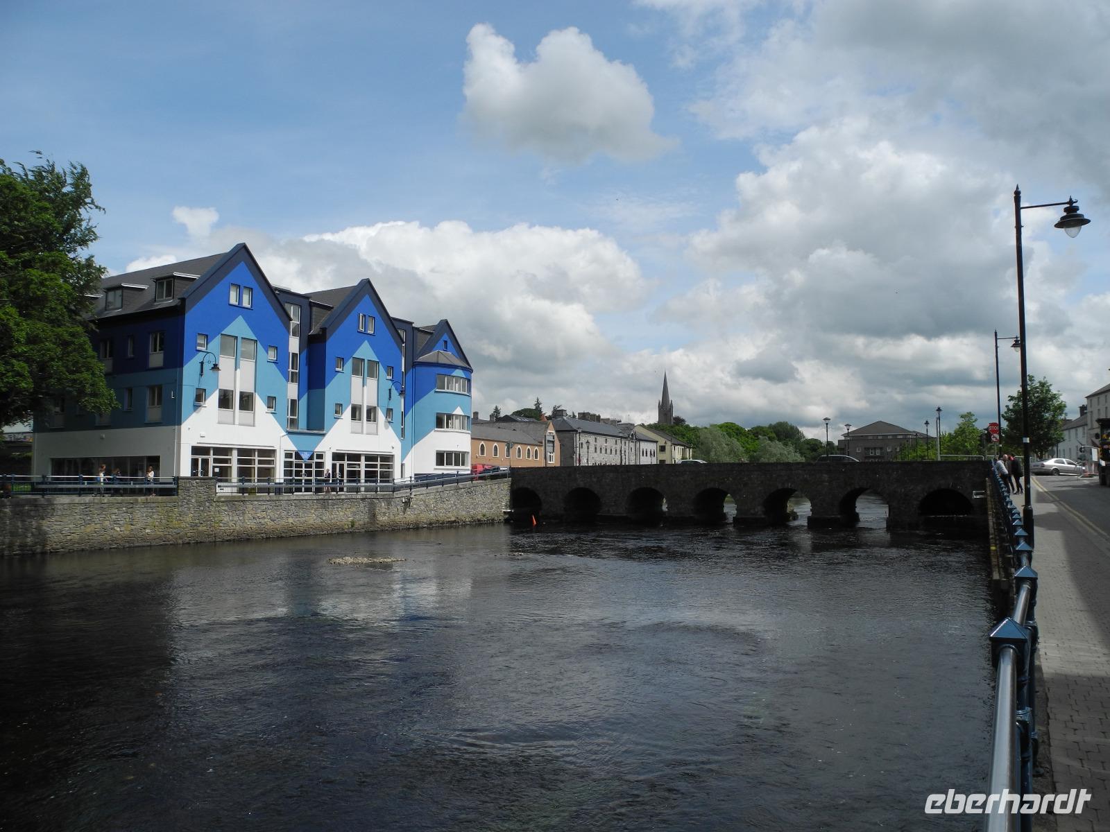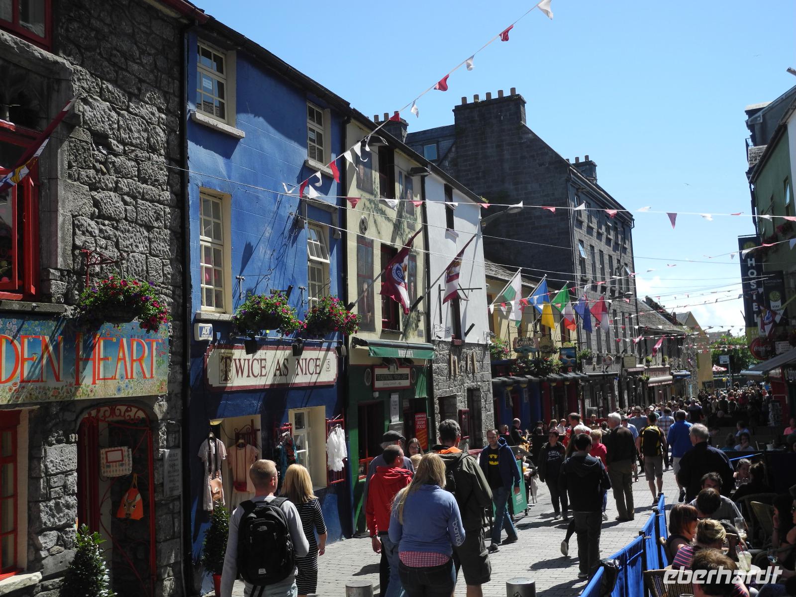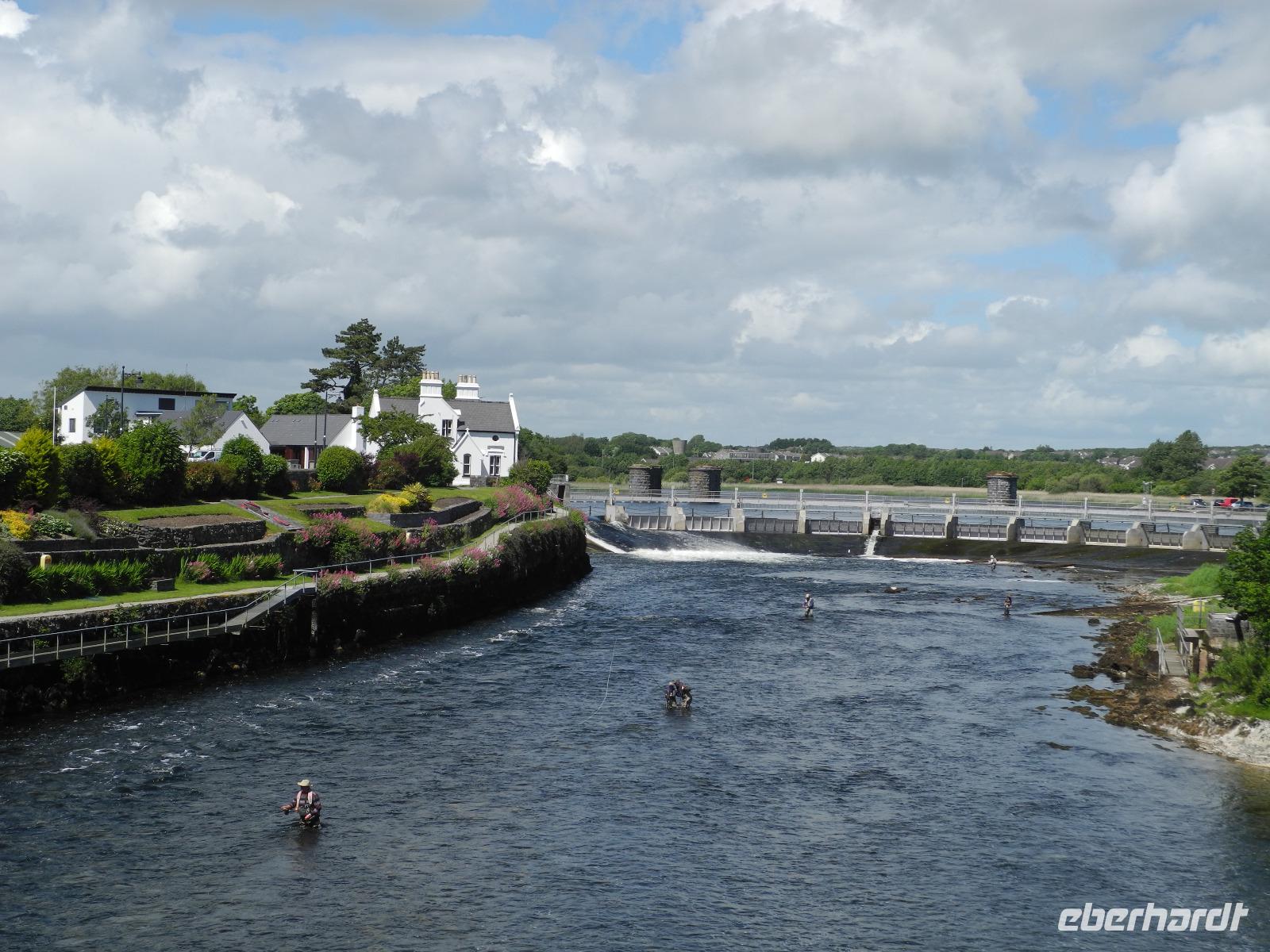 Zu Fuß über die „Salmon Weir Bridge" - und dabei nicht vergessen, nach unten zu schauen in den River Corrib, denn da warten unzählige Lachse darauf, die Stromschnellen hinaufzusteigen. Und dazwischen im River Corrib natürlich wieder einige Angler beim „Flyfishing".Galway ist eine derart lebendige und fröhliche Stadt, aus der man (zumindest der Reiseleiter) am liebsten gar nicht mehr wegfahren möchte. An jeder Ecke Live-Musiker, die ihre irischen Balladen singen oder mit den verschiedensten, akustischen Instrumenten eine wunderbare Atmosphäre in der Stadt verbreiten.