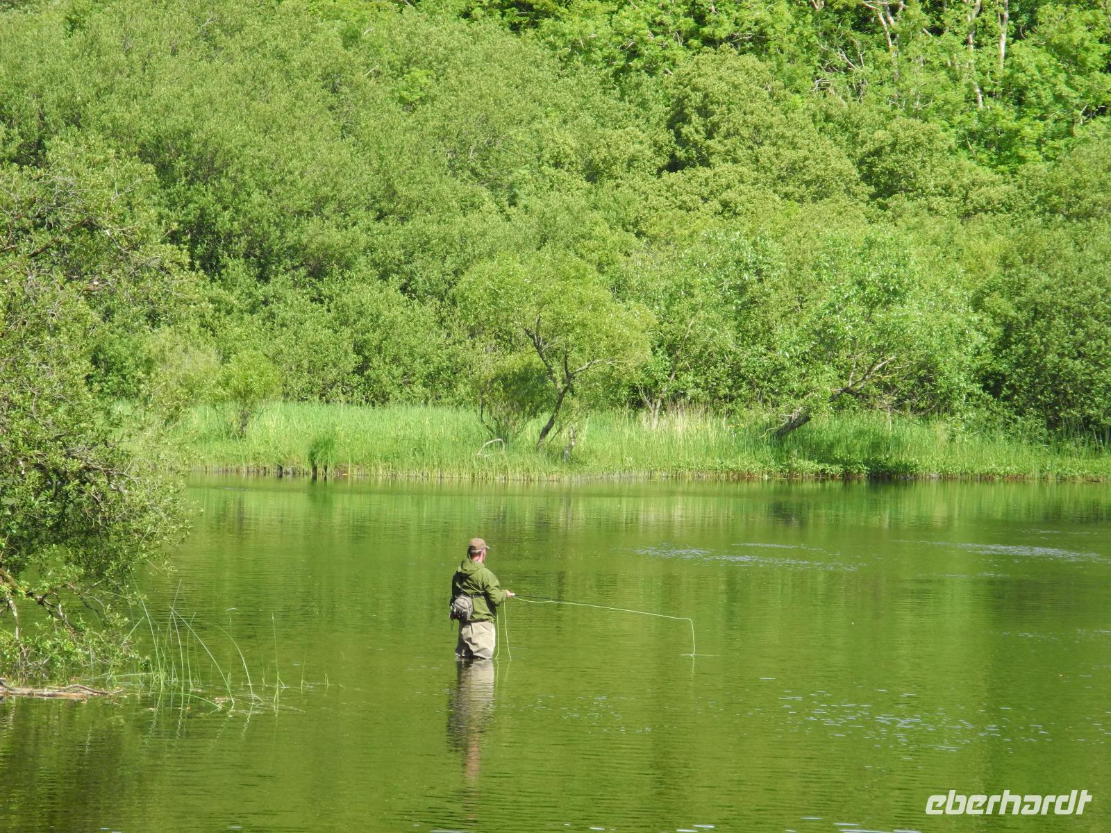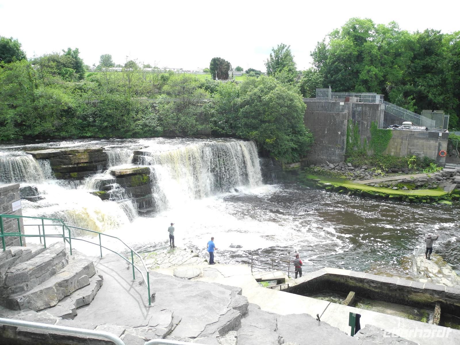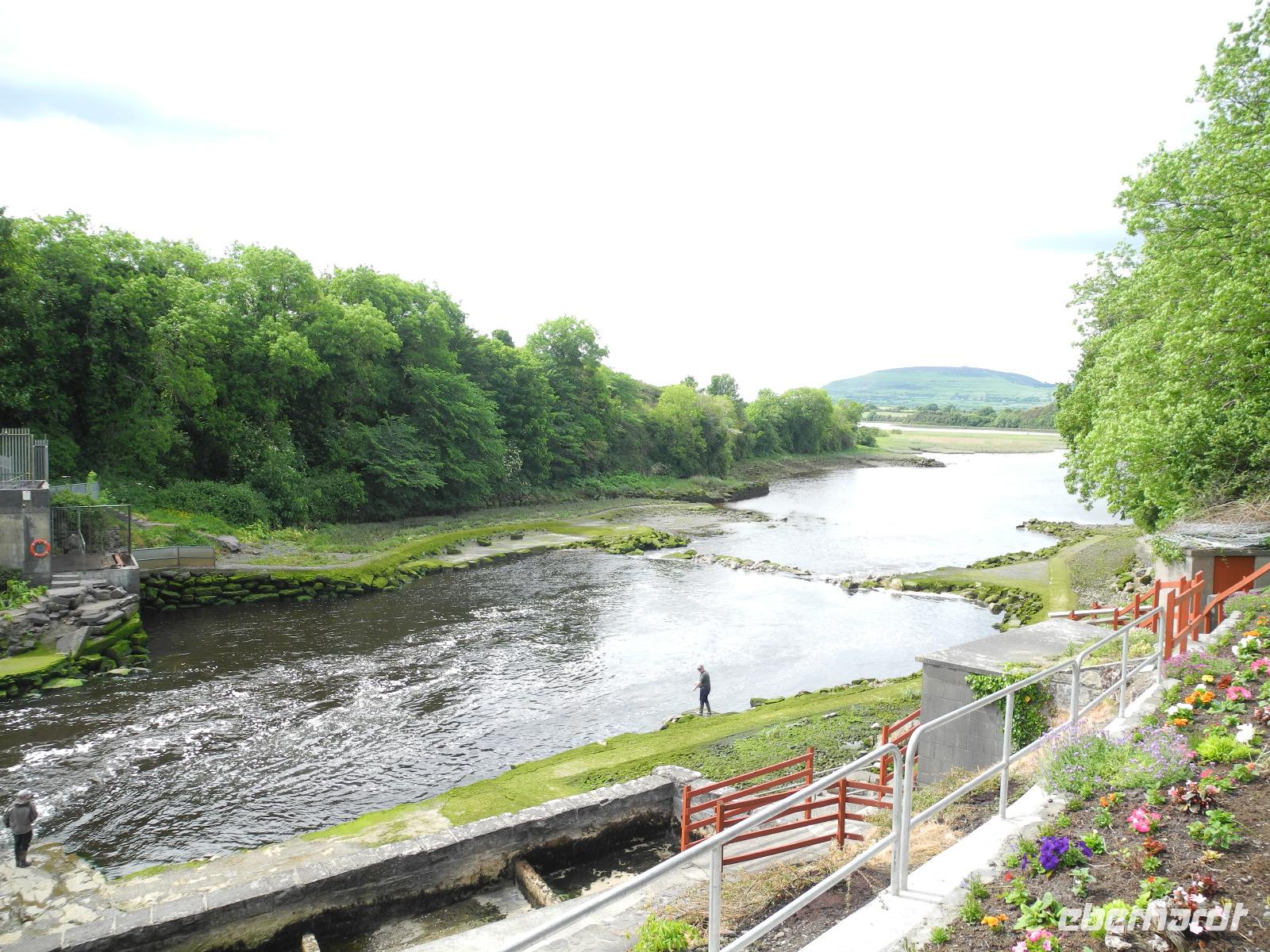 Oisín, unser Busfahrer zeigt uns unterwegs noch eine Anlage an einem Fluss, wo wir beobachten können, wie die Fliegenfischer versuchen, die aufsteigenden Lachse zu überlisten.