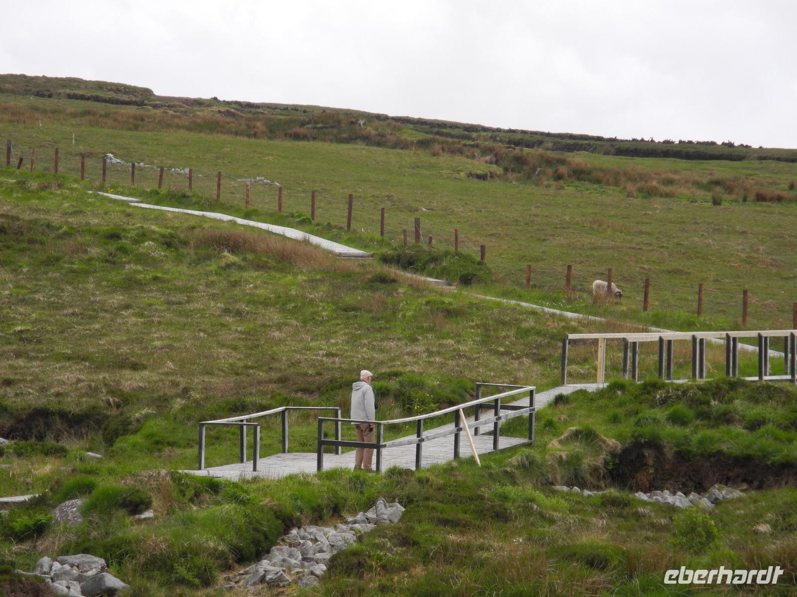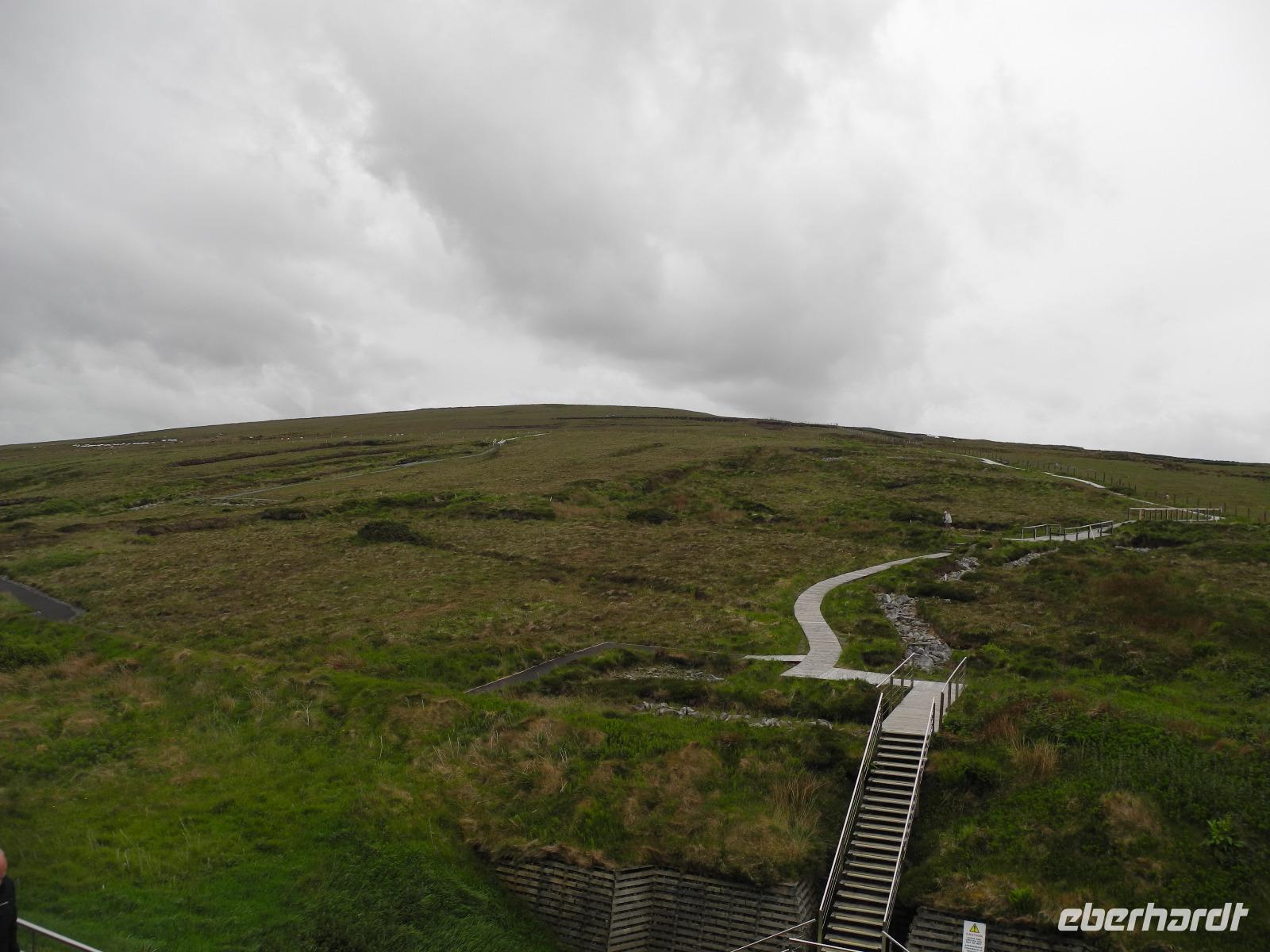 Weiter geht es wieder genau dann, als es kurz regnet, und es wirkt fast schon wie geplant, dass der Regen immer nur kurz dann aufkommt, wenn wir ohnehin weiterfahren wollen - quasi als Abfahrtssignal...Wir gelangen danach zum Ausgrabungsgelände der neolithischen Feldanlage von Céide Fiedls im County Mayo.