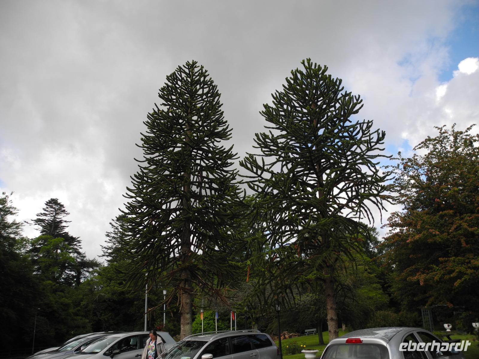 So - nun ist es endlich soweit. Unser Gruppenbild soll ja endlich gemacht werden und da bietet sich dieser sonnige Morgen doch an. Direkt vor den großen, chilenischen Andentannen finden wir auch jemanden, der für uns auf den Auslöser drückt.Unsere Fahrt führt uns zunächst in das kleine Dorf Cong, in dem eine besondere Statue an John Wayne und die in Dublin geborene Maureen O´Hara erinnert und daran, dass sie dort den Film „The Quiet Man" gedreht haben.