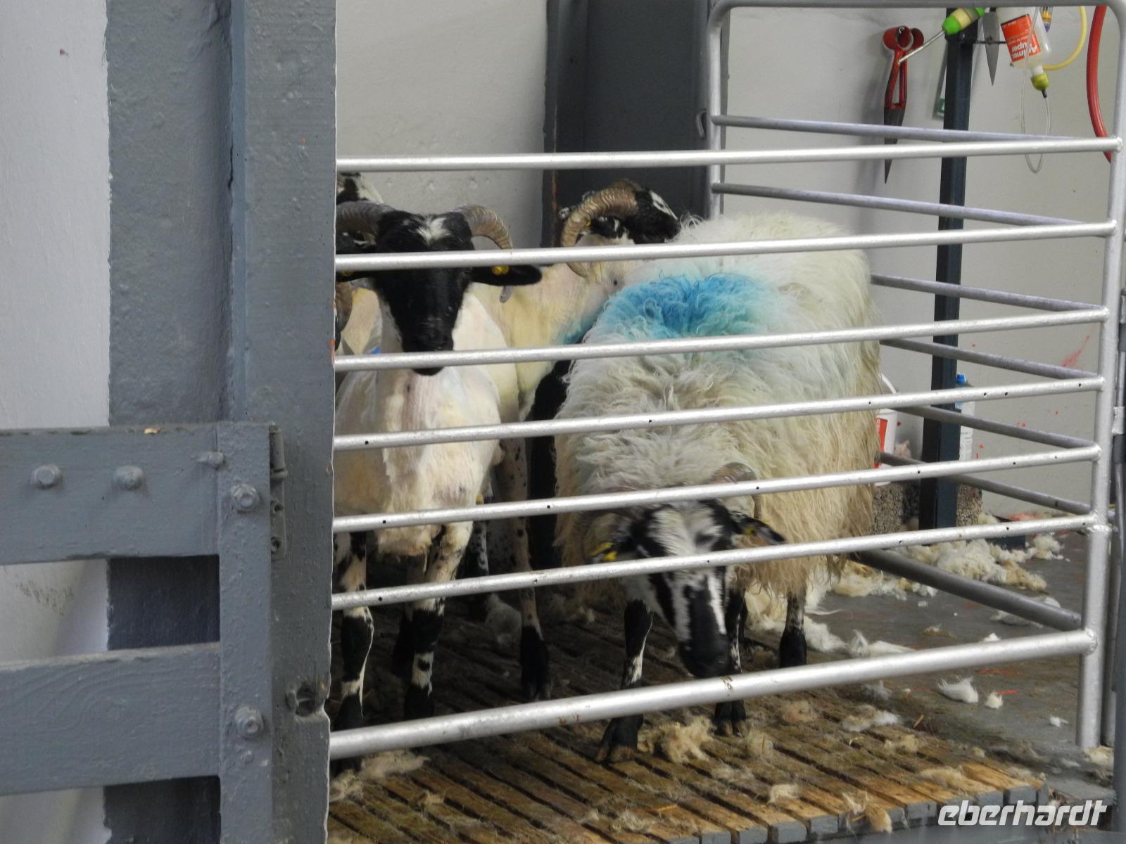 Weiter führt unser Weg in die Berglandschaft hinein zu einem Schafzuchtbetrieb. Es ist spannend, die Hunde bei ihrer Arbeit mit den Schafen beobachten zu können aber auch die anschließende Schafschur zu sehen.