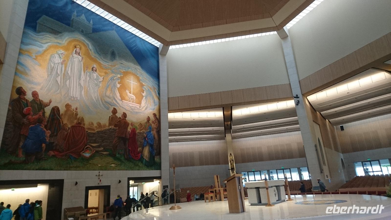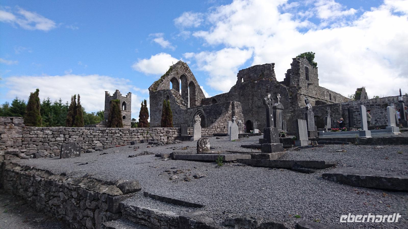 Ein Transfertag ist langweilig? Mitnichten! Natürlich ging es heute eigentlich nur gen Süden nach Gort, aber wir besuchten unterwegs Einiges! Der erste Stopp fand im größten und wichtigsten irischen Wallfahrtsort statt. Knock. Im 19. Jahrhundert fand dort eine Marienerscheinung statt, die von der Kirche zweimal geprüft und für wahr eingestuft wurde. Daraufhin setzten wahre Pilgerströme der Iren und irisch-stämmigen Menschen aus aller Welt ein. Die kleine Wallfahrtskirche platzte bald aus allen Fugen und ein neuer, riesiger Kirchenbau musste her. Knock verfügt sogar über einen eigenen Flughafen und, für eine Busreise immer wichtig, über eine große und gut gewartete Toilettenanlage. Ja, drüber kann man lächeln, aber auch das ist wichtig. Wir schauten uns in Knock alles genau an, ehe es weiter nach Galway ging, wo uns Stefan erst die Innenstadt zeigte und wir dann das unbeschwerte Leben mit kleinen Geschäften, urigen Pubs und viel Livemusic genossen. Doch ganz ohne aktuelle irische Geschichte sollte es auch heute nicht gehen. Als wir Galway verließen, fuhren wir noch vor Erreichen des Hotels in den Coole Park. Lady Gregory, die Namensgeberin unseres heutigen Hotels in Gort, lebte dort einst und gab in ihrem nicht mehr existierenden Herrenhaus vielen Künstlern und Revolutionären der irischen Befreiungsbewegung Unterkunft. Ein Baum, eine Rotbuche, erinnert daran, denn in deren Rinde verewigten sich viele ihrer Besucher mit Unterschriften. Wir sahen sie alle. Dann bestaunten wir noch die einstigen Ausmaße des Herrenhauses und seiner Nebengelasse, die Rotwildherde im Park und die schöne Pflege, unter der all dies stand. Später fuhren wir über den neuen Zubringer zur gerade entstehenden Schnellstraße nach Gort und bezogen zeitig unser Hotel. Denn heute mussten wir zeitiger essen. Im Hotel fand eine große Hochzeitsfeier statt. Interessant, diese mitzuerleben. Das machte mit gefülltem Magen mehr Spaß. Aldo noch ein Punkt mehr auf unserer Reise. Irische Hochzeit miterlebt. Prima!