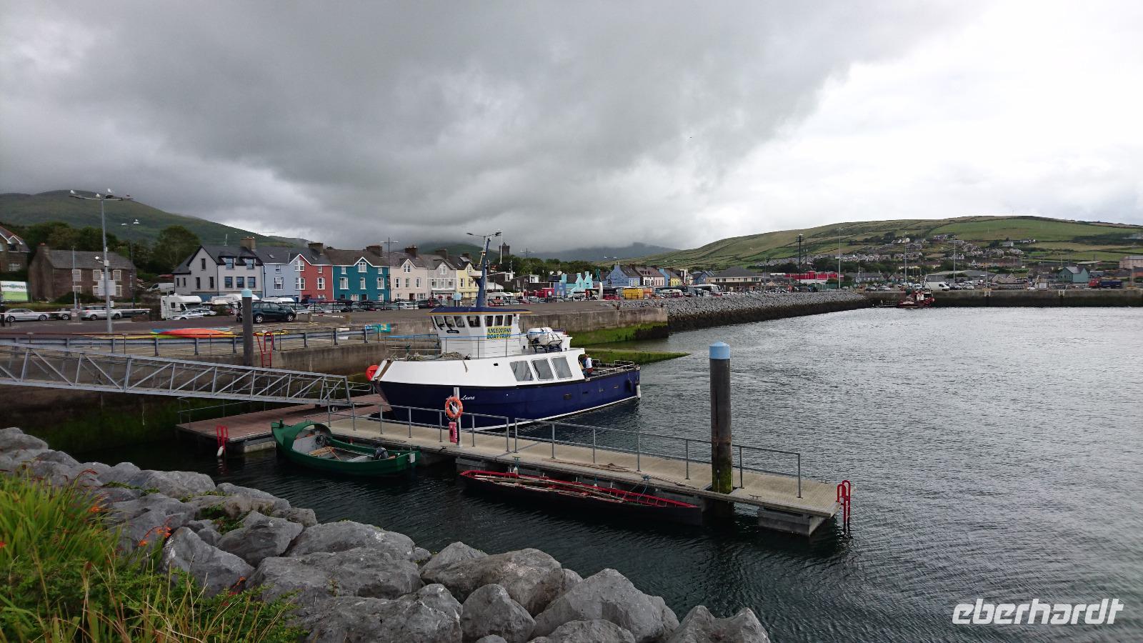 Der Morgen kam schneller, als erwartet. Heute wollte uns Stefan die Halbinsel Dingle zeigen und so fuhren wir bald nach dem Frühstück schon nach Dingle Town, wo wir einen ersten kleinen Bedürfnisstopp machten, uns Stefan schon einige Tipps für unseren längere Aufenthalt ab Mittag gab und wir sahen, dass der Ort vieles zu bieten hatte. Dann ging es, immer schön im Uhrzeigersinn, um keine größeren Fahrzeuge im Gegenverkehr zu erleben, die Dingle-Küste entlang. Wir hatten schönen Blick hinüber zum Ring of Kerry, den wir am nächsten Tag besuchen wollten, und sahen ebenso Jahrhunderte alte Bienenkorbhütten, in denen sich die Menschen damals Unterschlupf gegen Regen und Sturm suchten, wie die Tiere dies meist an den Mauern oder Hecken taten. Dann erreichten wir den Slea Head, einen schönen Aussichtspunkt, wo wir neben der Sicht einen leckeren Kuchen vom dort gerade stehenden Stand probieren konnten und uns über unseren Geburtsbaum im Keltischen informierten, ehe wir weiter zur Nordseite er Halbinsel fuhren und dort nicht nur den einstigen Drehort großer Teile des Films „Ryans Daughter" mi Robert Mitchum sahen, sondern auch den Set des siebenten und voraussichtlich auch des achten Teils der Star-Wars-Filme besuchten. Eine einzigartige Landschaft, die die Natur hier schuf. Schroff und doch leicht, grün und grau zwischen Himmel, Felsen und Meer. Später fuhren wir dann zur längeren Freizeit nach Dingle. Wer mochte, konnte eine Bootsfahrt hinaus zu Fungie, dem Delphin der Bucht, unternehmen, einfach nur Bummeln oder ein Restaurant besuchen. Nach diesem Aufenthalt fuhren wir noch nach Inch, zum längste Sandstrand Irlands und gleichzeitig zu einem tollen Surfer-Paradies. Hier liefen wir durch den Sand, durchs seichte Wasser oder tranken einen Kaffee im kleinen Restaurant, ehe es wieder zurück nach Tralee ging. Nicht zu spät wollten wir im Hotel sein, denn es gab zeitiges Abendessen. Fast alle von uns wollten nämlich heute noch ins Theater, in eine echte irische Show. So besuchten wir am Abend gemeinsam und geführt von Stefan die Show Fado Fado im Irischen Nationaltheater und waren davon wirklich begeistert. Ein toller tag, ein noch tollerer Abend!