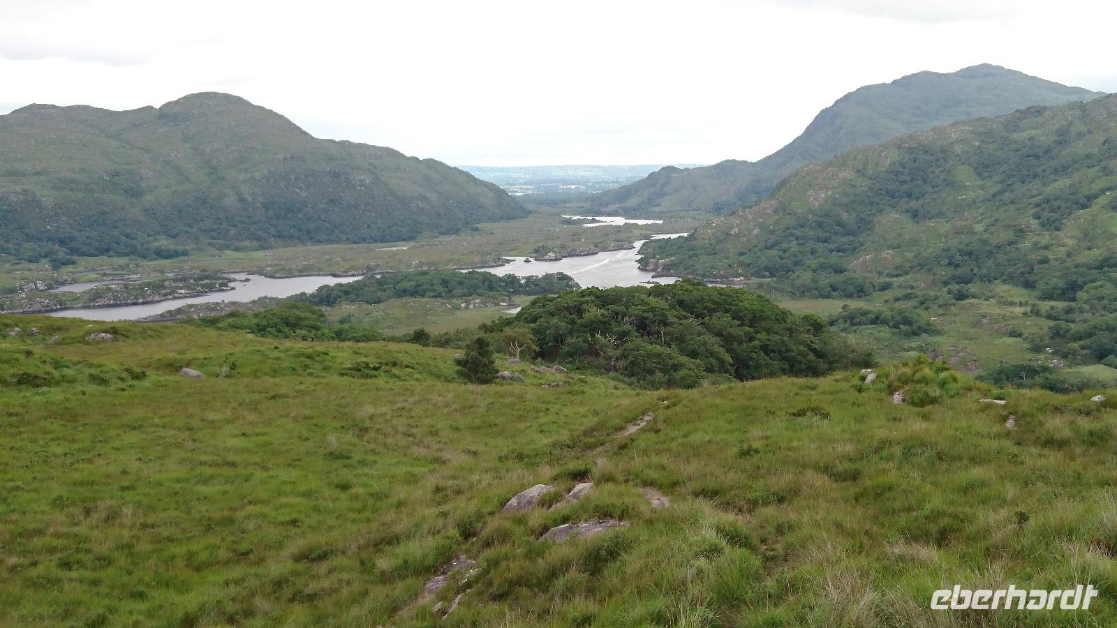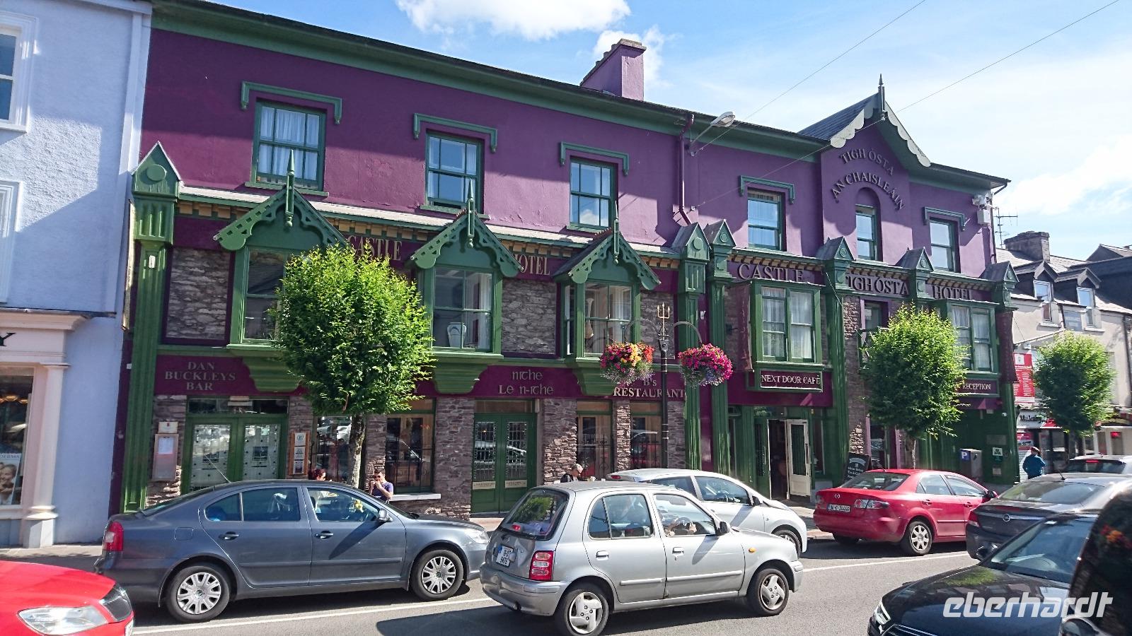 Seit Tagen übten wir für diesen einen Morgen. Stefan erklärte uns, dass Jan, unser heutiger örtlicher Führer für den Ring of Kerry, sich über ein besonders lautes und einstimmiges ‚Guten Morgen!' freut. Also riefen wir es auch in Killarney, als er gemeinsam mit seiner Frau Shirley zustieg. Schon ging es los. Jan erklärte uns vieles zu Kerry, aber auch noch einige aktuelle Dinge rund um Irland und das hiesige Schul- und Berufswesen. Nach ein paar Fotostopps auf Täler oder hinüber nach Dingle, bei denen wir immer wieder die Wandergruppe trafen, zu der Shirley dann überwechselte, erreichten wir Waterville. Hier lebten früher viele interessante Künstler und die Kinder von Charlie Chaplin besitzen hier immer noch ein Haus. Doch auch eines der Unterwasser-Überseekabel startete hier, wie uns ein Denkmal dafür bewies. Der kleine Ort am Wasser hat einen steinigen Strand, dafür jedoch herrliche Häuser, Sichten und viel Natur. Wenig später, hoch oben auf einer Klippe, machten wir Station fürs Mittagessen. Mit herrlicher Sicht aus dem Restaurant auf den Atlantik hinaus genossen wir typisch traditionelle irische Gerichte und ließen es uns richtig gut gehen. Danach waren wir etwas müde, doch es blieb nicht viel Zeit zum Ausruhen, denn wir erreichten bald Sneem, einen kleinen, gemütlichen Ort zwischen Atlantik und Halbinselinnerem. Hier probierten wir frisch gemachtes Eis, gingen einkaufen oder ließen uns von Stefan in Fragen der irischen Musik direkt im kleinen Fachgeschäft am Markt beraten. Später erreichten wir von da aus die Kissarne Sheep Farm, wo uns Jan mit Unterstützung des Schäfers zeigte und erklärte, wie die Hunde die Schafe auseinanderhalten und vor allem zusammentreiben können, wenn sie über viele Kilometer verstreut in den Bergen weiden. Danach sahen wir noch eine Schafschur auf traditionelle und dann auch auf heutige Art. Der Wollpreis ist extrem im Keller, wodurch sich eine reine Schaffarm heute kaum mehr lohnt. Doch die Schafprodukte, also Fellprodukte, Käse, Milch, waren und sind auch heute noch gefragt. Wir informierten uns ausgiebig und kauften auch das Eine oder Andere für uns oder als Mitbringsel, ehe wir weiter zum Ladies View fuhren, von dem herunter einst Queen Victoria sich die Schönheiten der Insel besah. Später fuhren wir wieder nach Killarney und brachten Jan zu seinem Auto zurück, fuhren selbst weiter nach Tralee, um hier noch eine Nacht zu verbringen und vorher das schöne Abendessen zu probieren.