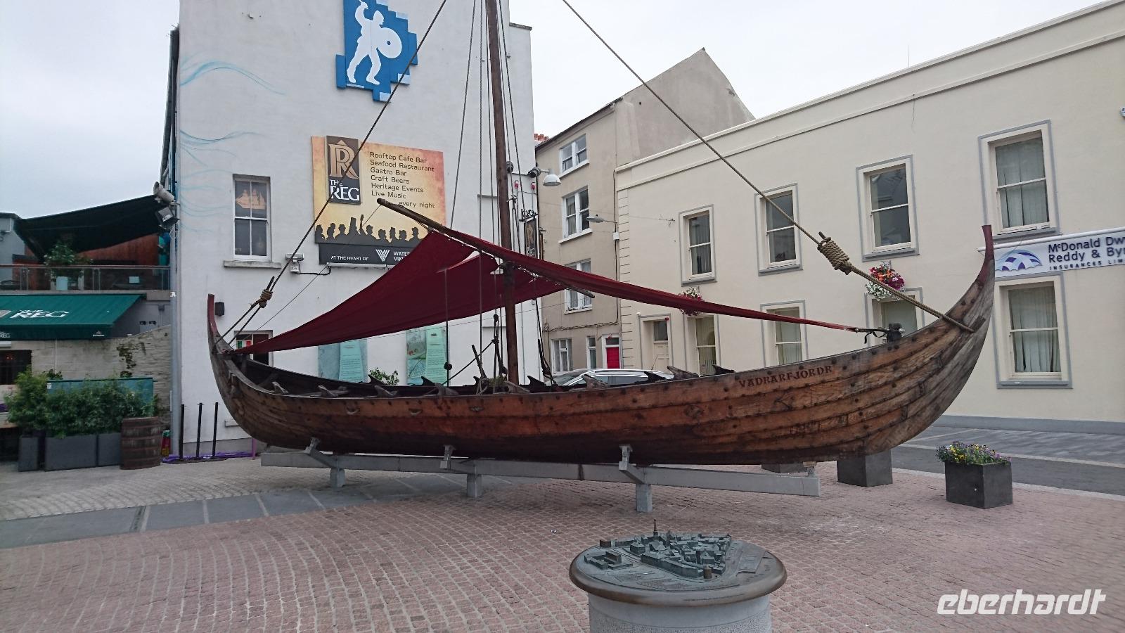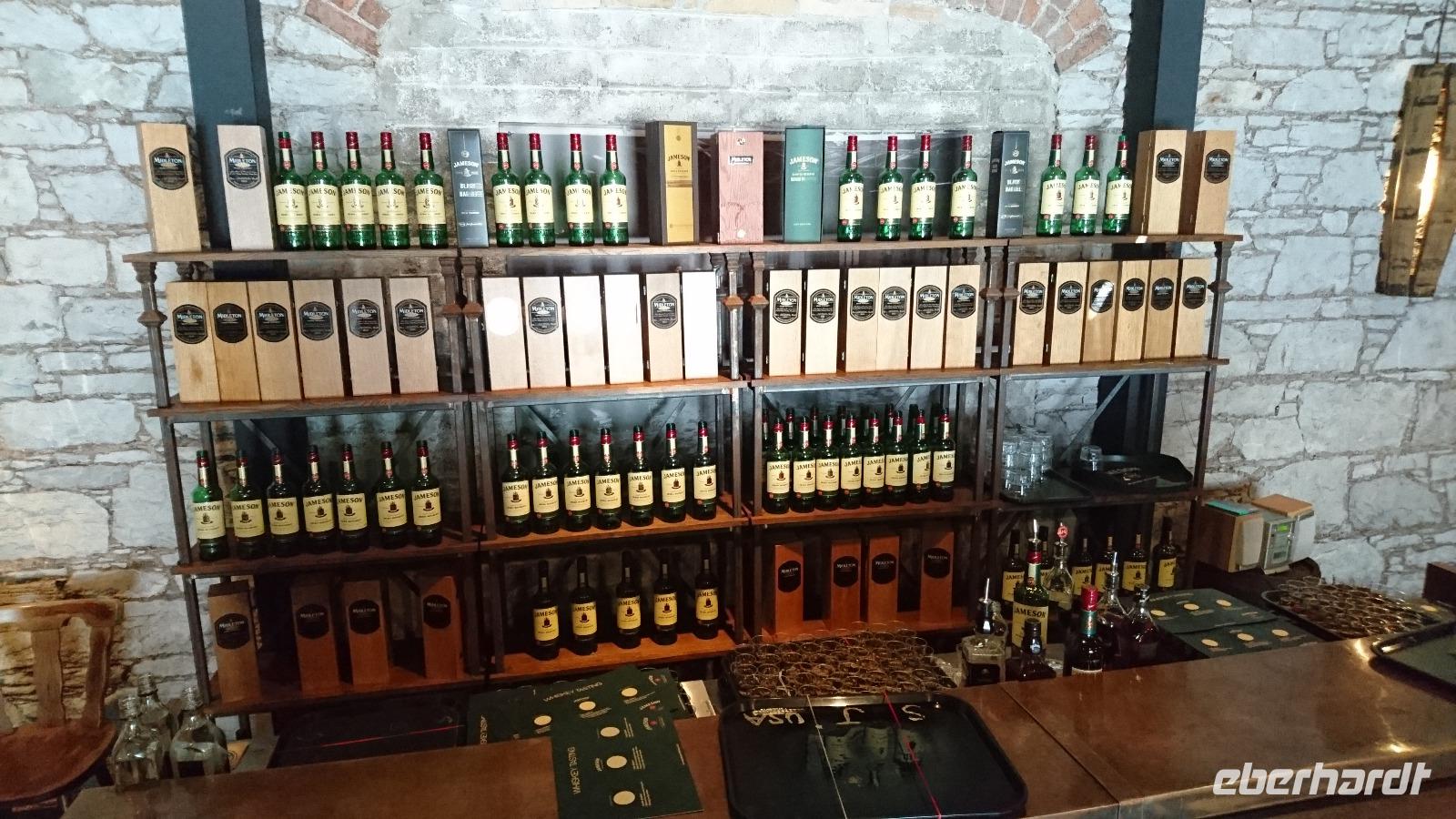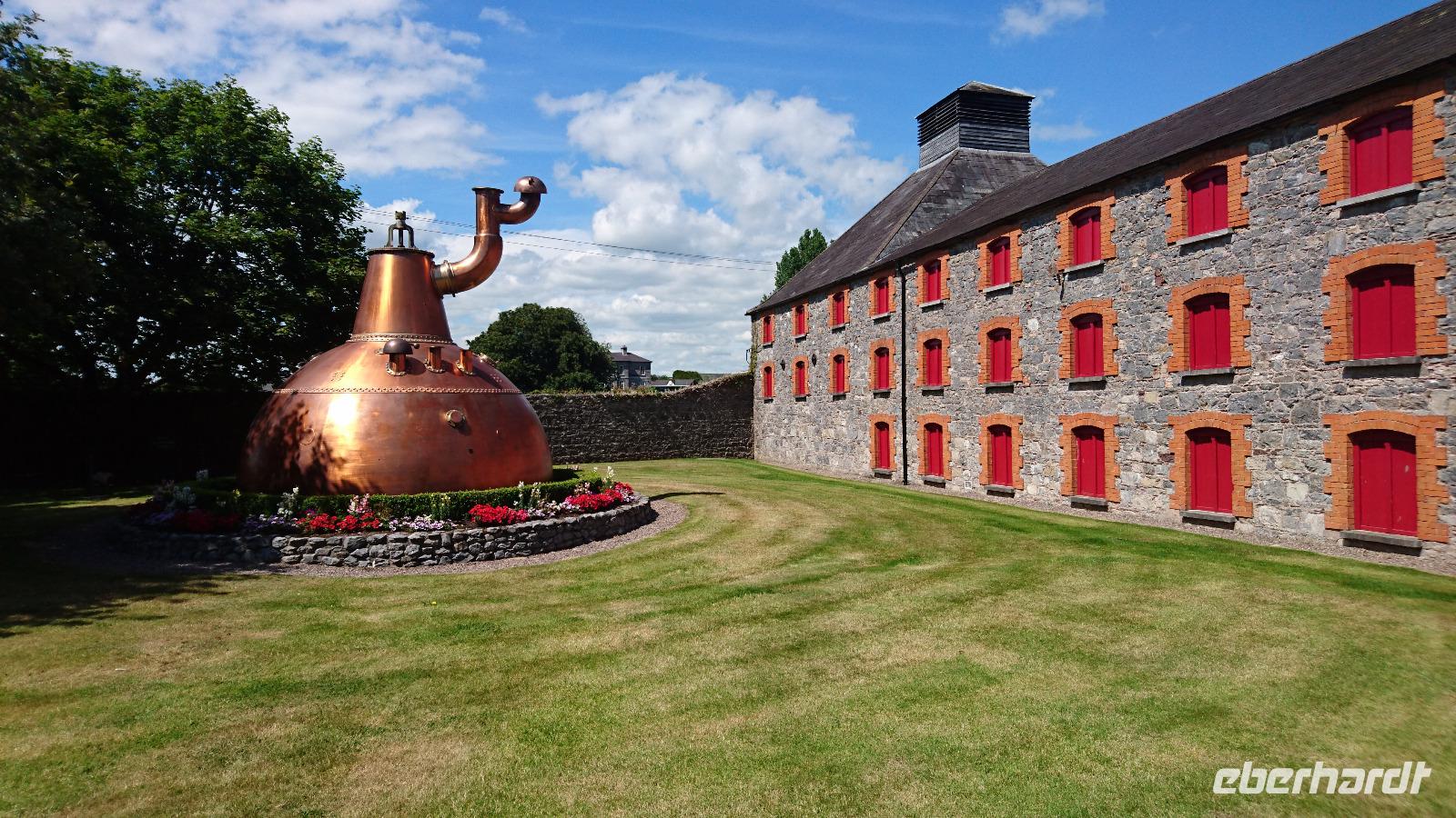 Wasser des Lebens, so nennen die Iren auf Gälisch ihren Whisky. Ob wohl der Kapitän oder der Steuermann der Titanic einst zu tief ins Glas sahen, als sie den Eisberg zu spät entdeckten und dann nach neuesten Erkenntnissen zu spät und völlig falsch reagierten, was das Schiff schließlich zum Untergang verdammte? Wir wissen es nicht mit Sicherheit, doch heute sollte sich ein klein wenig der Kreis unserer Reise schließen, denn unser erster längerer Aufenthalt nach einem Bedürfnisstopp in Mackroom war Cobh, das ehemalige Queenstown, letzter Hafen der Titanic, ehe es hinaus auf den Atlantik und zum Eisberg ging. Natürlich bewunderten wir erst einmal die alte Front des Castle in Mackroom, sahen auch zur alten Kirche, wollten aber weiter, denn einige hatten vor, die kleine Titanic Exhibition im Hafen von Cobh zu besuchen. So parkten wir dann am späten Vormittag am Heritage Center in Cobh, welches schon so eingerichtet war, wie man sich die alten Empfangshallen auf Bahnhöfen und in Häfen vorstellt. Ein paar Meter in den Ort hinein waren es nur bis zur Ausstellung und zu den vielen kleinen Geschäften und Pubs in Cobh, die wir für ein Mittagessen nutzten, um eine gute Grundlage für den kommenden Besuch zu legen. Denn dann ging es zum Whisky. Unweit von Cobh und der größeren Stadt Cork liegt Midleton und dort produziert Jameson, einst in Dublin gegründet, seit vielen Jahren seinen Whisky. Eine deutsche Führung brachte uns die Geschichte der Destillerie wie auch die Herstellung des irischen Whiskys nahe und wir durften später sogar ein paar Schlucke des edlen Getränks probieren, auch ein Souvenir im Shop der Destille e3rwerben und zufrieden in den Bus steigen. Bevor es jedoch zum heutigen Hotel ging, ließ Stefan Clive noch nach Ardmore fahren. Hier schauten wir uns den alten Friedhof mit Rundturm direkt über dem Meer an und hatten so noch einen guten Blick auf die südliche Irische See, ehe wir nach Waterford weiterfuhren und unsere Koffer ins Tower Hotel gleich gegenüber vom Wikingermuseum brachten. Ein gutes Abendessen folgte und dann waren viele von uns noch in der Stadt unterwegs, um den Hafen oder die Pubs zu erkunden.