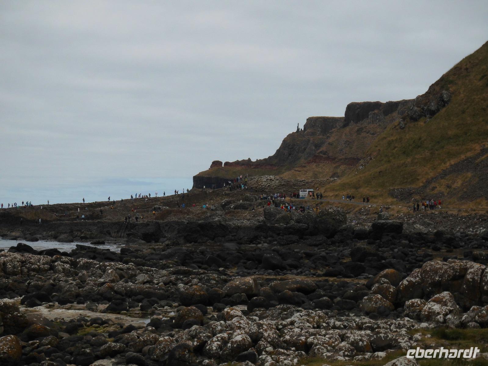 Nach einem ausgiebigen Full Irish Breakfast galt unser Interesse zunächst dem normannischen Castle in Carrickfergus. Dann fuhren wir an der landschaftlich schönen Küstenstrasse entlang und machten an Orten wie Carnlough und an Aussichtspunkten kleine Spaziergänge oder Fotostopps. Bei klarer Sicht konnten wir sogar bis Schottland schauen. Ausgiebig erkundete unsere Reisegruppe das Weltkulturerbe Giant's Causeway .Diese einmaligen Basaltformationen an der irischen Nordküste luden zum Staunen, darauf Herumklettern und natürlich zum Fotografieren ein. Am Nachmittag bekamen wir bei einem Spaziergang auf der Stadtmauer von Derry einen Eindruck von den verschiedenen Facetten dieser Stadt. Bevor wir unser heutiges Ziel, die Stadt Letterkenny erreichten,hatten wir noch die Möglichkeit zusätzlich ein Ringfort zu besuchen.