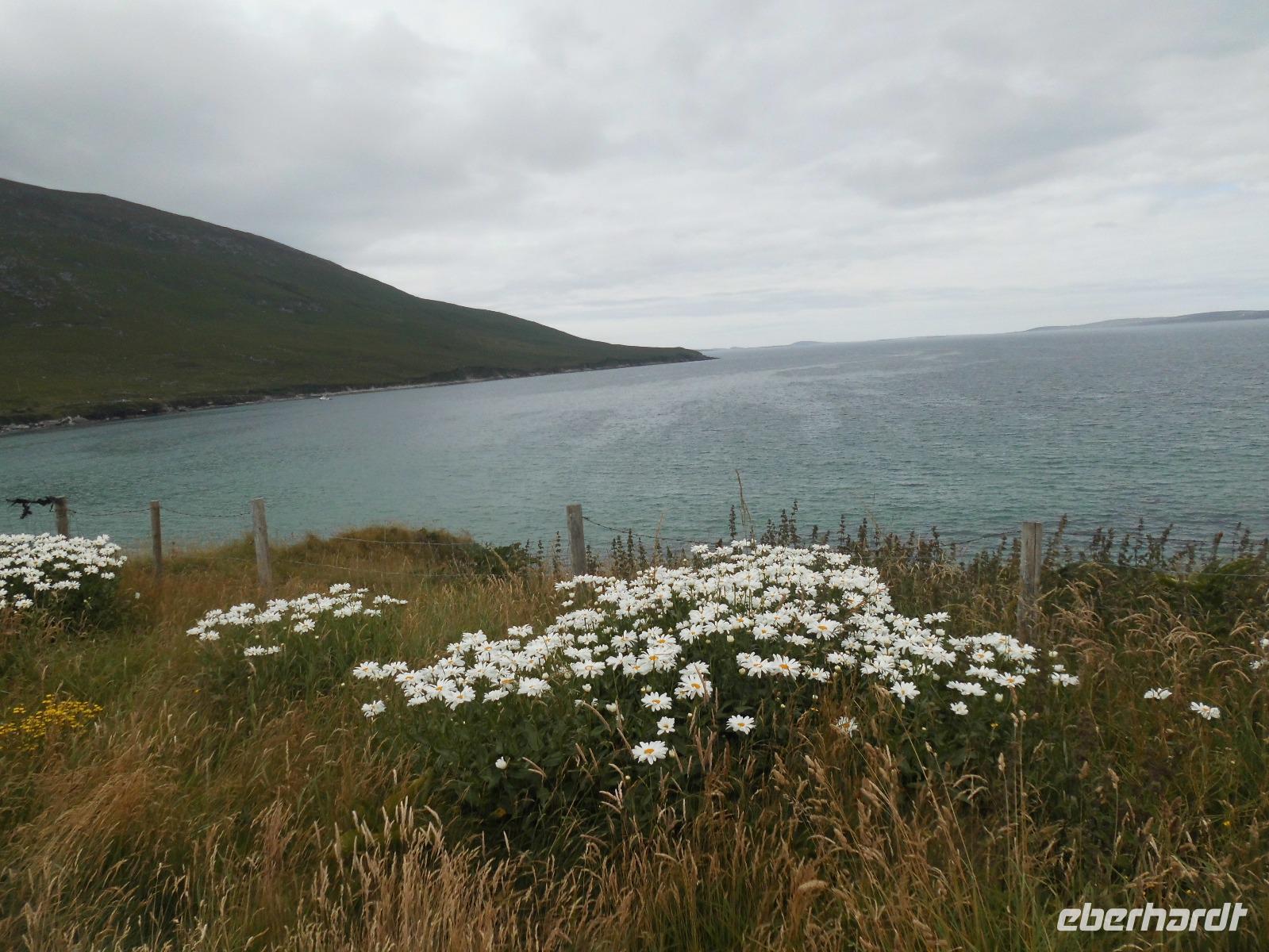 Das trockene Wetter erlaubte uns einen Spaziergang auf den dicken Moospolstern vor Downpatrick Head in einer wilden Küstenlandschaft Sehr überraschend waren für uns die so ganz ungewöhnlichen Ausgrabungen von Ceide Fields mit ihren Siedlungsspuren .Auch auf der Achill Island kamen wir der irischen Geschichte näher,indem wir ein verlassenes Dorf und auch das Heinrich -Böll- Haus entdeckten.