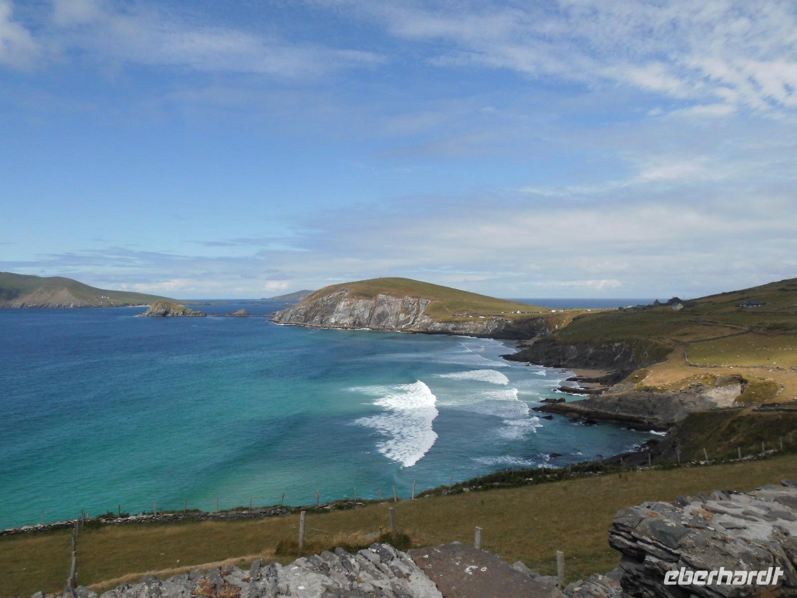 Auf der Dingle- Halbinsel entdeckten wir außer einem langen Sandstrand auch sehr zerklüftete Steilküsten an den Bergen des Heiligen Brendon. Hier gibt es auch seltsame Behausungen, die„Bienenkorbhütten", zu sehen, welche dereinst die Menschen vor dem feuchten irischen Wetter schützten .Von der Küste hatten wir auch einen Blick auf die Blasketinseln. Vom Leben der Menschen in dieser entlegenen Gegend erfuhren wir durch Musik und Tanz im irischen Siamsa Theaater.