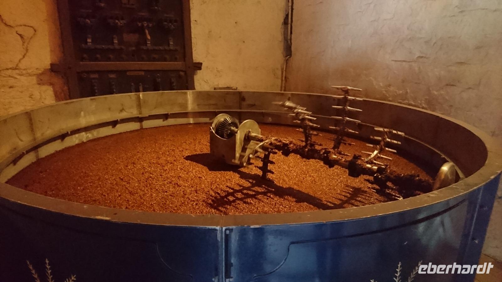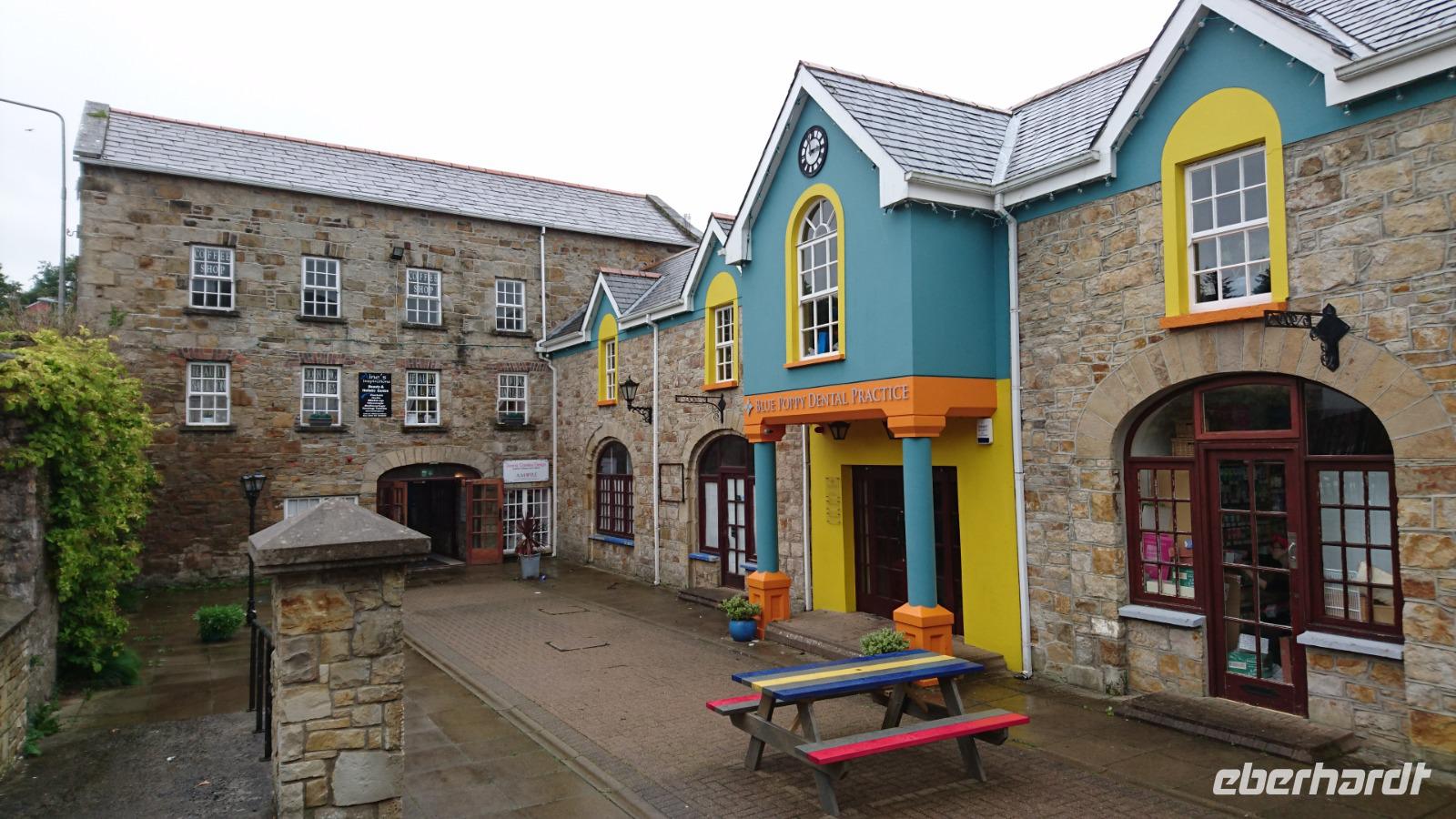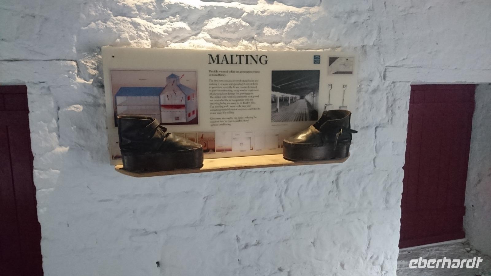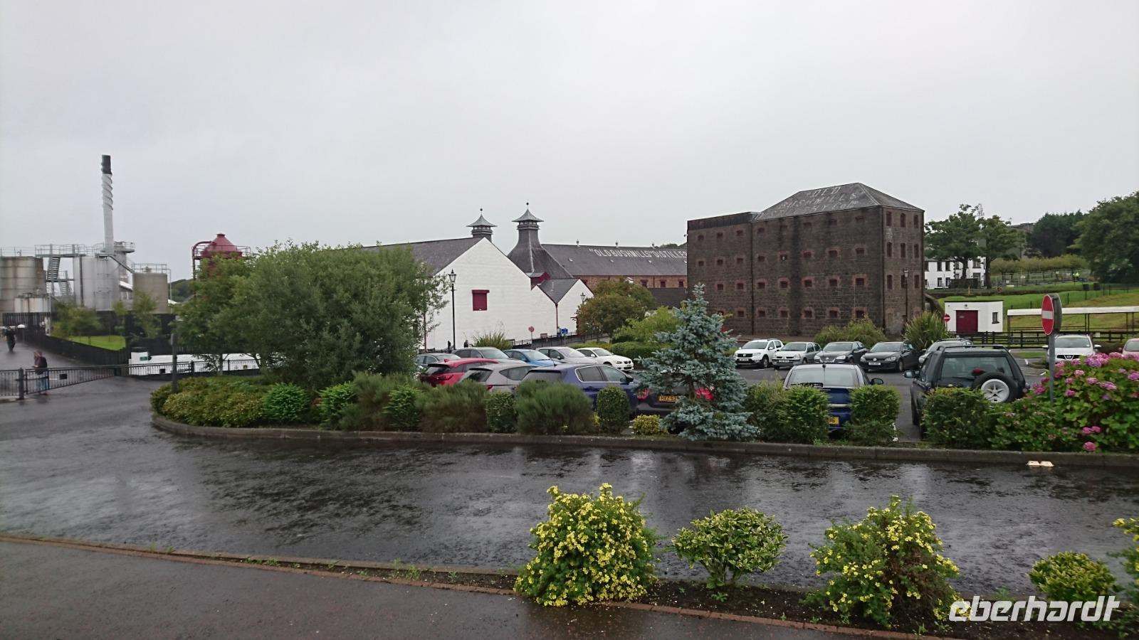 Nach Süden und nach Osten. Der größte Teil der Insel war schon umrundet. Nun kamen wir mit einem kleinen Zwischenstopp in Mackroom beim alten Castle und neben dem alten Friedhof später vor dem Mittag ins ehemalige Queenstown, dem heutigen Cobh. Hier legte einst die Titanic das letzte Mal an, ehe sie später auf See sank. Natürlich gibt es darum auch hier eine entsprechende Ausstellung, doch leider stellte man sich hier noch nicht auf die deutschen Besucher ein, sodass wir von einem Besuch Abstand nahmen. Lieber bummelten wir am Hafen entlang, sahen, wo früher und heute die großen Schiffe anlegten und gingen auch durch die Geschäfte. Dazu mussten wir etwas essen, denn wir benötigten für den nächsten Programmpunkt des Tages eine gute Grundlage. Es ging dann nach Midleton, zur Jameson Destillerie. Eine Führung in Deutsch war sehr interessant. Alle durften wir den Unterschied zwischen irischem, schottischen und US-amerikanischen Whisk(e)y herausschmecken und später in der bar noch einen Jameson auf Kosten des Hauses probieren. Manch ein kleines Mitbringsel aus dem Shop der Destillerie wanderte dann mit uns in den Bus und später nach Hause. Weiter ging es nach Ardmore, wo uns Stefan noch einen Rundturm auf einem alten Abbey-Friedhof mit herrlicher Sicht auf den darunter liegenden Sandstrand zeigte, ehe wir am Abend Waterford und unser nächstes Hotel erreichten.