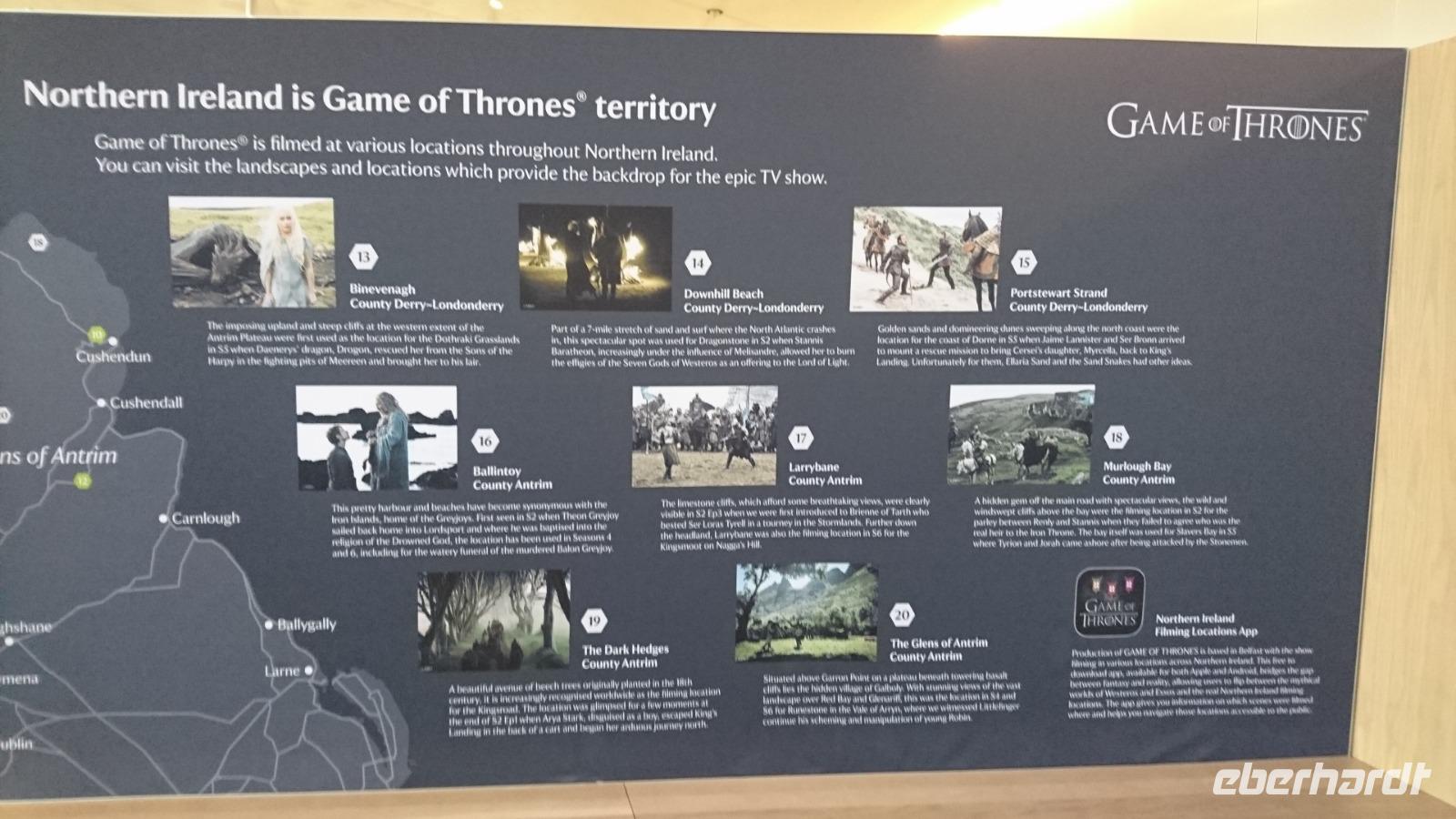 Wohl jedes Gebiet auf der Erde hat seine eigenen Geschichten, Sagen, eben Erzählungen, mögen sie nun wahr oder ersonnen sein. Da gibt es die allzu flache Bergkuppe, den tiefen Stollen, einen reißenden Fluss, den dunklen Wald und noch viele weitere Orte, die Menschen seit jeher zum Nachdenken um Sinn und Entstehung brachten. So auch in Nordirland. Heute wollten wir der Sage von Finn MacCool auf den Grund gehen, fuhren dazu aber erst einmal die Antrim Coast hinauf und trafen unter Anderem auf einen ersten Drehort der zurzeit legendären TV-Serie ‚Game of Thrones', ehe wir den Damm der Riesen, eine ehemalige Basaltverbindung zwischen Irland und Schottland, erreichten. Zwischendurch boten sich uns herrliche Blicke hinüber nach Schottland oder auch zu einer Hängebrücke zwischen einem der Küste vorgelagerten Felsen und dem Inselfestland. Nach einem kurzen Zwischenstopp an der Destillerie in Bushmills war es dann soweit. Am Damm der Riesen hatten wir für Irland gutes Wetter, denn der auch auf der grünen Insel so sehr ersehnte Regen hatte ein Herz für uns und ließ uns die Zeit am Damm trocken erleben. Ausgerüstet mit Audioguides erwanderten wir die Küste, kletterten auf den alten Dann, hatten viele tolle Einblicke in Sage und Wahrheit und saßen am Nachmittag wieder beschwingt im Bus. Weiter ging die Fahrt an der Küste entlang zum Dunluce Castle und später noch ans Mausoleum, welches ebenso in ‚Game of Thrones' eine Rolle spielte, ehe wir schließlich die Stadt mit dem Schrägstrich Derry/Londonderry erreichten. Stefan lud uns ein zu einem Spaziergang auf der vollständig erhaltenen Stadtmauer und so erfuhren wir Vieles, dabei auch fast Unglaubliches aus der Geschichte und Gegenwart der Stadt, ehe wir wieder in unseren Bus stiegen und Nordirland verließen, schließlich im Hotel in Letterkenny eincheckten und den Tag nach dem Abendessen an der Hotelbar oder in einem der umliegenden Pubs ausklingen ließen.