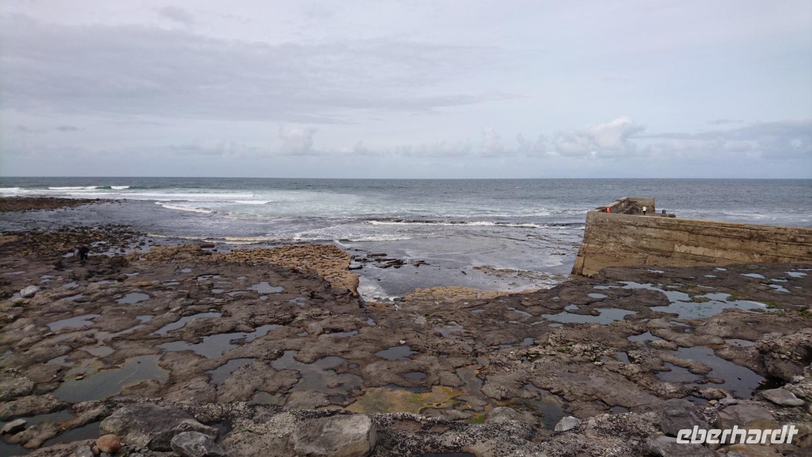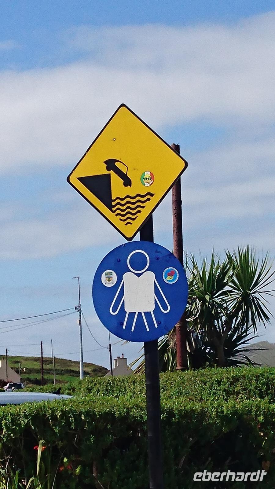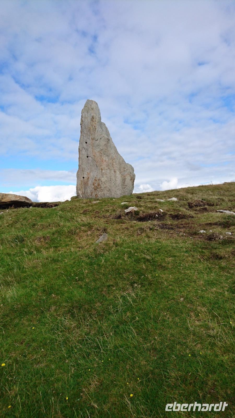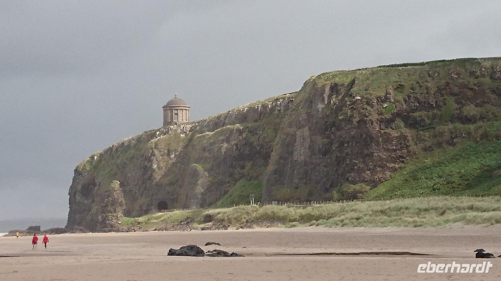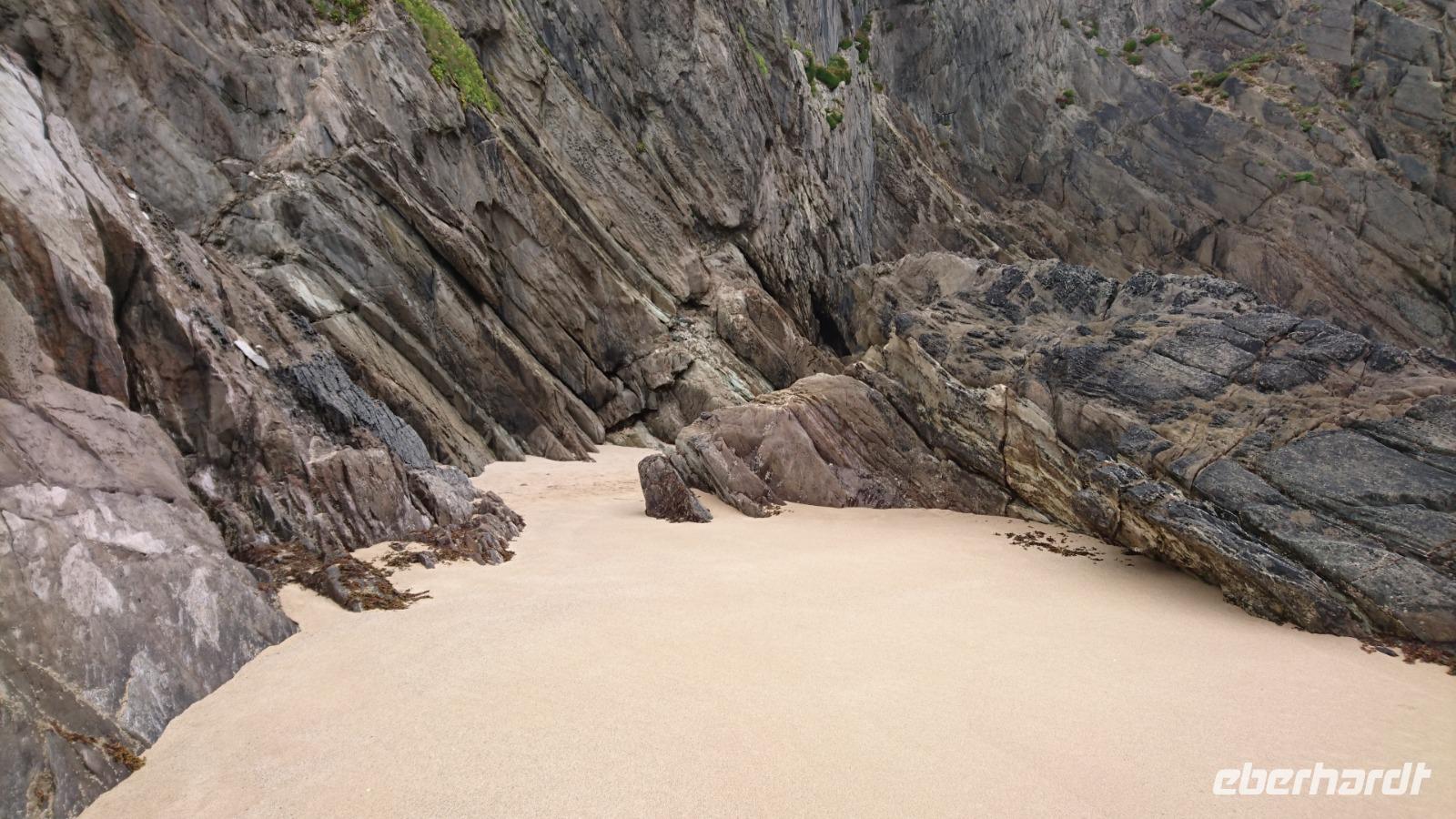 In den Süden, immer den Wild Atlantic Way entlang ging es heute. Nicht nur das alte Castle Mullagmore der Familie Montbatten war interessant auf den schroffen Felsen an der Küste zu sehen, sondern eben die Steilküste am Mullaghmore Head hatte für diverse Fotostopps wunderbare Motive für uns. Dann stauchten wir wieder in irische Geschichte ein, besuchten das Grab von W.B.Yeats, irischer Nationaldichter, in Drumcliff, versuchten dort auch gleich unser Glück mit dem noch stehenden Rundturmsegment, das endgültig zusammenfallen sollte, wenn er klügste Mensch der Welt daran vorbei ginge. Na ja, wir wollten unsere Klugheit heute nicht Jedem zeigen, sondern schauten uns einfach die alten Hochkreuze des Friedhofes an und fuhren weiter nach Sligo, der kleinen Stadt weiter südlich, wo wir unsere Mittagspause am Fluss, in den Pubs oder Einkaufszentren verbrachten, ehe wir noch einmal in der Geschichte zurück wandwerten und die alten Megalithgräber in Carrowmore besuchten. Um jedoch nach so vielen Informationen auch noch ein wenig die Seele baumeln lassen zu können, stoppten Oisin und Stefan für uns noch an zwei wunderschönen Stränden und wir bummelten über den Sand, sammelten Muscheln und genossen die Ruhe zwischen Wind, Wolken, Wasser und Sand, ehe wir schließlich nach Ballina in unser ebenso ruhig am Ortsrand gelegenes Hotel fuhren und den Tag mit Abendessen und einem kleinen Spaziergang am nahen Bach ausklingen ließen.