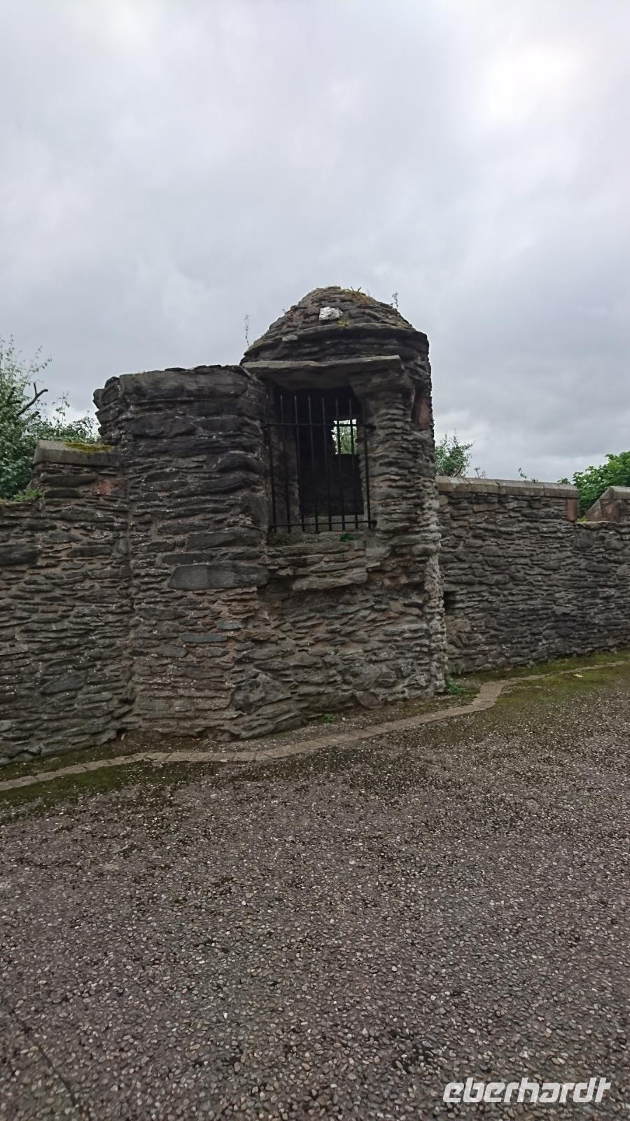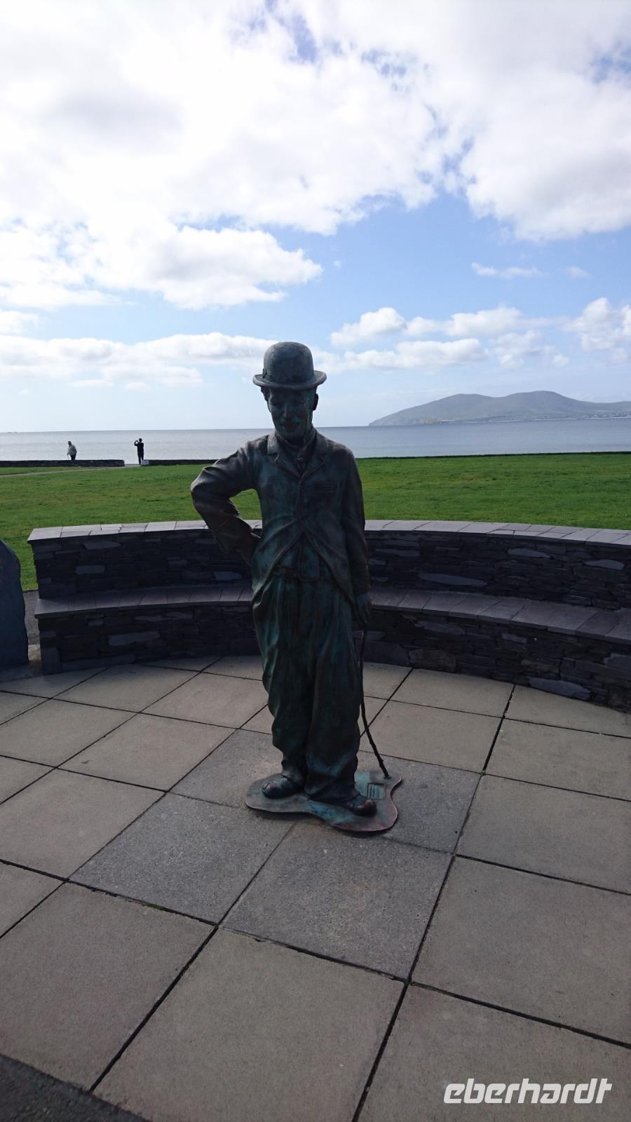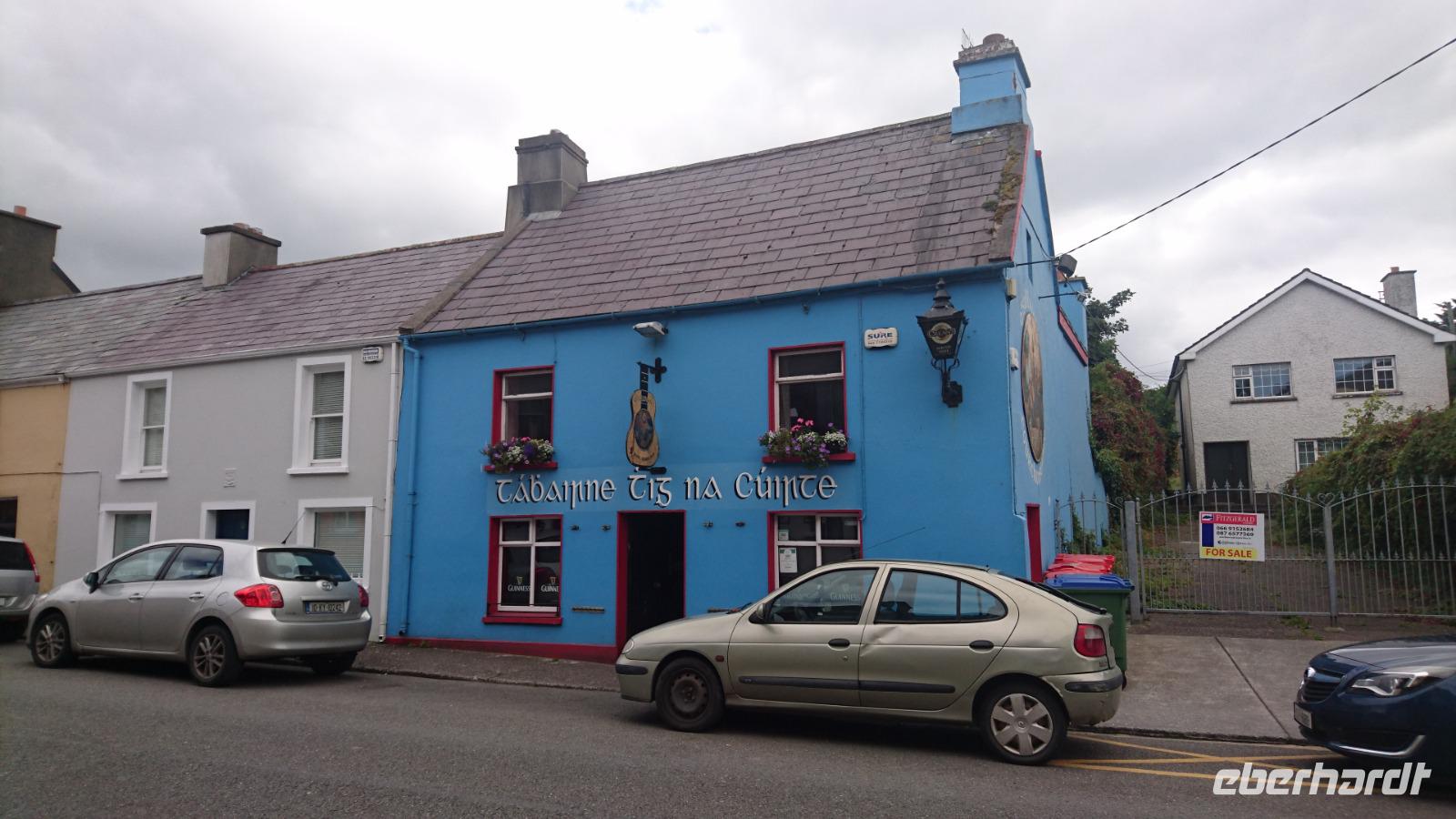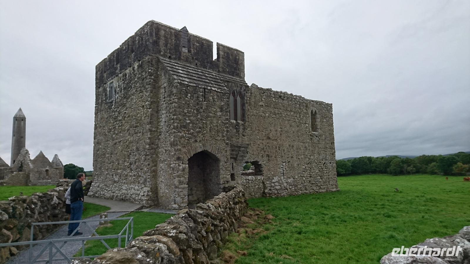 Weiter gen Süden führte uns heute unser Weg, denn unser Ziel war und blieb es ja, die Insel einmal komplett zu umrunden, ehe wir wieder nach Hause fliegen würden. So fuhren wir heute wieder durch herrliche Natur, entlang der schroffen Küste und durch herrliche Täler, wie eben auch jenem einst als fürstliches Jagdrevier hergerichteten Tal von Delphi. So gelangten wir gegen Mittag nach Cong. Dieser Ort hat eine bewegte Geschichte. Einmal gab es eints ein Castle, von dem man heute nichts mehr sieht, zum anderen stehen hier die Reste einer Abbey, die heute noch so beliebt ist, dass wir darin eben eine Hochzeit erleben durften. Dann finden sich am Ortsrand Reste eines Kanalbauversuches mit Schleusensystem, welches jedoch nie wirklich in Betrieb ging, denn das dahinein geleitete Wasser versickerte schon vor der Eröffnung im Karstgestein, wodurch man den Kanal einfach als ‚den trockenen Kanal' bezeichnet. Warum jedoch viele Menschen heute nach Cong kommen, hat einen anderen Grund: Hier drehte einst John Ford den Film ‚Der Sieger' mit Mauren O'Hara und John Wayne in den Hauptrollen. Natürlich gibt es die originalen Filmdrehorte noch, man kann ein zugehöriges Museum besuchen und ebenso eine Statue der beiden Haupthelden bewundern. Für uns ing es anschließend weiter gen Gort, doch ehe wir zum Hotel fuhren, besuchten wir noch den Coole Park der Lady Gregory, der einstigen Muse von W.B.Yeats, und den Unterschriftenbaum im ummauerten Garten und unternahmen danach noch einen Bus-Ausflug nach Kilmadough, einer alten Abtei, die lange Jahrzehnte in sich verfiel und nun wieder als Friedhof genutzt wird. Die alten Ruinen und der Rundturm, alte und neue Gräber auf der grünen Wiese, darum herum Kuh- und Schafherden, das alles gab diesem abendlichen Besuch eine besondere Note, die wir nicht missen wollten. Später fuhren wir ins altehrwürdige Hotel der Lady Gregory in Gort und ließen uns beim Abendessen und an der Bar verwöhnen, ehe wir Kraft für künftige Erlebnisse tankten und den Tag ausklingen ließen.