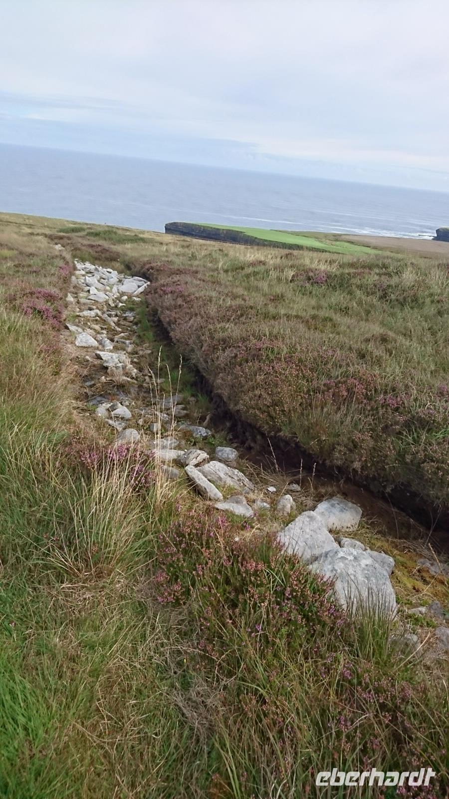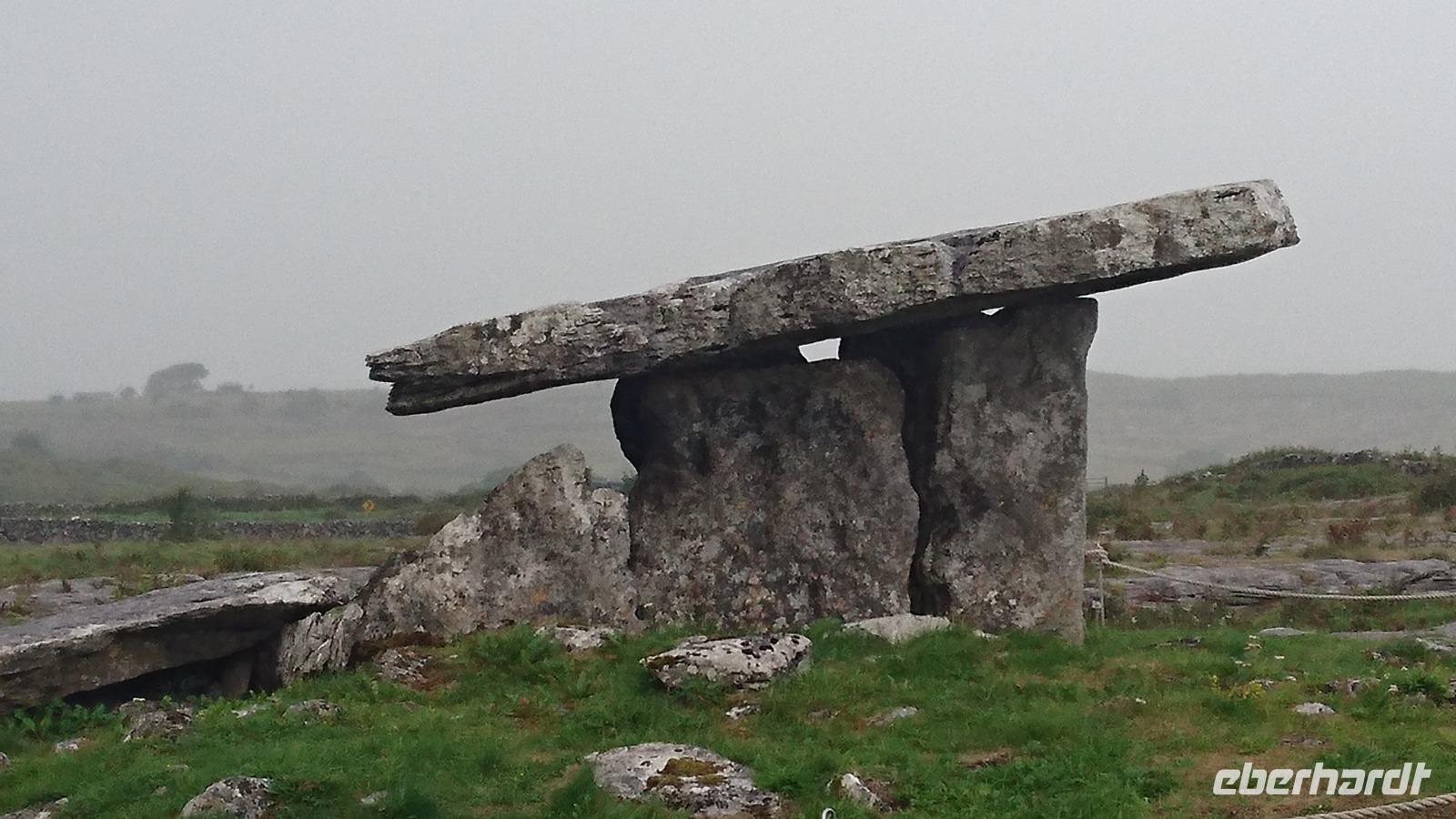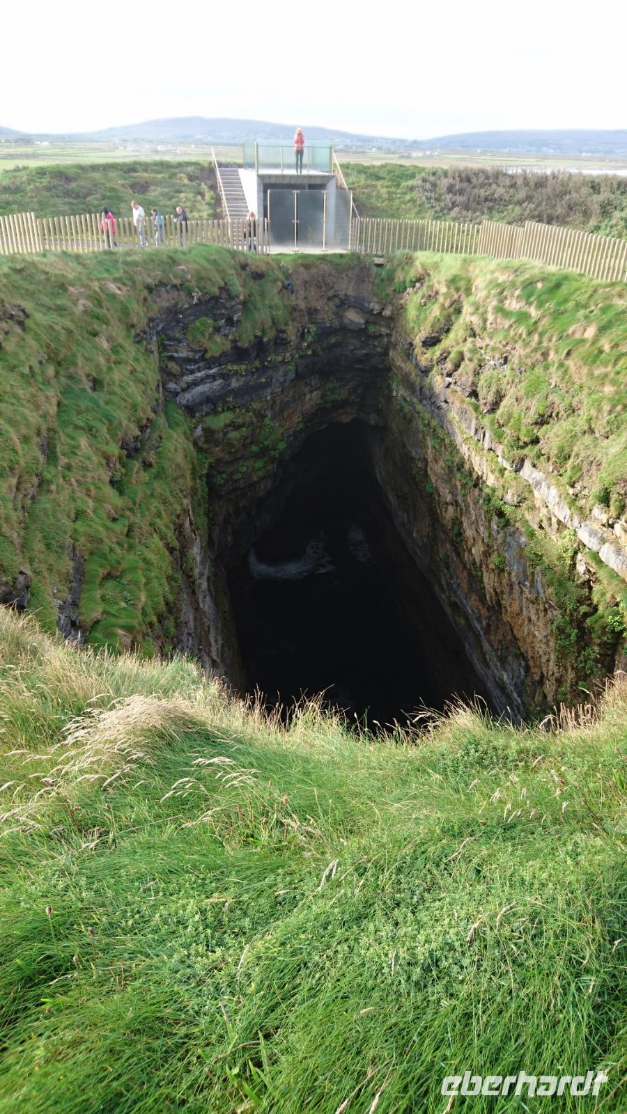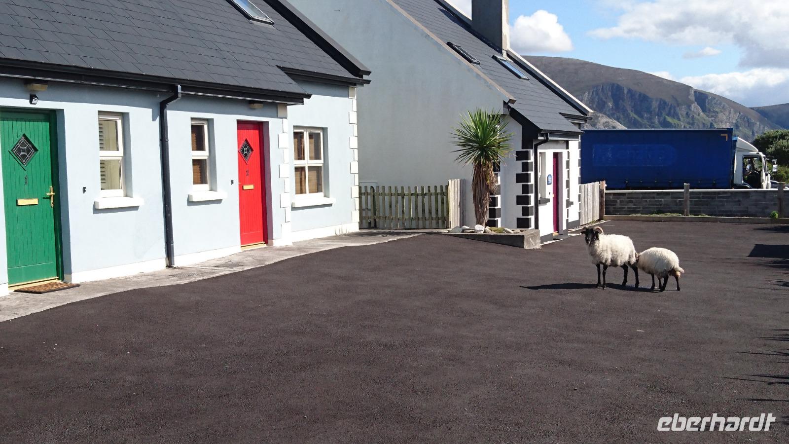 Am Morgen schon Geschichte? Ja! Wir fuhren nach Killala und konnten hier einmal einen komplett erhaltenen Rundturm sehen, hatten dabei eine wunderbare Weitsicht über das Hafenbecken des Ortes und genossen diesen gemütlichen Tagesbeginn. Dann ging es ein Stück auf die Halbinsel hinaus und wieder konnten wir nur staunen. Auf dem Downpatrick's Head entdeckten wir tiefe Felsschluchten und Höhlen, hörten die wunderliche Geschichte des Felsabbruches direkt vor der Küste und bewunderten die Gesteinsschichten an den Bruchkanten. Danach fuhren wir um die Bucht herum und kamen nach Ceide Fields, einer der genialsten Ausgrabungen Irlands und gleichzeitig ältester heute bekannter Siedlungsort hier. Gleich am Eingang des Besucherzentrums sahen wir eine tausende Jahre alte versteinerte Pinie und erlebten schließlich eine interessante Führung über das alte Torffeld, unter dessen oberer Schicht ein Pfarrer vor Jahrzehnten Strukturen entdeckte, die sein Sohn, heute anerkannter Professor für Archäologie, später mit neuen Methoden der zerstörungsfreien Suche freilegte und damit nachweisen konnte, dass es an dieser Küste einmal eine sehr alte Siedlung gab, deren Menschen und Bewohner einst nach 500 Jahren Siedlungsgeschichte scheinbar von einem Tag zum anderen die Gegend verließen. Auch wir verließen nach einem Mittagsimbiss die Gegend, fuhren weiter nach Süden und erreichten die Insel Achill, deren Küsten ebenso legendär sind wie einer ihrer prominentesten ehemaligen Bewohner, Heinrich Böll. Neben den Stränden warfen wir auch einen Blick auf sein Cottage und fuhren später über schmale, gewundene Straßen mitten durch das ursprünglich erhaltene Irland zurück zu unserem Hotel in Ballina, wo uns wieder ein gutes Abendessen und viel Ruhe erwarteten.