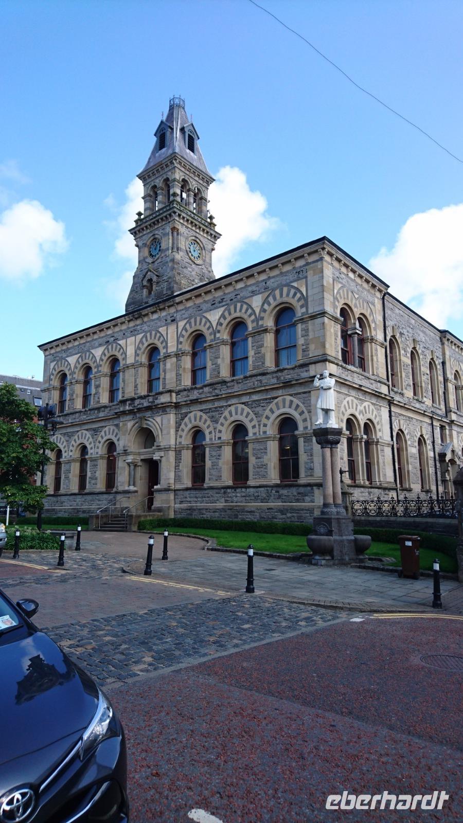 Lang anhaltende Hitze hielt Europa in ihrem Bann, manch einer stöhnte, andere freuten sich ob der Temperaturen. Die Natur jedoch benötigte Regen und hoffte auf eine Abkühlung, denn trotz Sommer begannen schon viele Bäume ihr Laub abzuwerfen und die Winzer riefen viel eher als sonst zur Lese der Beeren auf. Wir sammelten uns in der Hoffnung auf kühlere Temperaturen an verschiedenen Flughäfen in Deutschland, flogen dann direkt oder via Frankfurt nach Dublin und trafen uns hier zum ersten Mal gemeinsam als kleine Reisegruppe. Stefan hielt gleich nach Gepäck und unserem Busfahrer Ausschau und bald saßen wir in unserem kleinen, jedoch bequemen Bus, hörten typisch irische Musik und fuhren trotz Papstbesuch am gleichen Tag in Irland ohne größere Probleme aus Dublin hinaus und gen Norden. Unterwegs stoppten wir an einem alten Friedhof in Monasterboice, schauten uns zum ersten Mal einen alten keltischen Rundturm und sehr gut erhaltene Hochkreuze an, ehe wir schließlich die Republik Irland verließen und nach Nordirland, dort bald nach Belfast kamen. An der City Hall trafen wir auf Willi, unseren Stadtführer für diesen Nachmittag, und schauten uns erst City Hall, Titanic Denkmal und Innenstadt zu Fuß, später noch Parlamentsgebäude, Titanic Viertel und die Friedensmauern per Bus an, ehe wir die nordirische Hauptstadt verließen und noch ein Stück gen Norden, zu unserem Hotel in Carrickfergus fuhren, wo wir nach einem baldigen Abendessen Ruhe nach dem langen Anreisetag fanden und uns auf den nächsten Tag freuten.