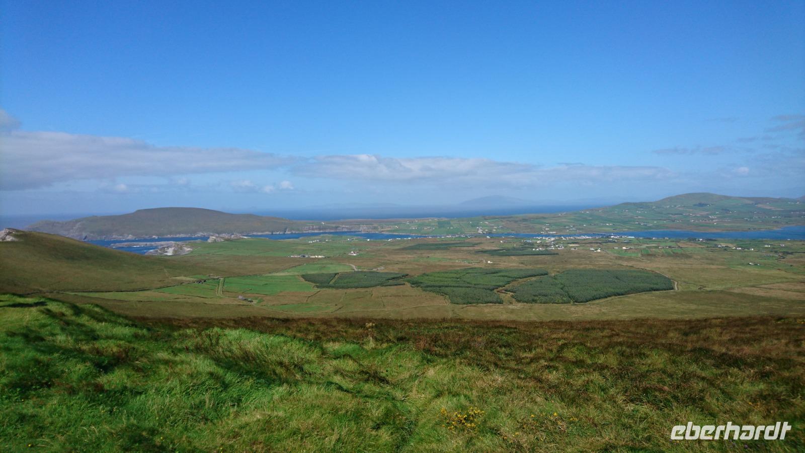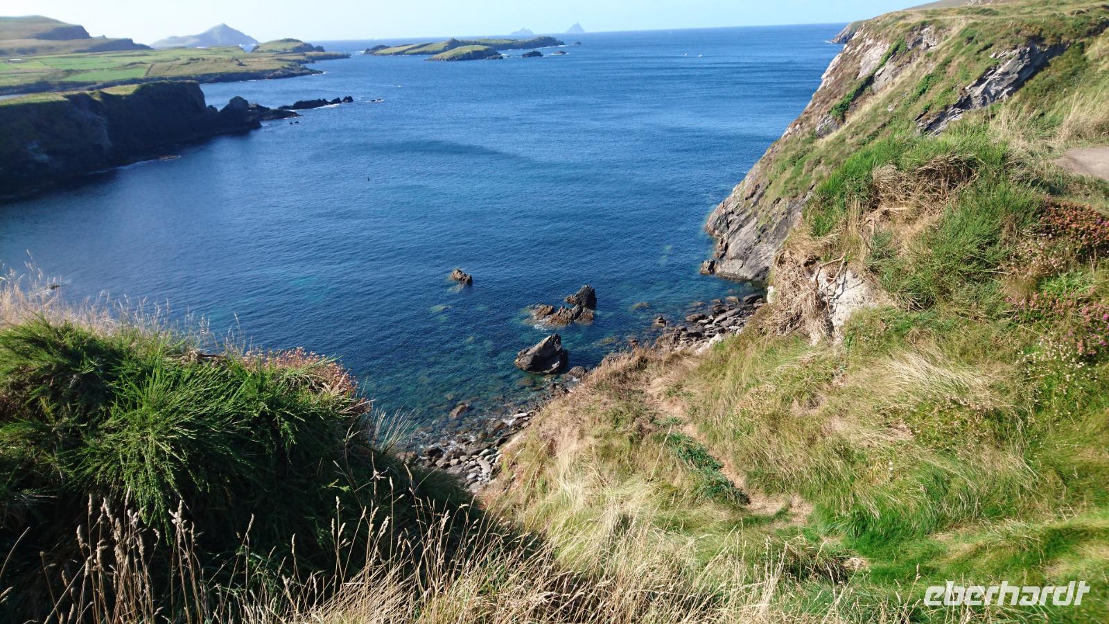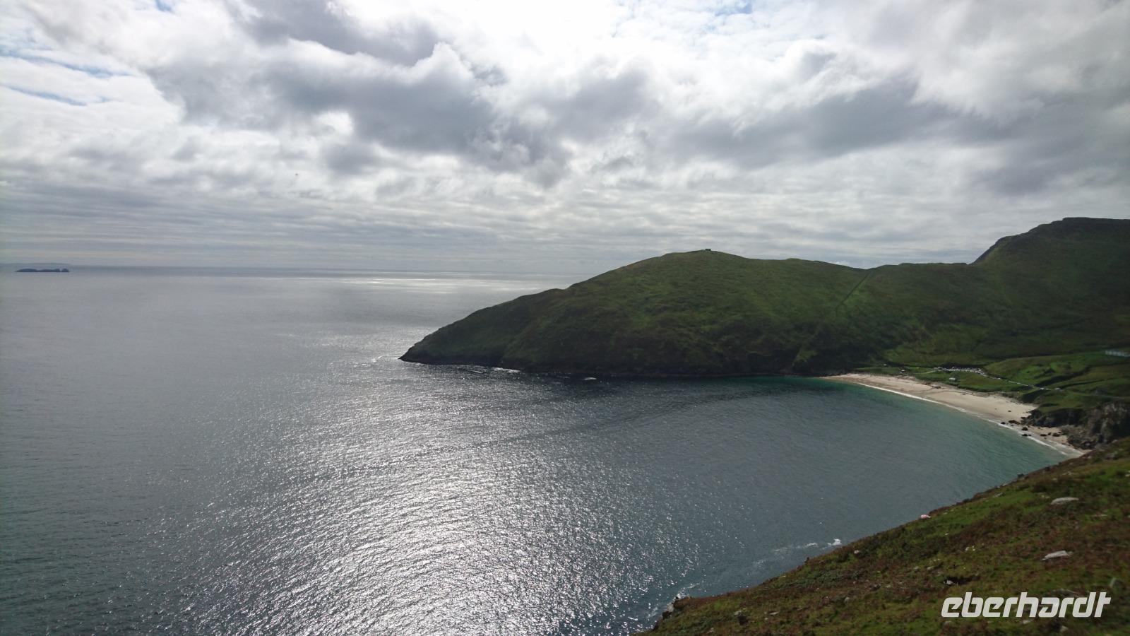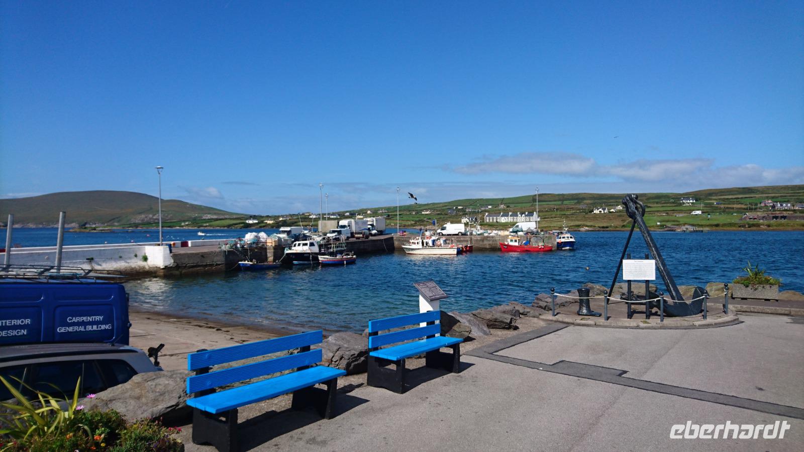 Halbinseln gibt es an der irischen Küste jede Menge. Kaum zwei sind so bekannt, wie eben jene, auf der wir am Vortag den Ring of Kerry fuhren, und jene, die wir heute besuchen wollten. Dingle. Nach dem Frühstück ging es los und schon bald erblickten wir die Berge der Halbinsel, fuhren über schmale Straßen, sahen Dingle Town, zu dem wir am Nachmittag noch einmal zurückkehren würden, erreichten dann den westlichsten Punkt der Halbinsel und dort einen wunderbaren Strand, ehe es auf der anderen Seite der Halbinsel weiter und in sehr futuristisch-historisches gebiet ging. Hier erreichten wir einen Drehort der aktuellen Star-Wars-Filme, aber auch der Filme um „Ryans Daughter" und andere, sahen jedoch wenig später und nach tollen Landschaftseindrücken ebenso die älteste noch vollständig erhaltene christliche Kirche Irlands, deren Bauform so geschickt gewählt wurde, dass sie Wind und Wetter strotzen konnte. Danach ging es zurück nach Dingle Town und wir suchten uns ein Mittagsplätzchen, bummelten durch den Ort oder fuhren mit einem der Boote hinaus, um den Delphin Fungie und seine Freunde zu sehen. Am Nachmittag machten wir noch Station am längsten Sandstrand Irlands, bei Inch, genossen noch einmal die Ruhe des Wassers und des Sandes und erlebten später einen herrlichen Überblick über die heute befahrene Halbinsel von der Höhe bei Scottia's Glenn, ehe es wieder zurück zum Hotel in Tralee ging, wo wir den Abend gemütlich ausklingen lassen wollten.