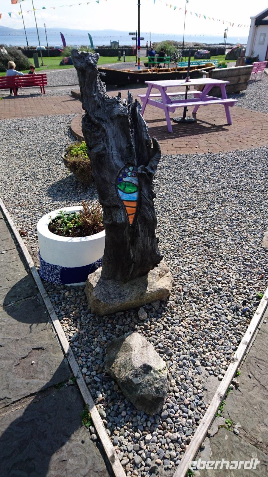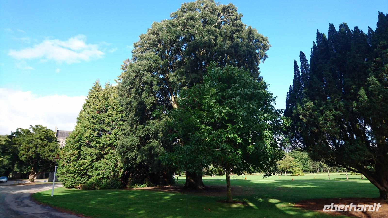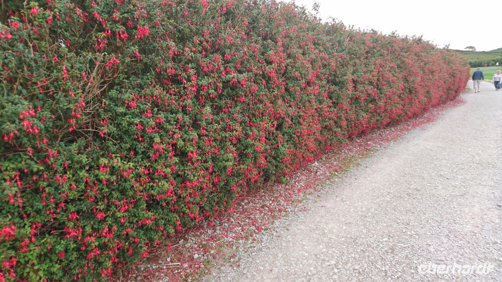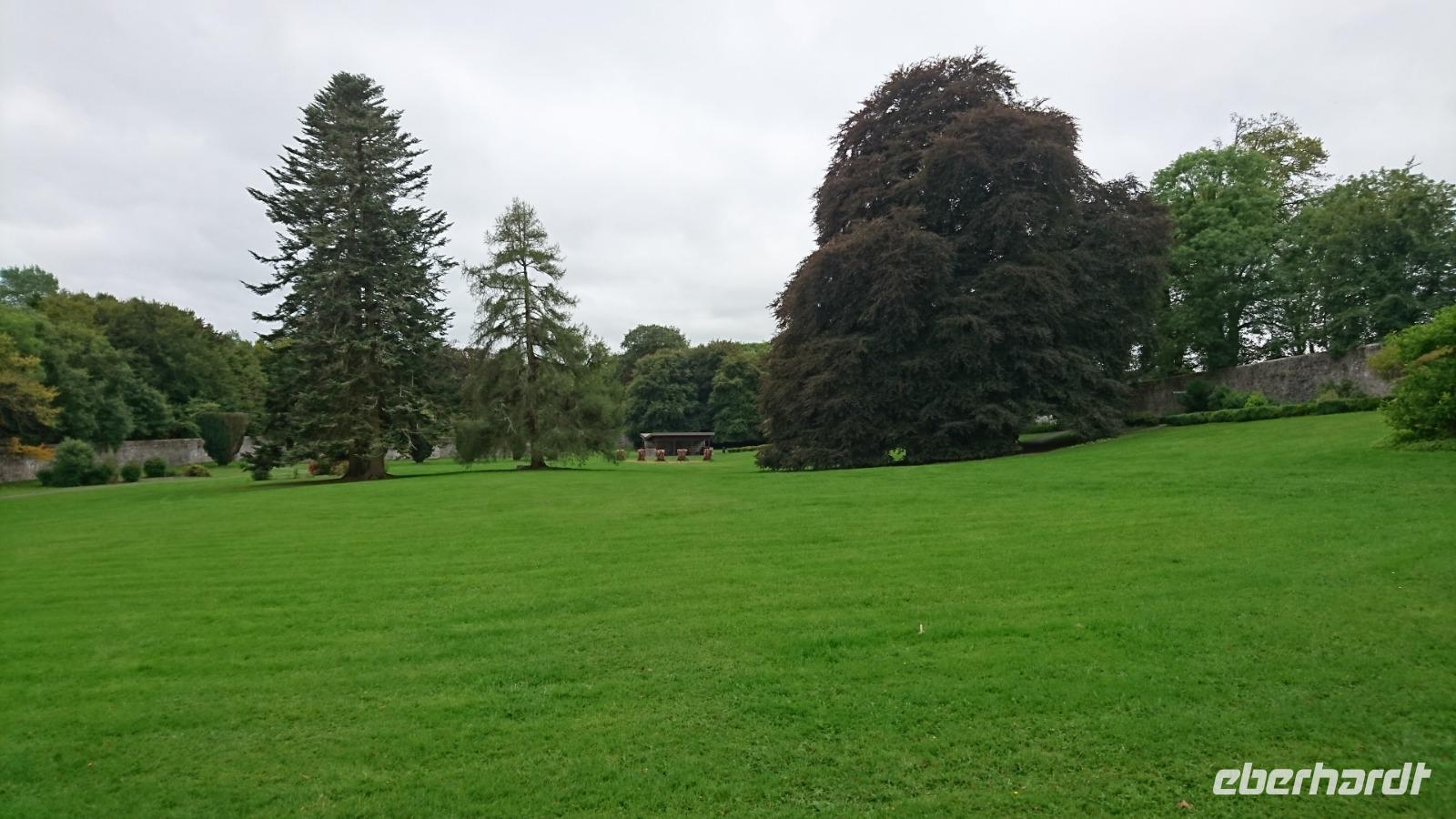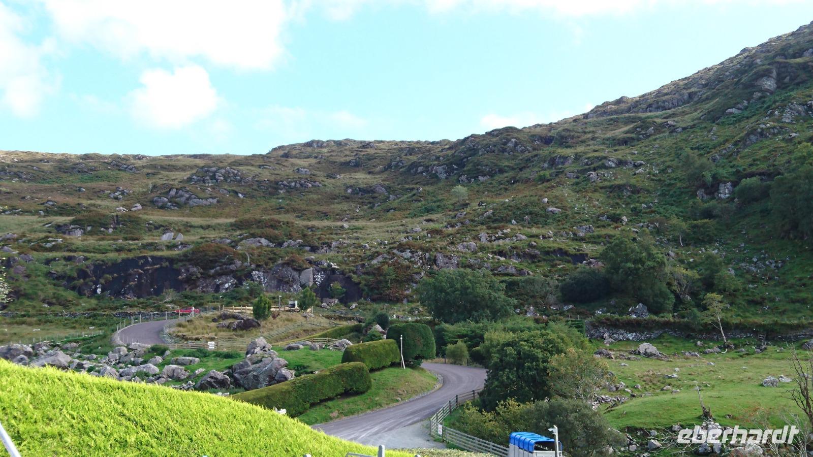 Eigentlich war es unser Ruhetag, eigentlich hatten wir heute die Wahl, auf eigene Faust oder geführt von Stefan die Umgebung zu erkunden. Alle entschieden wir uns jedoch für den angebotenen Ausflug in den Glenveagh Nationalpark und bereuten es nicht. Schon die Fahrt dorthin war ein Erlebnis, denn urplötzlich, nach den Erfahrungen der letzten tage zwischen Dublin und Letterkenny, änderte sich die Umgebung. Karge Wiese, eine Torflandschaft auf Felsen, wenige Büsche und dazwischen ein paar Seen umgaben uns auf der schmalen Straße zum Nationalpark. Wir konnten uns kaum vorstellen, dass wir bald an einem Kleinod der Garten- und Parkgestaltung ankommen sollten, doch es war wirklich so. Nach einem einführenden Film im Nationalparkzentrum fuhren wir mit einem Shuttlebus zum Castle von Glenveagh, worin uns Stefan dann einiges über die Entstehung und auch die derzeitige Einrichtung berichtete. Später erkundeten wir den ummauerten Garten und den wunderbar angelegten und gepflegten Park auf eigene Faust. Damit aber nicht genug. Nach dem Mittag fuhren wir mit unserem Bus und sicher chauffiert von Oisin, unserem Fahrer, zum Mt. Errigal und weiter zum Atlantikstrand von Narin. Am Nachmittag hatten wir genügend Zeit, um der Stadt Donegal einen Besuch abzustatten und den Stadtkern, das Castle oder auch die Pubs des Ortes zu erkunden, ehe es zurück nach Letterkenny, ins Hotel und zum Abendessen ging.
