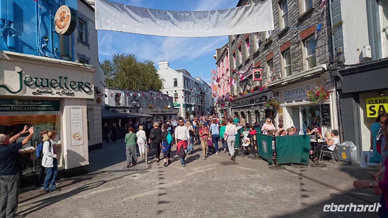 Connemara, eine der Halbinseln an der irischen Westküste, ist durch seine weiten Ebenen, die aufstrebenden Berge, Steine, Bäche, kleine Ortschaften und viele schöne Sichten bekannt. Unser Weg über die Insel führte uns heute nach Kylemore Abbey, ein Gebäude und ein großes Anwesen, welches einmal privat errichtet wurde, jedoch durch eine tragisch durch Krankheit gezeichnete Liebe nie wirklich Heimat des einstigen Erbauers wurde, dann durch verschiedene Besitzerhände ging, bis die Schwestern von Kylemore alles erwarben und dem Ort ihren eigenen Gedanken, jedoch auch der Region viel Gutes eingaben. Wir besuchten das alte Herrenhaus, Kapelle, Mausoleum, den ummauerten Garten und den Park, nutzen auch das Besucherzentrum fürs Mittagessen und etwas Souvenirshopping, ehe es quer über die Halbinsel zum größten und wichtigsten Ort der Region, nach Galway ging, wo wir den gesamten Nachmittag verbrachten, erst von Stefan durch die Stadt geführt und eingewiesen wurden, uns dann gern an der Straßenmusik und den kleinen Geschäften, dem guten Wetter und dem Treiben der Stadt erfreuten, ehe wir später wieder zurück nach Gort zu unserem Hotel fuhren.