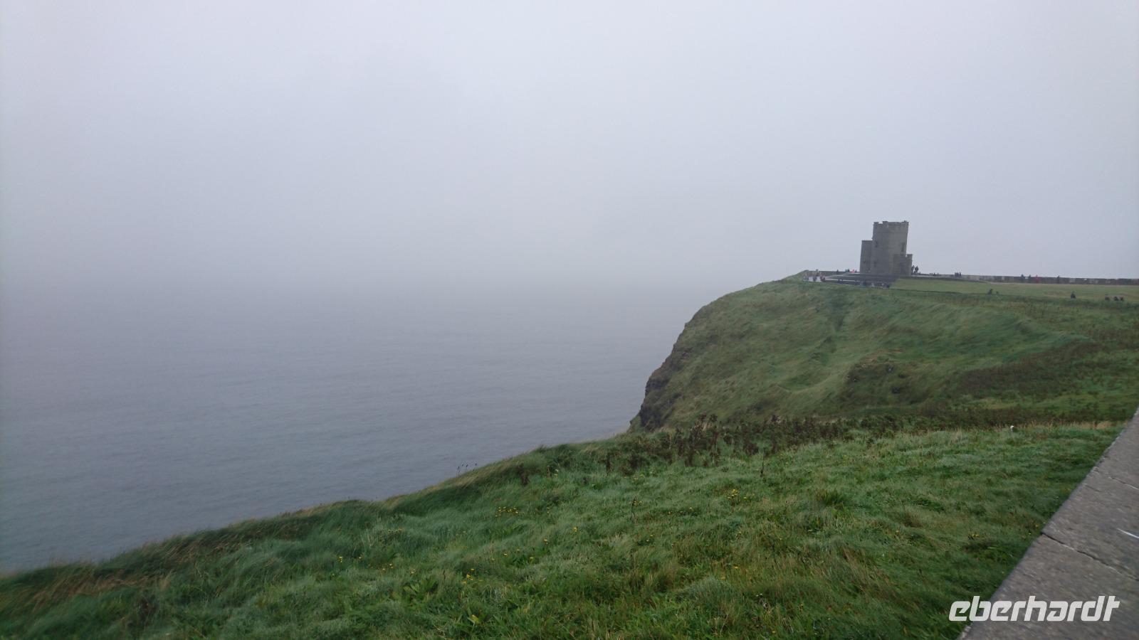 5. Tag, Donnerstag, 30.08.2018, 295 km Rundturm in Killala, Felsformationen am Downpatrick, alte Wohnsiedlung in Ceide Fields und Besuch auf Achill Island