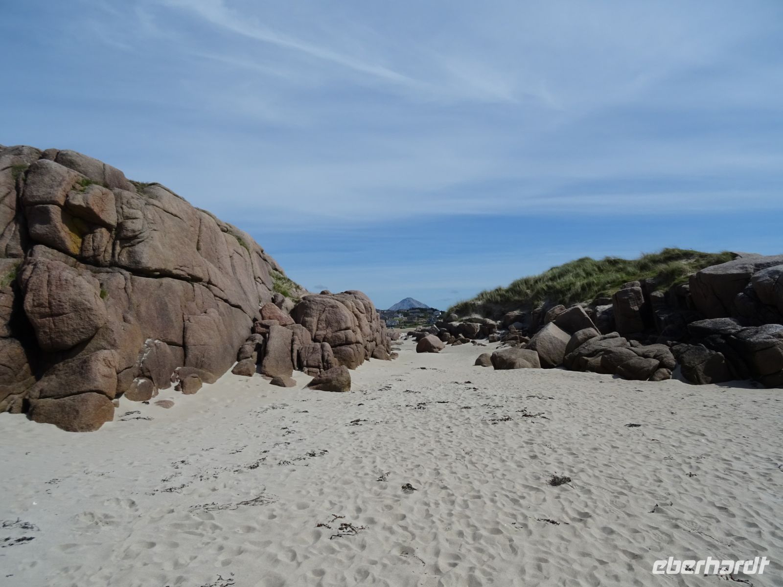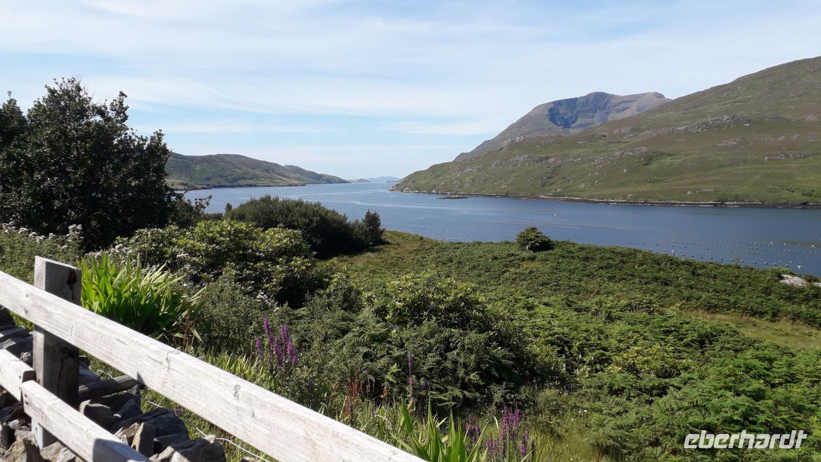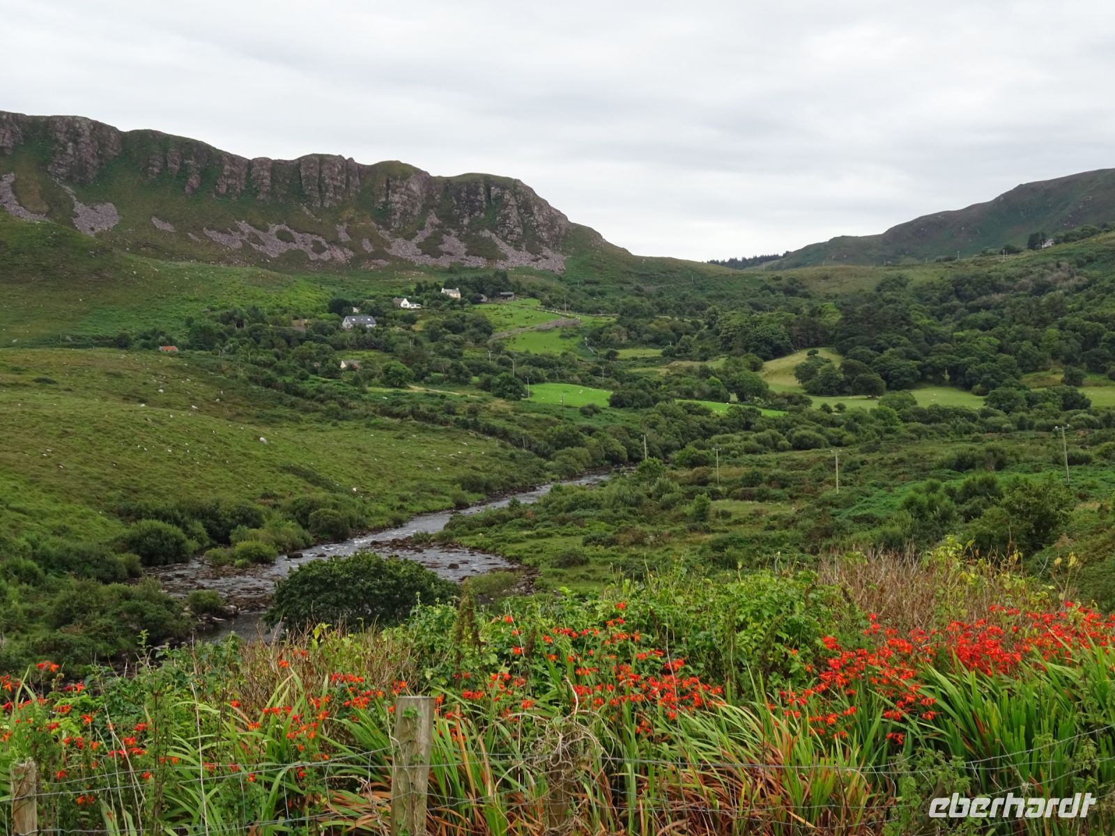 Der heutige Tag war ganz der Natur gewidmet.Der Vormittag gehörte dem Gleanveagh - Nationalpark.Nach einer kurzen filmischen Einführung in die Geschichte dieses Gartentraums inmitten einer überaus kargen Landschaft lustwandelteten wir in den verschiedenen Gärten und ließen den Genuß bei Tee, Kaffee und Kuchen oder Scones ausklingen. Eine Rundfahrt durch die Landschaft des Donigal ließ uns am Nachmittag sehr unterschiedliche Landschaften erleben und den Mount Errigal sehen. Am Bunbeg-Beach luden malerische kleine Buchten zum Baden ein ,denn das Wasser des Atlantik war warm und die Außentemperatur völlig "unirisch". Nach dieser Abkühlung hatte unsere Busfahrerin Heike einen wärmenden Trunk fürs Innere bereit.Weiter fuhren wir zum großen Teil auf dem Wild-Atlantic -Way, dessen faszinierende Küstenlandschaft uns mehrmals halten ließ, um die atemberaubenden Anblicke im Foto festzuhalten.