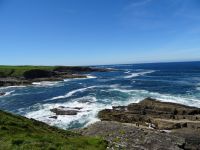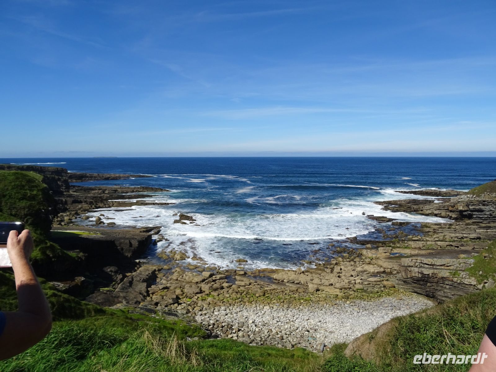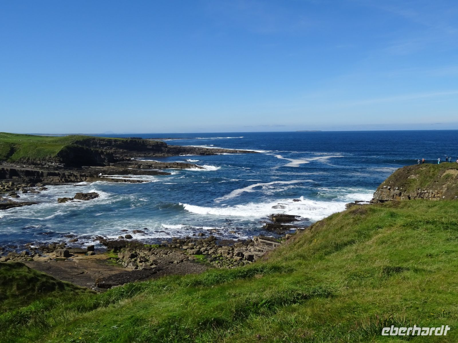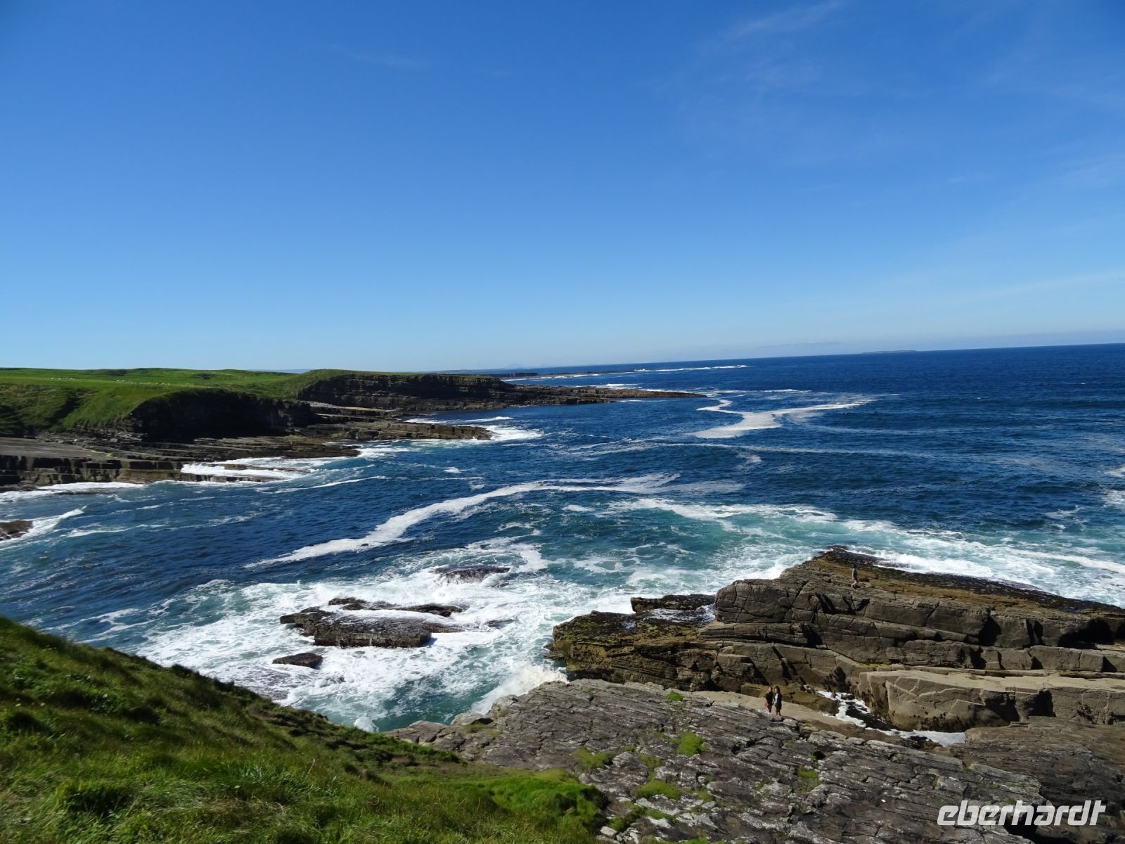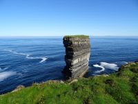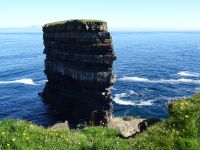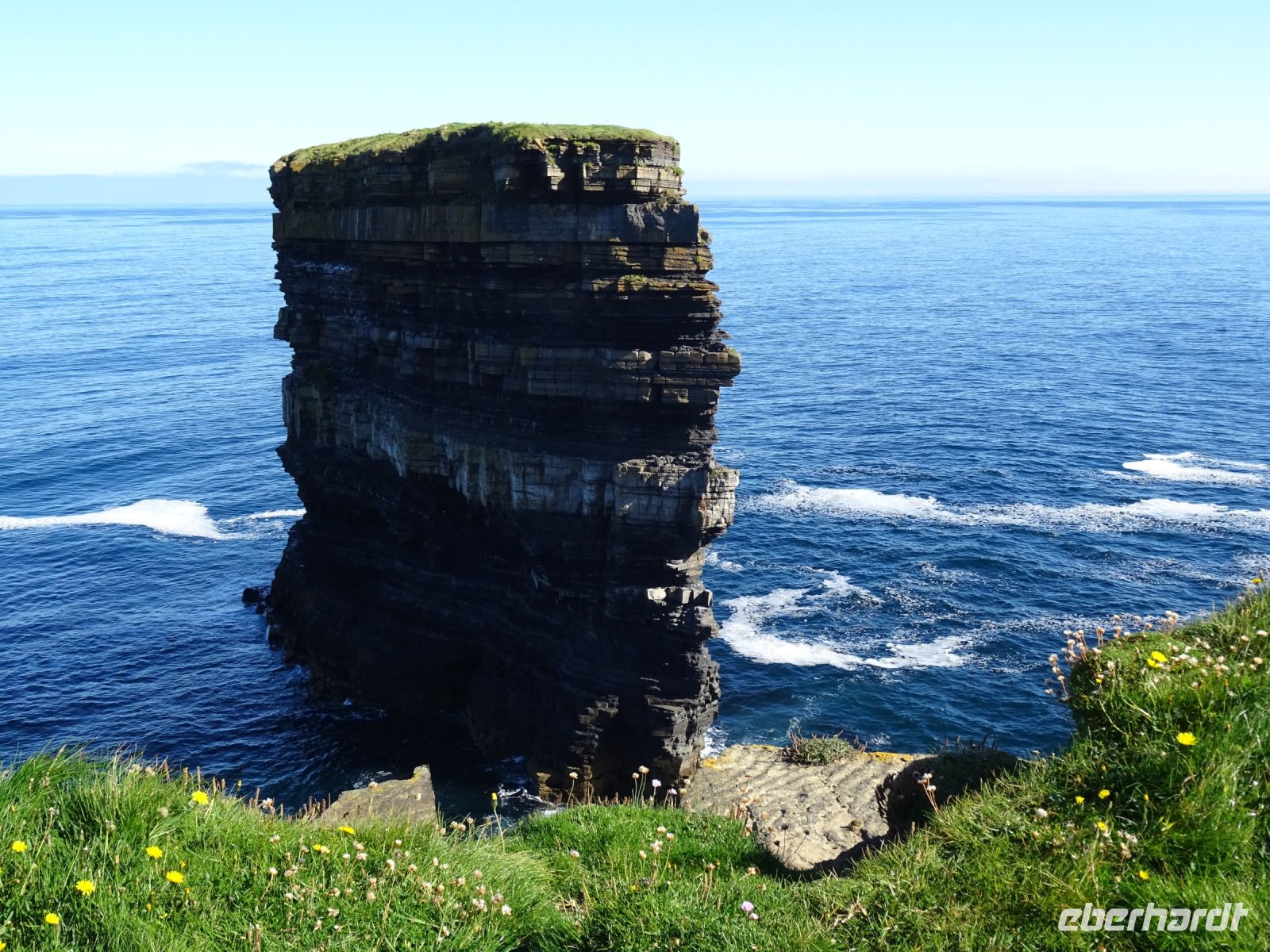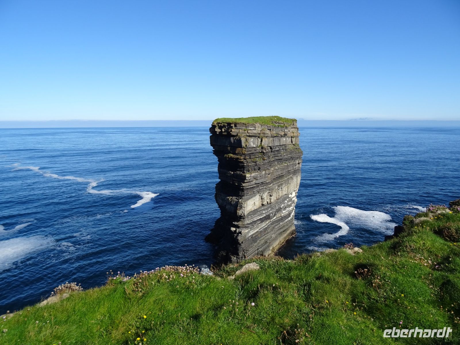 Heute überrascht uns doch tatsächlich einmal echt irischer Nebel! In Killala hat sich dieser aber schon wieder aufgelöst, so daß sich ein Fotostopp am Rundturm lohnt.Bei diesem Traumwetter gönnen wir uns einen Zwischenstopp an der wilden Atlantikküste bei Downpatrick-Head.