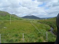 Ganz nah an einem abgespaltenen Küstenfels können wir auch die unglaubliche Dichte des dicken Moospolsters unter unseren Füßen spüren.Auf den Feldern von Ceide erfahren wir dann, was Archäologen darunter entdeckt haben .Auf unser Mittags- Picknick in der freien Natur verzichten wir heute und wählen einen Imbiß im Restaurant des Museums. Entlang der malerischen Küste führt uns der Weg zur größten Insel Irlands: Achill Island.Hier weilte Heinrich Böll mehrmals und schrieb über seine Eindrücke und Erlebnisse im "Irischen Tagebuch" .Da es wieder sehr heiß war- wer hätte das in Irland erwartet! - ließen wir uns an einem herrlichen Sandstrand nieder, um im Atlantik Abkühlung zu finden.Auf dem Rückweg erfuhren wir, wie ganz anders H. Böll die Insel erlebt hatte.