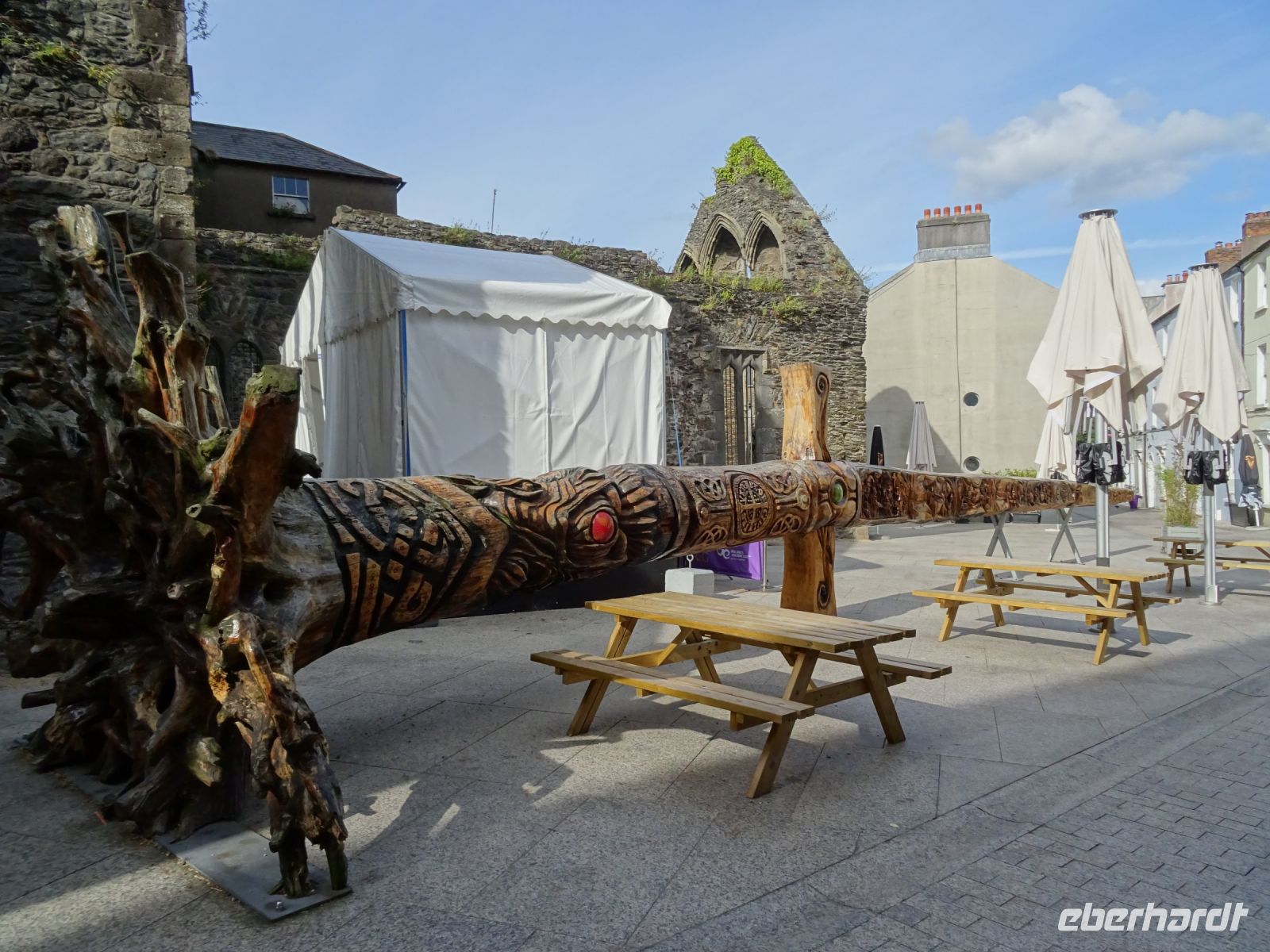 Heute reisen wir wieder mit unserem Gepäck weiter. Am Vormittag lernen wir die Hafenstadt Cobh kennen. Hier gingen die Passagiere der Titanik zum letzten Mal an Land,was dem Ort eine traurige Berühmtheit einbrachte. Ganz anders unser Rundgang und die Führung in der traditionellen Whiskeybrennerei von Jameson. Natürlich haben wir das Lebenswasser auch probiert und wissen nun, warum der irische Whiskey wie Öl die Kehle hinunterrinnt und kein bißchen kratzt. Am Nachmittag erreichten wir Waterford und erkundeten ganz individuell die einst von den Normannen und dem Ritter Strongbow beherrschte Stadt .Ein mächtiger Turm und moderne Plastiken legen Zeugnis davon ab.Natürlich gibt es auch hier urige Pubs mit irischer Live- Musik und einem Publikum, das die Lieder kennt und fröhlich mitsingt.