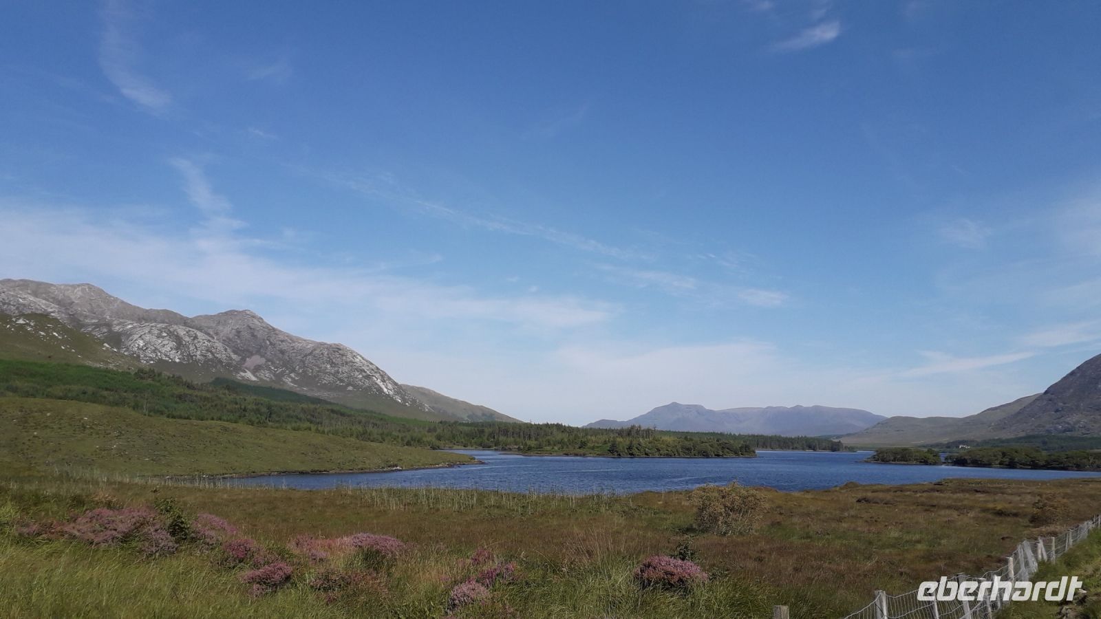 "Ich weiß, wo die Welt endet....",so beginnt der englische Reiseschriftsteller H. V. Morton seine Beschreibung der Connemara-Region. Auch wir staunen -100 Jahre später- über die unendlichen und teilweise noch immer unberührt erscheinenden Weiten: grüne Weiden wechseln mit schroffen steinigen Gebieten, großen Seen, Torffeldern und kahlen Bergketten .In Killary gibt es das einzige Fjord Irlands. Mitten in dieser menschenleeren Einöde taucht plötzlich, wie ein Märchenwunder, die Kylemore-Abbey auf. Da wir wegen der Restaurierung das Schloß in Glenveagh nicht besichtigen konnten, schauen wir uns die Abbey, die von uralten Bäumen beschatteten Wege zur neogotischen Kirche und den fantastischen Wallet Garden an .Auch kulinarische Genüsse kommen nicht zu kurz. Ein ganz einmaliges Erlebnis haben wir auch noch: Unterwegs begegnen uns mehrmals Läufer des" Ironman 2022". Wir bewundern die Tapferen: Es war sicherlich auf moderate Temperaturen in Irland gesetzt gewesen; aber nun mußten sie die schattenlose Strecke bei 28 Grad bewältigen!