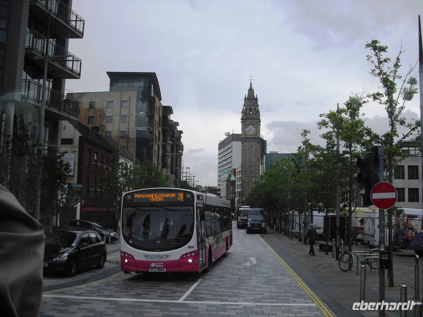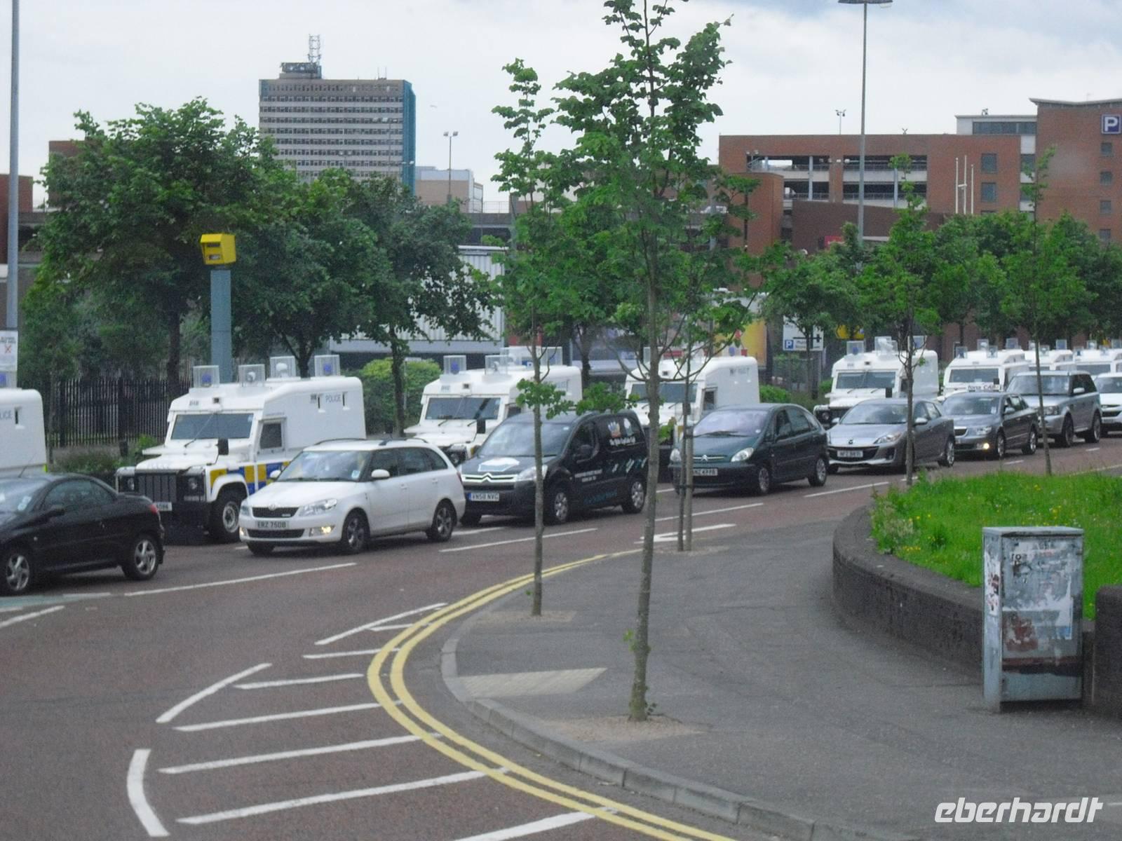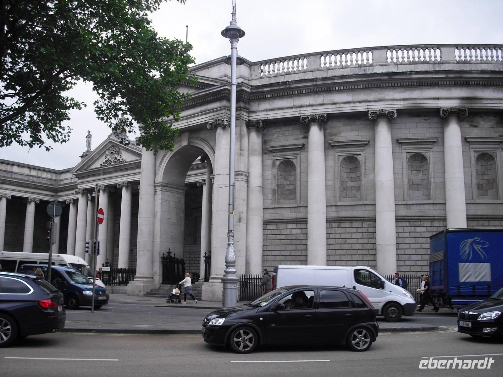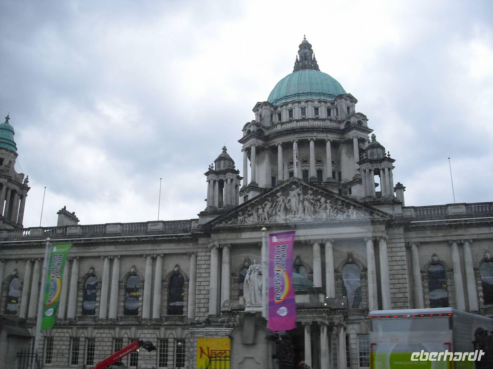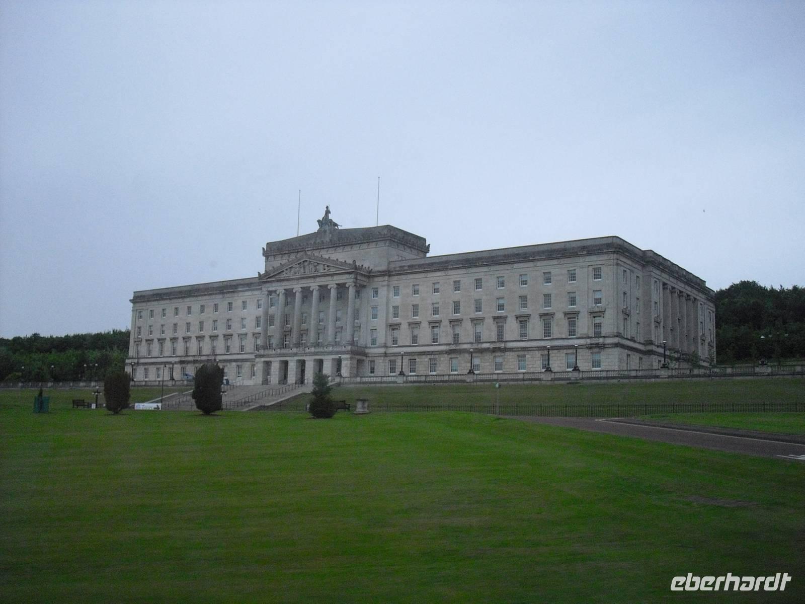 Nach einem ersten irischen Frühstück begann die Irlandrundreise mit einer Stadtrundfahrt in der irischen Hauptstadt Dublin. Hillary erklärte und erzählte zur Geschichte und den Hauptsehenswürdigkeiten und verband das auch immer wieder mit einem Fotostopp. Im Anschluß gab es noch Freizeit. So konnten einige das berühmte Book of Kells besuchen und sehen, andere schon ein paar Ansichtskarten kaufen oder auch einfach nur dem quirligen Treiben in den Straßen zuschauen. Am späten Nachmittag waren wir dann mit Willie verabredet, der mit uns eine Stadtrundfahrt durch Belfast machte. An manchen Stellen der Stadt war es schon für einige unserer Reisegruppe beklemmend, deutliche Zeichen einer "gespaltenen" Stadt zu sehen. Am schönsten war Belfast am Hafen, am Rathaus und am Parlamentsgebäude - dem Stormont. Schließlich wartete noch unser Abendessen im Hotel und schon legten die meisten ihr müdes Haupt zur Ruhe.