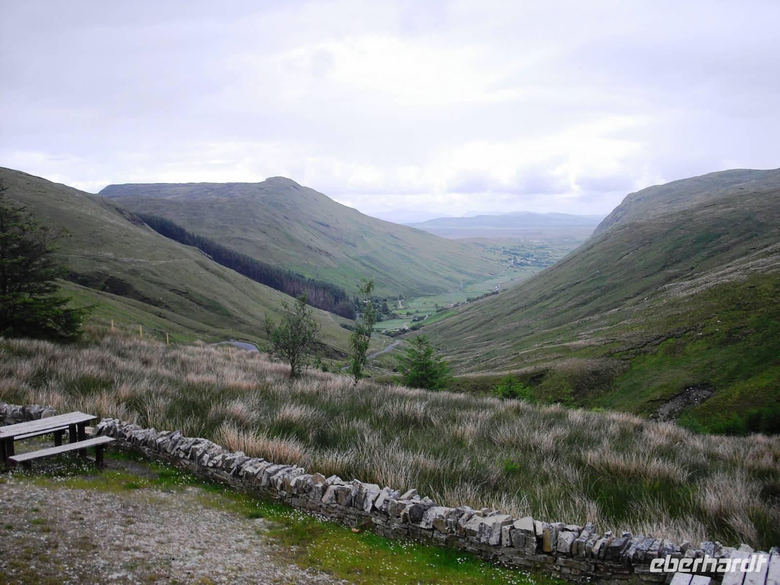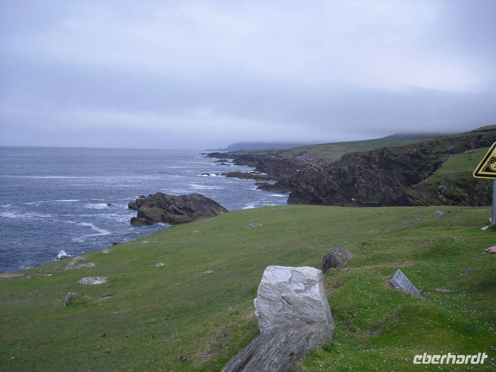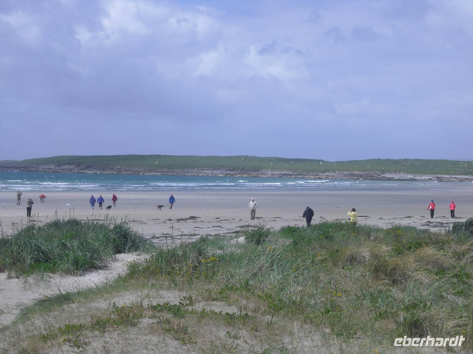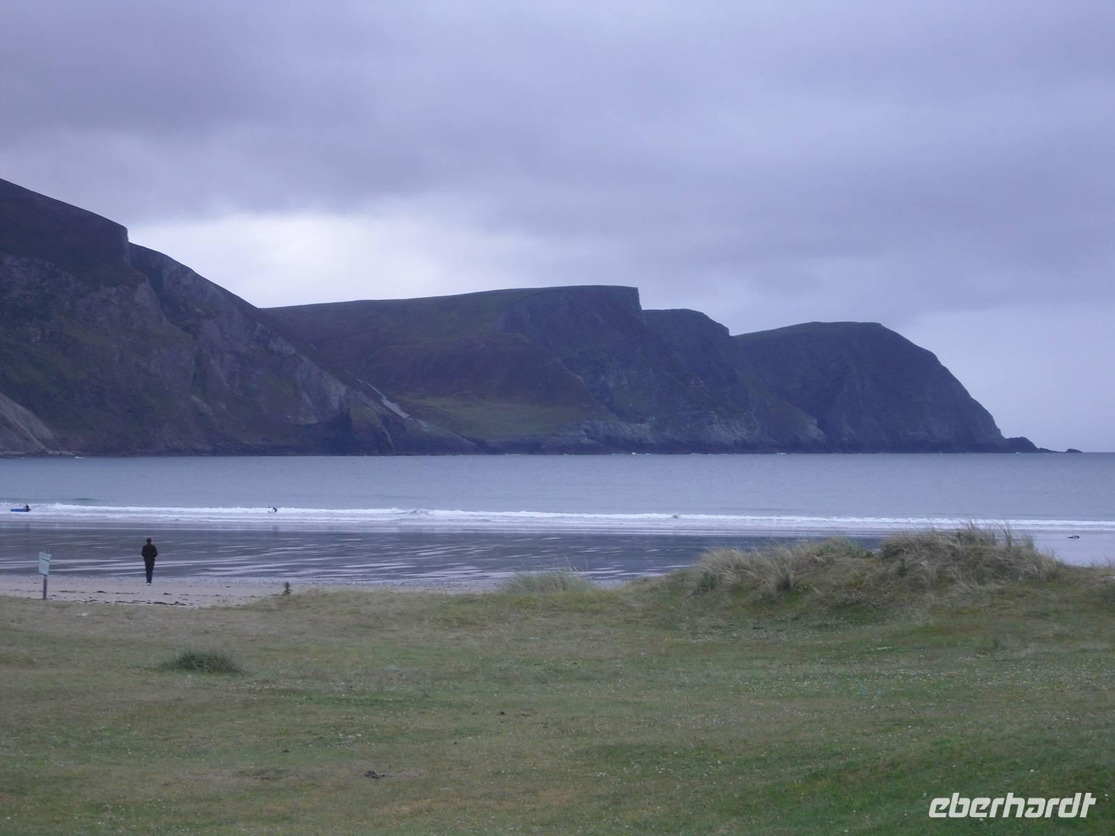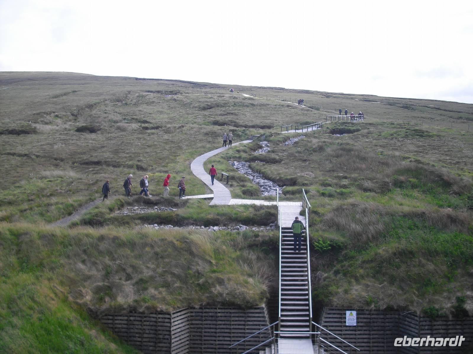 Heute sollte ein abwechslungsreicher Tag nach dem Frühstück für uns beginnen. Dem ehemaligen Sitz der Hochkönige von Ulster galt unser erster Besuch - das Steinfort Grianan of Aileach. Einfach fantastisch der Blick sowohl auf den See Swilly als auch der auf den See Foyle. Anschließend bummelten wir durch die Grafschaftshauptstadt Donegal und machten unsere Mittagspause dann am Glengesh-Pass. Auch hier wieder ein zauberhafter Blick in die wildromantische Landschaft des nordwestlichen Irlands. Schließlich besuchten wir noch Killybegs, den Hafen der irischen Atlantikfischfangflotte. Es wurde nun Zeit, uns in Richtung Sligo zu bewegen. Nach einer Pause in Drumcliff mit dem Besuch des Grabes von William Butler Yeats ( hier begann ein Zusammenhang zu unserer Übernachtung im Lady Gregory Hotel in Gort zu entstehen ) besuchten wir die megalithischen Gräber von Carrowmore. Wir wollten natürlich auch Dünen in Irland sehen. In Inishcrone wurde uns dieser Wunsch erfüllt. Nach einer knappen halben Stunde erreichten wir unser Hotel in Ballina, aßen zu Abend und einige Reisegäste besuchten mit dem Reiseleiter noch einen Pub. Es wurde Live-Musik vom Feinsten geboten. Nisch schlecht!
