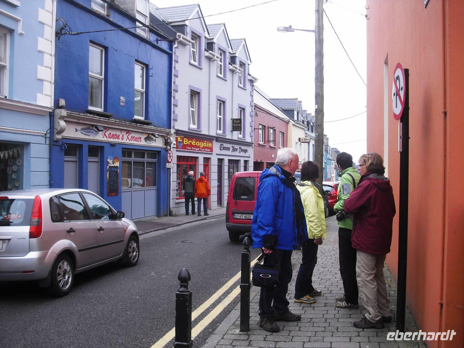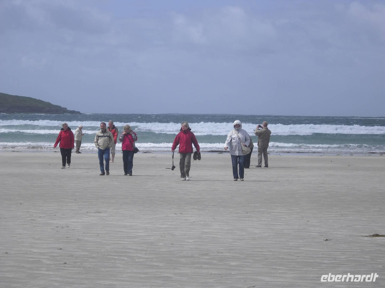 Irisches Frühstück, Abfahrt ohne Gepäck und schon ging es los mit der Tagestour zur Halbinsel Dingle. Über Castlemaine fuhren wir als erstes zum herrlichen Sandstrand von Inch und machten dort einen Entspannungsstopp mit Fotopause und genüßlichem Strandspaziergang. Anschließend führte uns der Weg nach Dingle selbst. Hier nahmen wir uns ausgiebig Zeit zur Erkundung dieses Hauptortes der Halbinsel. Funghi - der Delfin konnte besichtigt werden. Einer Taufe in der kleinen Kirche St. Mary konnte beigewohnt werden. Ein uriger Pub konnte besucht werden. Fish & Chips konnte gegessen werden. Und, und ....Nach unserem Aufenthalt in Dingle fuhren wir entlang des Slea Head Drives und wurden mit fantastischen Eindrücken beim Blick auf die Blasketinsel belohnt. Mit Foto- und Servicestopps fuhren wir schließlich über Blennerville nach Tralee zurück. Hier gab es im Hotel heute ein frühes Abendessen. Es sollte doch noch die Abendvorstellung im Siamsa Tire Folk Theatre besucht werden. Und diese Vorstellung hat alle ganz außerordentlich beeindruckt.